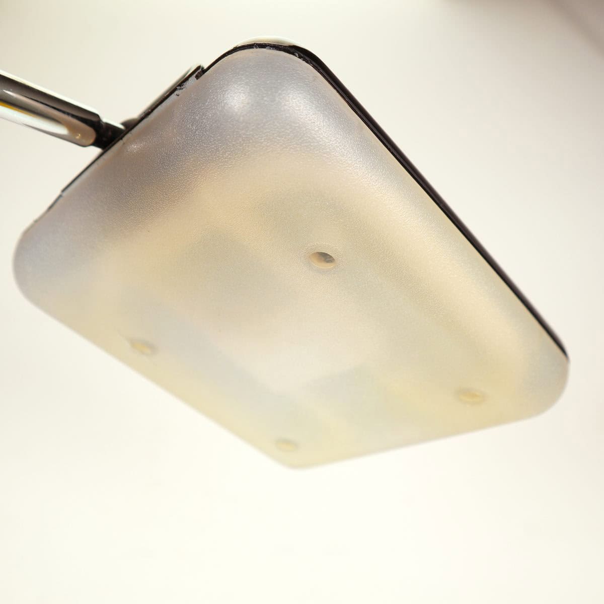 Questa elegante lampada da tavolo, realizzata in metallo, e' un perfetto esempio di design minimalista degli anni '60. Presenta una struttura nera con un elegante paralume di forma quadrata,... Questa elegante lampada da tavolo, realizzata in metallo, e' un perfetto esempio di design minimalista degli anni '60. Presenta una struttura nera con un elegante paralume di forma quadrata, in plastica traslucida, che offre un'illuminazione diffusa e calda. Il braccio regolabile consente di orientare la luce secondo le proprie esigenze, rendendola ideale per scrivanie o comodini. In ottime condizioni, presenta alcuni segni di utilizzo, ma nulla che ne comprometta l'estetica o la funzionalita'. Questa lampada non e' solo un'illuminazione, ma un vero e proprio pezzo d'arredo che conferisce carattere e stile agli ambienti. Altro
