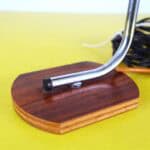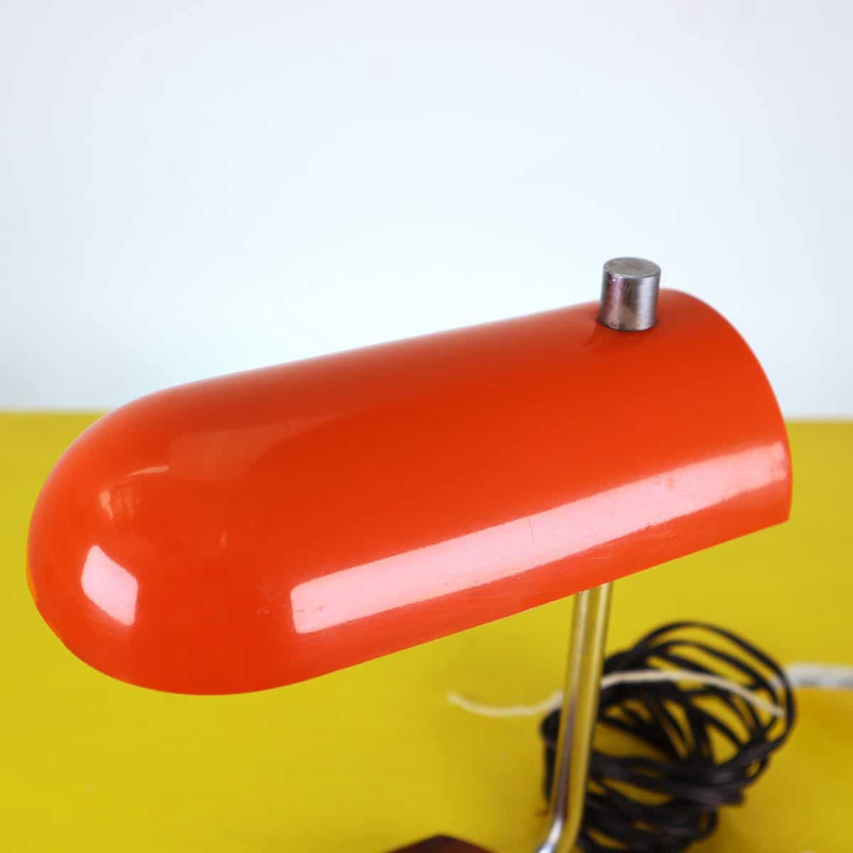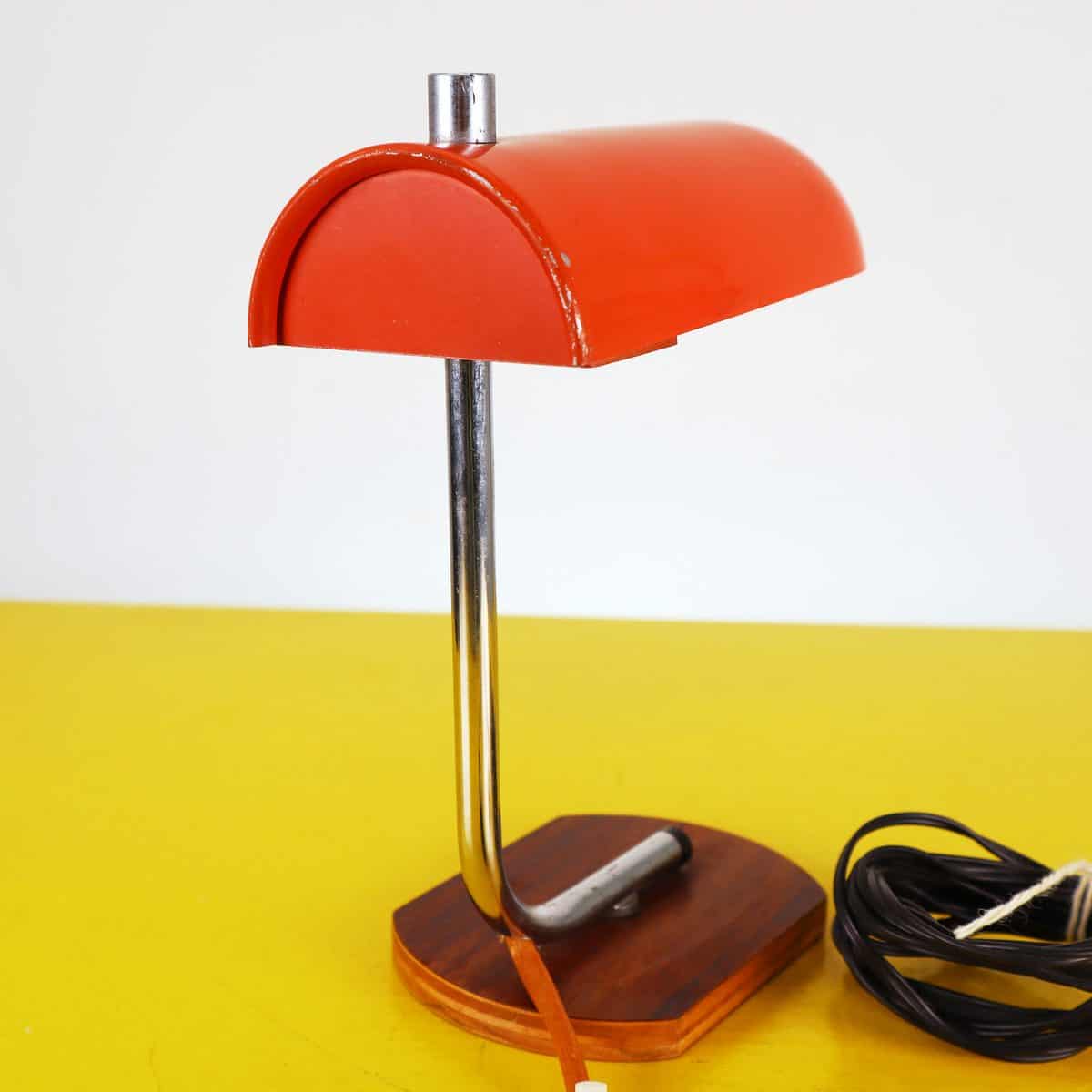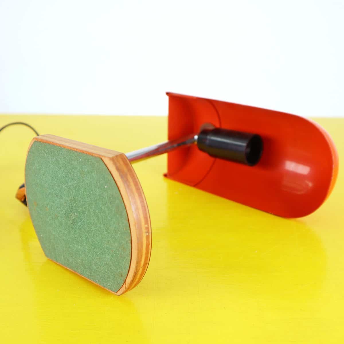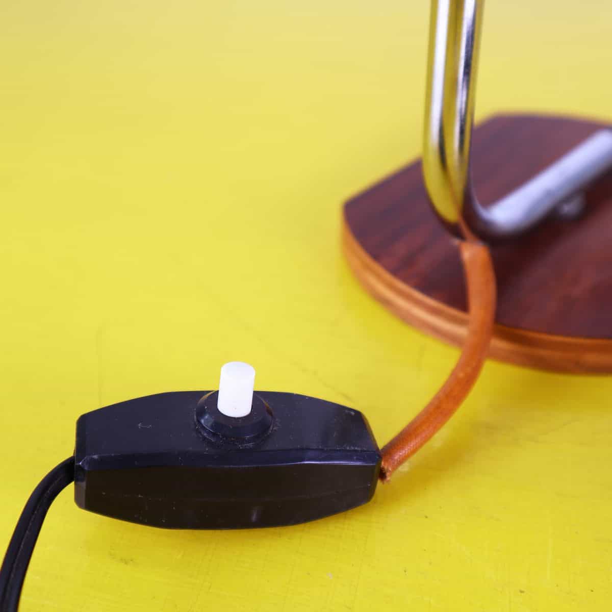 piccola lampada da tavolo anni 70 in metallo con base in legno