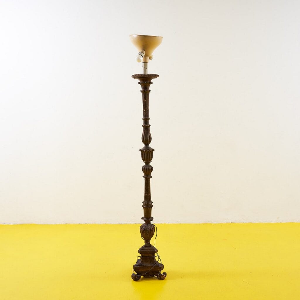 Scopri questa eleganza senza tempo con la lampada da terra in stile vintage, un pezzo unico che incanta con il suo design raffinato. Caratterizzata da un'elegante base in legno scolpito e dettagl... Scopri questa eleganza senza tempo con la lampada da terra in stile vintage, un pezzo unico che incanta con il suo design raffinato. Caratterizzata da un'elegante base in legno scolpito e dettagli ornamental, questa lampada si distingue per la sua altezza e la presenza di un diffusore che emana una luce calda e accogliente. Perfetta per completare l'arredo di soggiorni o studi dallo stile classico, aggiunge un tocco di carattere e originalita' a qualsiasi ambiente. Un must-have per gli amanti del design e dell'antiquariato. Altro