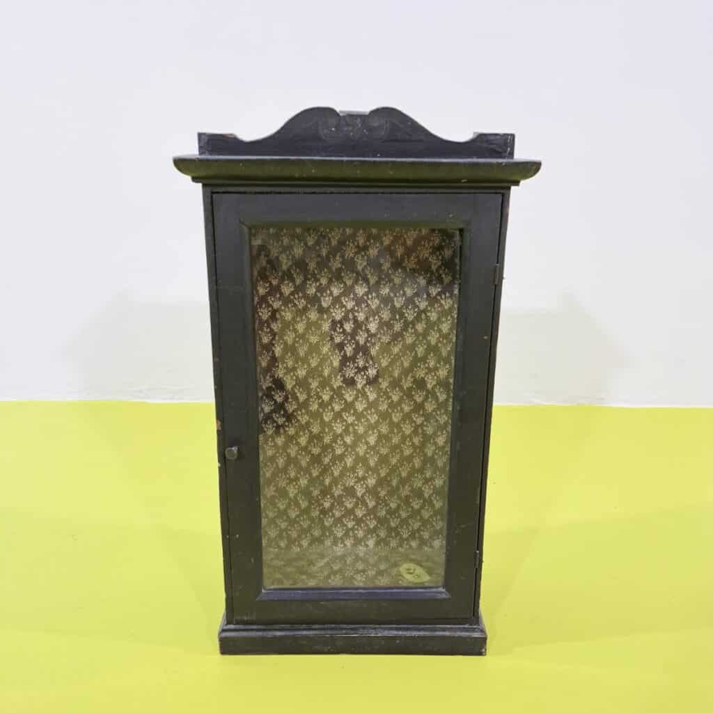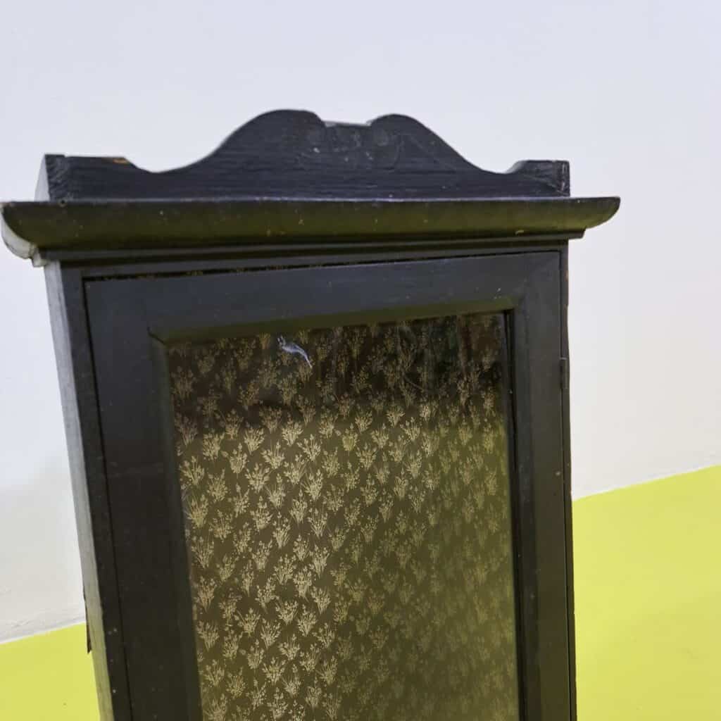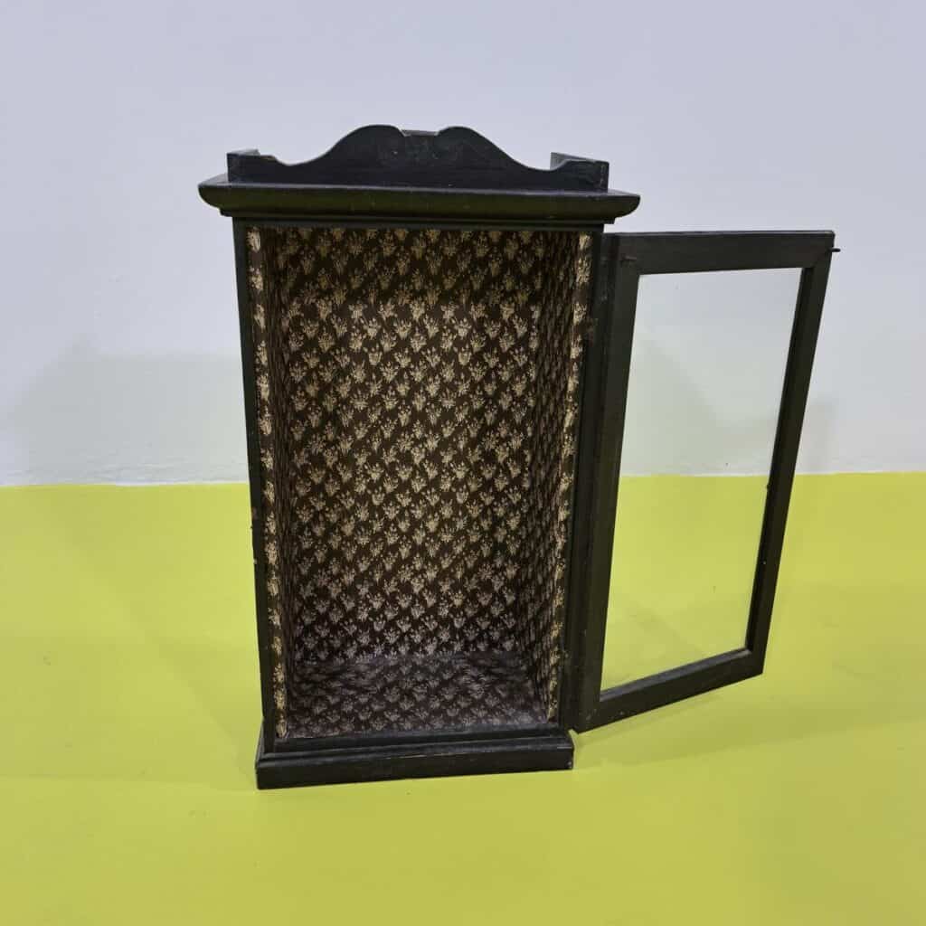 Questa affascinante vetrina da parete rappresenta un perfetto esempio di artigianato antico. Realizzata con cura in legno scuro, la sua struttura e' arricchita da un'elegante vetrata incorni... Questa affascinante vetrina da parete rappresenta un perfetto esempio di artigianato antico. Realizzata con cura in legno scuro, la sua struttura e' arricchita da un'elegante vetrata incorniciata, che rivela un interno decorato con un raffinato motivo floreale. La vetrina e' ideale per esporre piccoli oggetti preziosi o collezionabili, mentre il suo design classico la rende facilmente integrabile in qualsiasi ambiente vintage o antico. Nonostante l'etĂ , l'oggetto mantiene un fascino inconfondibile grazie alle sue linee semplici e alla sua funzionalita' ancora intatta. Altro