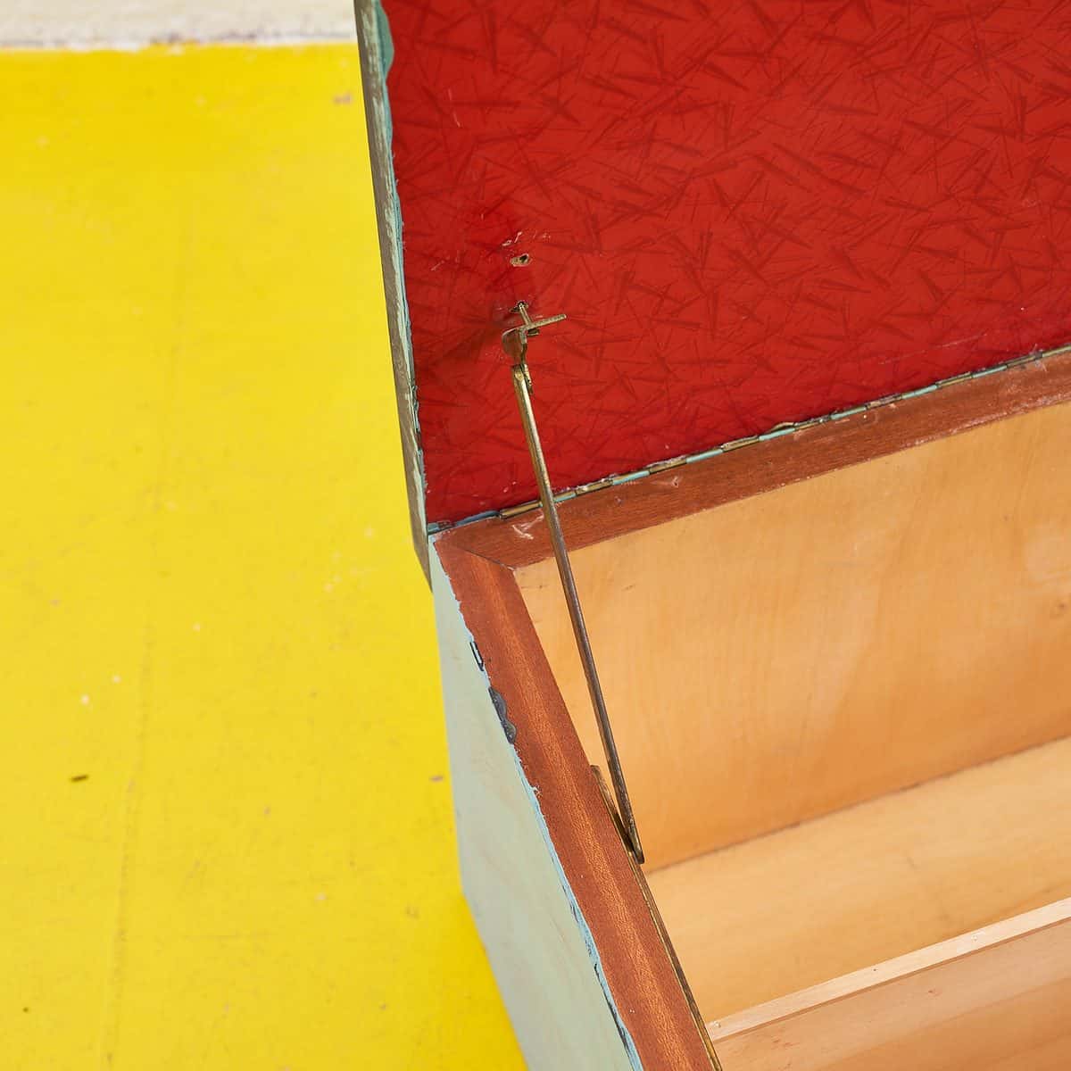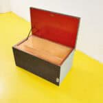 Scopri questo cofanetto vintage, un pezzo unico che combina praticita' e stile. Realizzato con materiali di alta qualita', presenta un design elegante e originale. La finitura in legno e... Scopri questo cofanetto vintage, un pezzo unico che combina praticita' e stile. Realizzato con materiali di alta qualita', presenta un design elegante e originale. La finitura in legno e' caratterizzata da un affascinante gioco di colori, con una combinazione di tonalita' scure e chiari che lo rendono un elemento d'arredo versatile adatto a qualsiasi ambiente. L'interno offre ampio spazio per riporre i tuoi oggetti, mentre il coperchio si apre con un meccanismo fluido, facile da usare. Questo cofanetto non e' solo un contenitore, ma un vero e proprio oggetto di design che reinterpreta il concetto di funzionalita' rispetto all'estetica. Altro