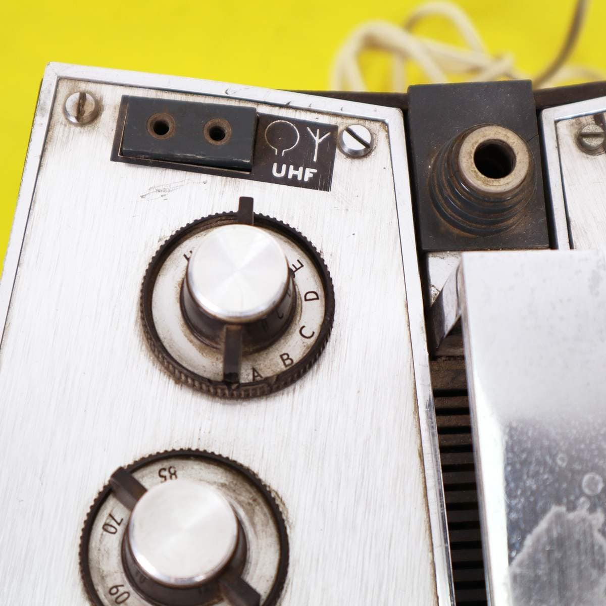 Questa affascinante televisione vintage Sinudyne e' un'autentica rappresentazione del design degli anni '60. Caratterizzata da un elegante corpo in metallo con finiture cromate, la TV p... Questa affascinante televisione vintage Sinudyne e' un'autentica rappresentazione del design degli anni '60. Caratterizzata da un elegante corpo in metallo con finiture cromate, la TV presenta un vetro di protezione spesso e un raffinato schermo CRT che incarna l'essenza del retro. I pulsanti e le manopole sono in ottime condizioni, contribuendo al fascino nostalgico dell'oggetto. Sebbene possa presentare lievi segni di usura, la TV e' un pezzo decorativo straordinario per collezionisti e appassionati di design. Perfetta per essere esposta in un soggiorno vintage o come elemento unico in un arredamento contemporaneo. Altro