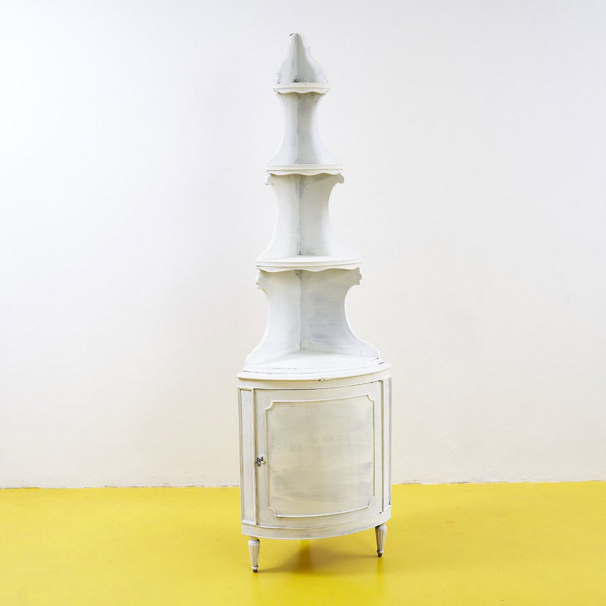 Scopri l'unicita' di questo elegante mobiletto a colonna, perfetto per gli amanti del design raffinato. Con un'affascinante struttura a piu' ripiani, questo pezzo si distingue per ... Scopri l'unicita' di questo elegante mobiletto a colonna, perfetto per gli amanti del design raffinato. Con un'affascinante struttura a piu' ripiani, questo pezzo si distingue per il suo charm vintage e la sua funzionalita'. La finitura bianca e i dettagli scolpiti conferiscono a questo mobile un aspetto sofisticato, ideale per qualsiasi ambiente. Il vano inferiore con anta offre comodita' per riporre oggetti, mentre i ripiani superiori sono perfetti per esporre decorazioni o libri. Un vero e proprio pezzo di storia, che aggiunge un tocco di eleganza e personalita' a casa tua. Altro