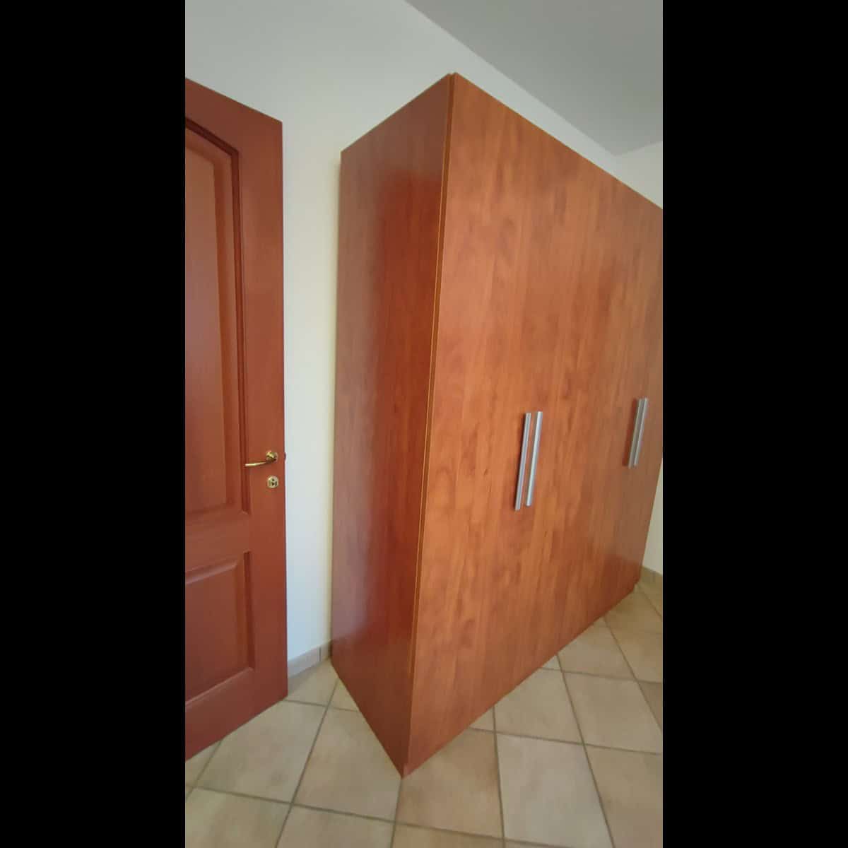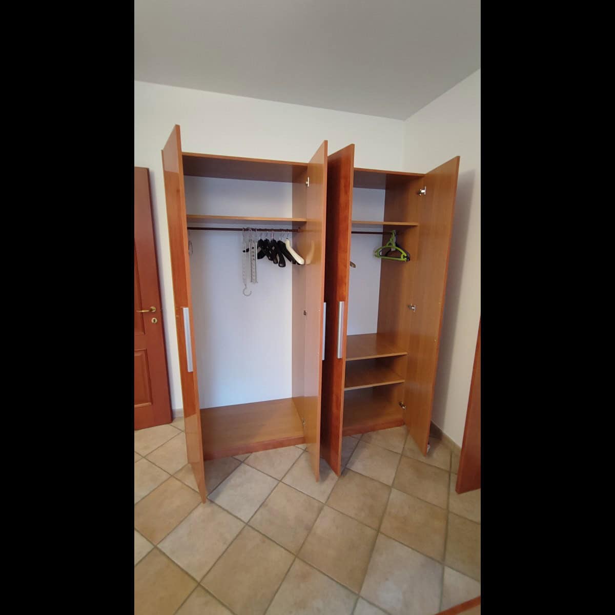 Scopri questo elegante armadio in legno dal design moderno, perfetto per ogni ambiente. Realizzato con finitura noce, l'armadio presenta una superficie liscia e compatta, ideale per chi cerca un ... Scopri questo elegante armadio in legno dal design moderno, perfetto per ogni ambiente. Realizzato con finitura noce, l'armadio presenta una superficie liscia e compatta, ideale per chi cerca un complemento di arredo funzionale e dallo stile contemporaneo. Dotato di tre ante, offre ampio spazio interno con ripiani e una barra per appendere vestiti, rendendolo adatto per qualsiasi camera da letto o ingresso. La maniglia in metallo conferisce un ulteriore tocco distintivo, aggiungendo un contrasto raffinato al design complessivo. Questo pezzo non solo e' pratico, ma diventa anche un elemento decorativo che arricchisce l'estetica della tua casa. Altro