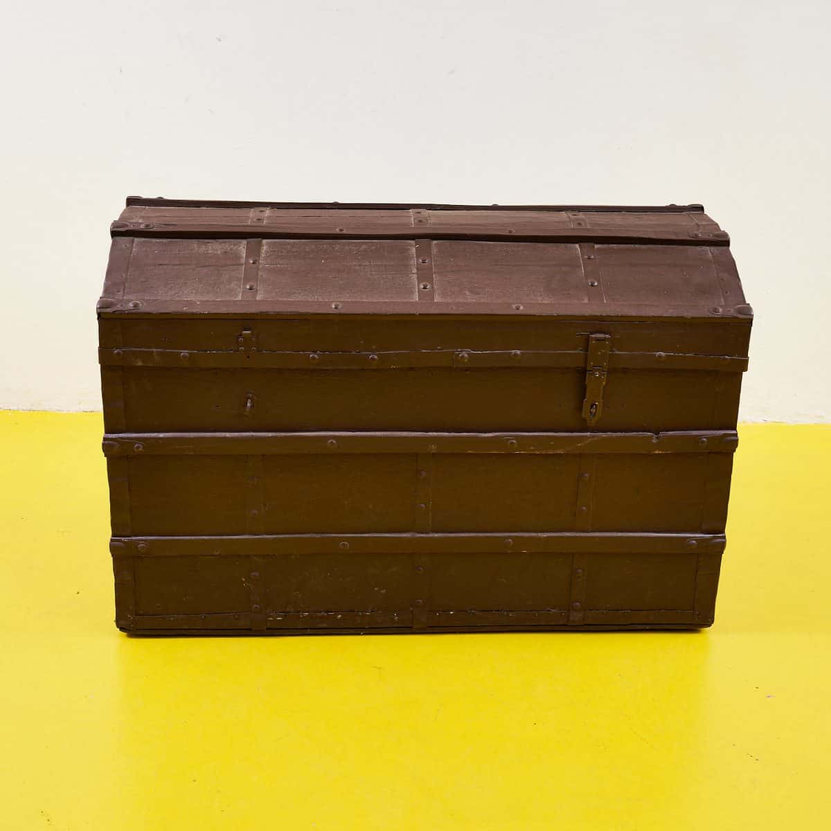 Scopri questo affascinante baule vintage in metallo, perfetto per arricchire il tuo spazio con un tocco di storia. Caratterizzato da un design robusto e una finitura in tonalita' marrone, questo ... Scopri questo affascinante baule vintage in metallo, perfetto per arricchire il tuo spazio con un tocco di storia. Caratterizzato da un design robusto e una finitura in tonalita' marrone, questo pezzo unico si distingue per la sua funzionalita' e stile. L'interno e' rifinito con un elegante tessuto decorato, aggiungendo un elemento di sorpresa ad ogni apertura. Ideale per riporre oggetti personali, coperte o libri, questo baule non e' solo pratico, ma anche un vero e proprio oggetto di design che attira l'attenzione. Perfetto per un salotto, una camera da letto o come pezzo di arredo creativo in un ambiente industriale. Altro