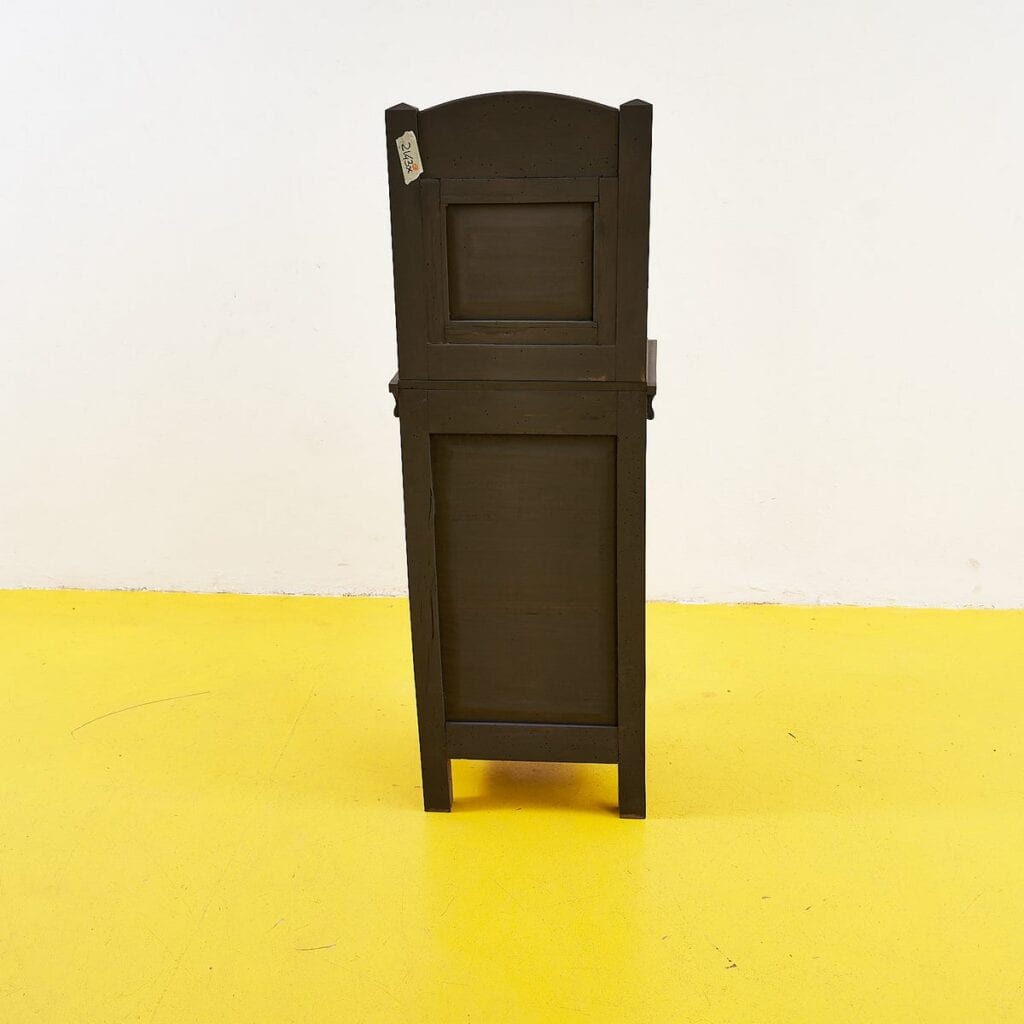 Questo mobiletto dal design vintage e' perfetto per aggiungere un tocco di eleganza a qualsiasi ambiente. Caratterizzato da una finitura scura e linee pulite, presenta un cassetto e un'anta ... Questo mobiletto dal design vintage e' perfetto per aggiungere un tocco di eleganza a qualsiasi ambiente. Caratterizzato da una finitura scura e linee pulite, presenta un cassetto e un'anta che si apre su uno spazio interno ben organizzato. Ideale come comodino o come complemento d'arredo nel soggiorno o nello studio, la sua struttura e' realizzata in legno solido, garantendo durabilita' nel tempo. L'aspetto nostalgico di questo pezzo lo rende un'ottima scelta per chi ama il design re'tro e autentico. Non lasciarti sfuggire l'occasione di possedere un pezzo unico per il tuo spazio. Altro