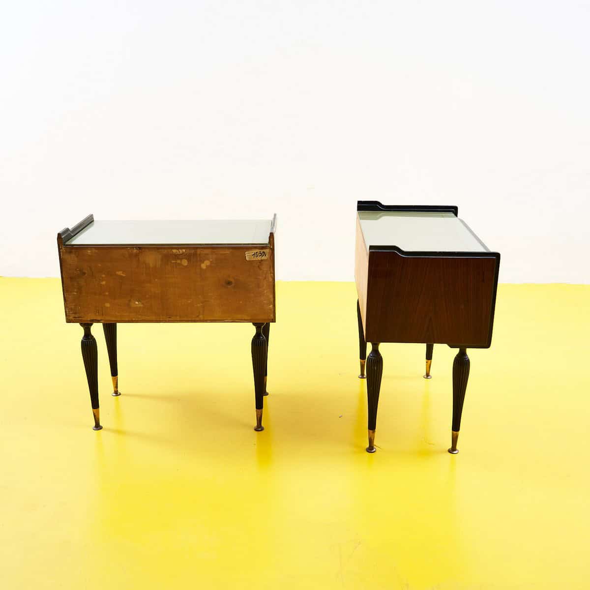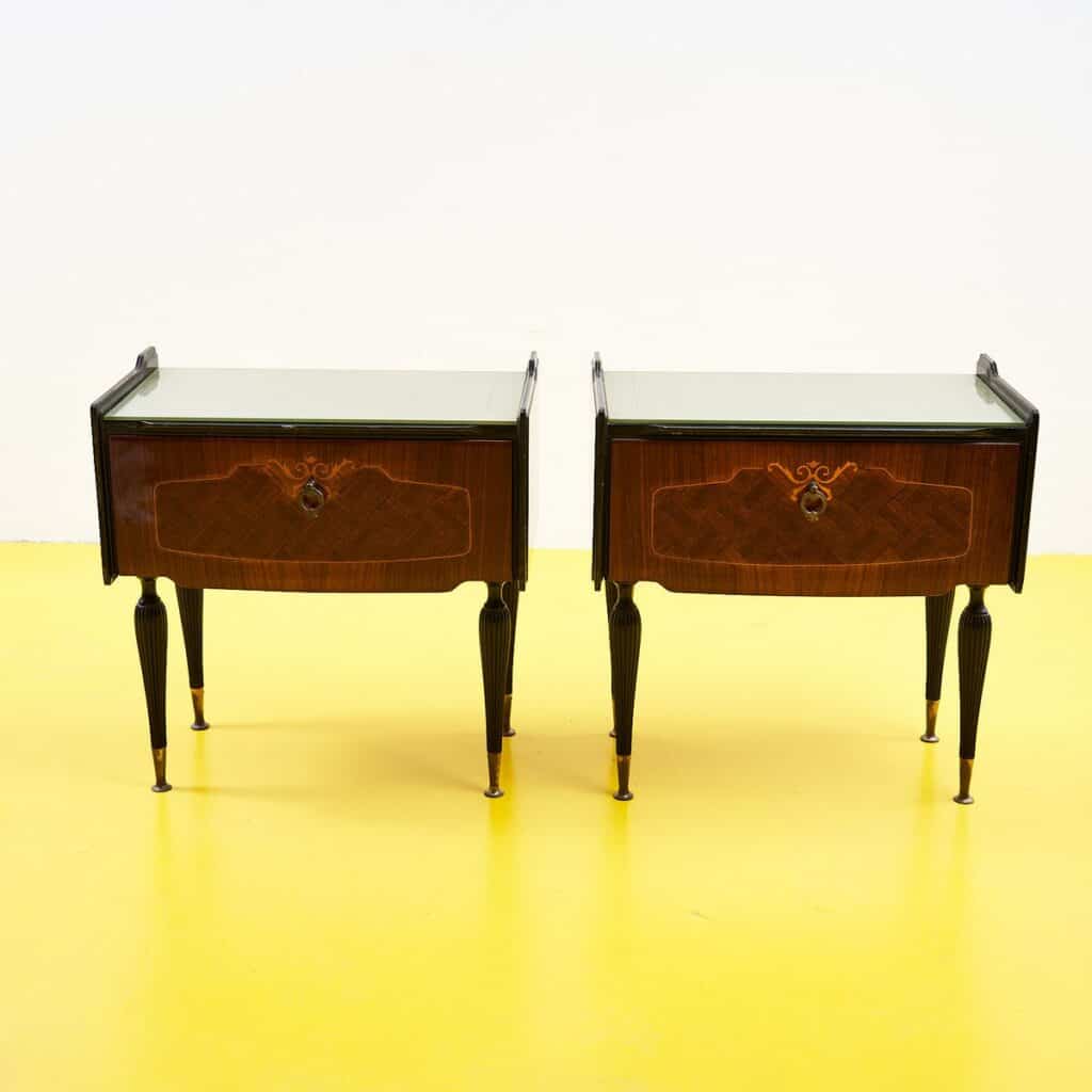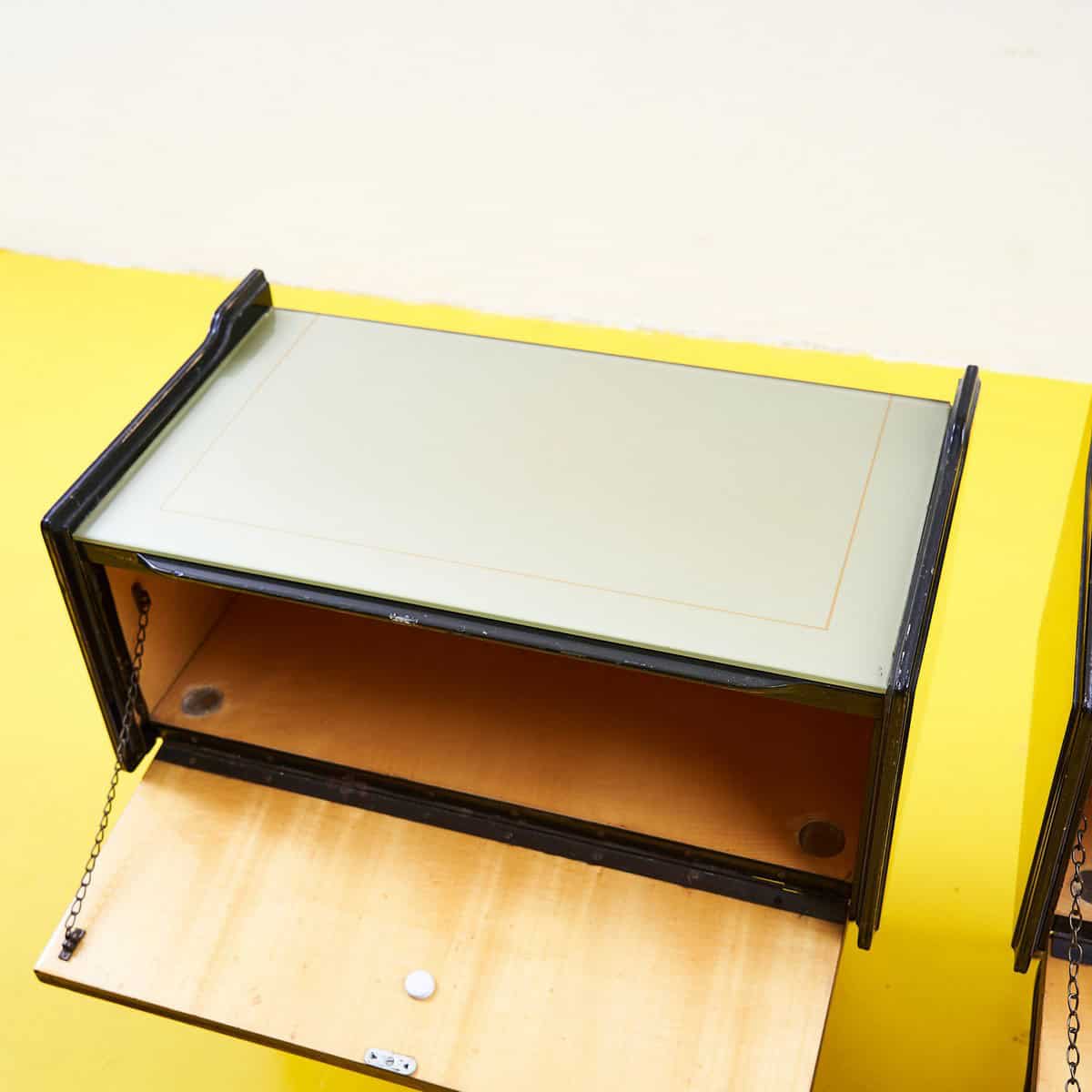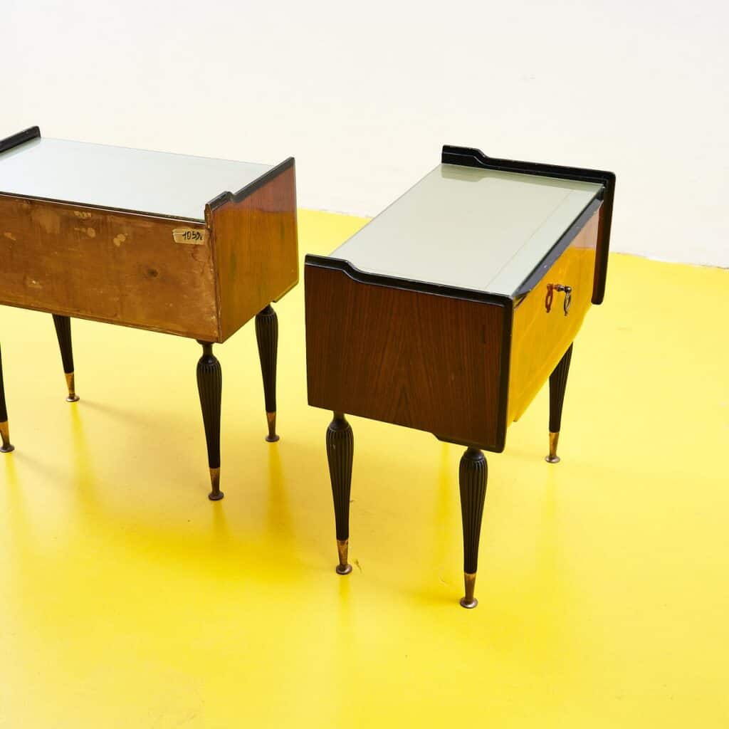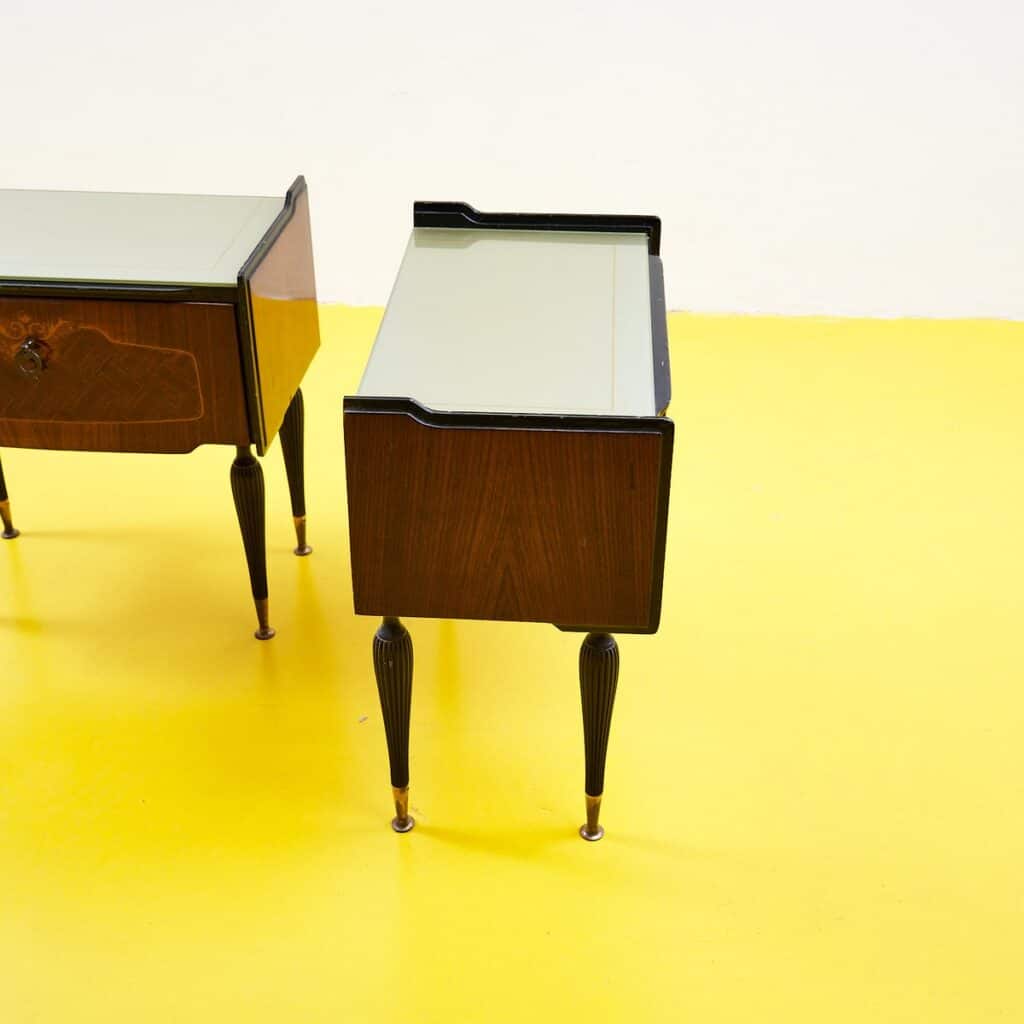 coppia di comodini anni 50 con piano in vetro