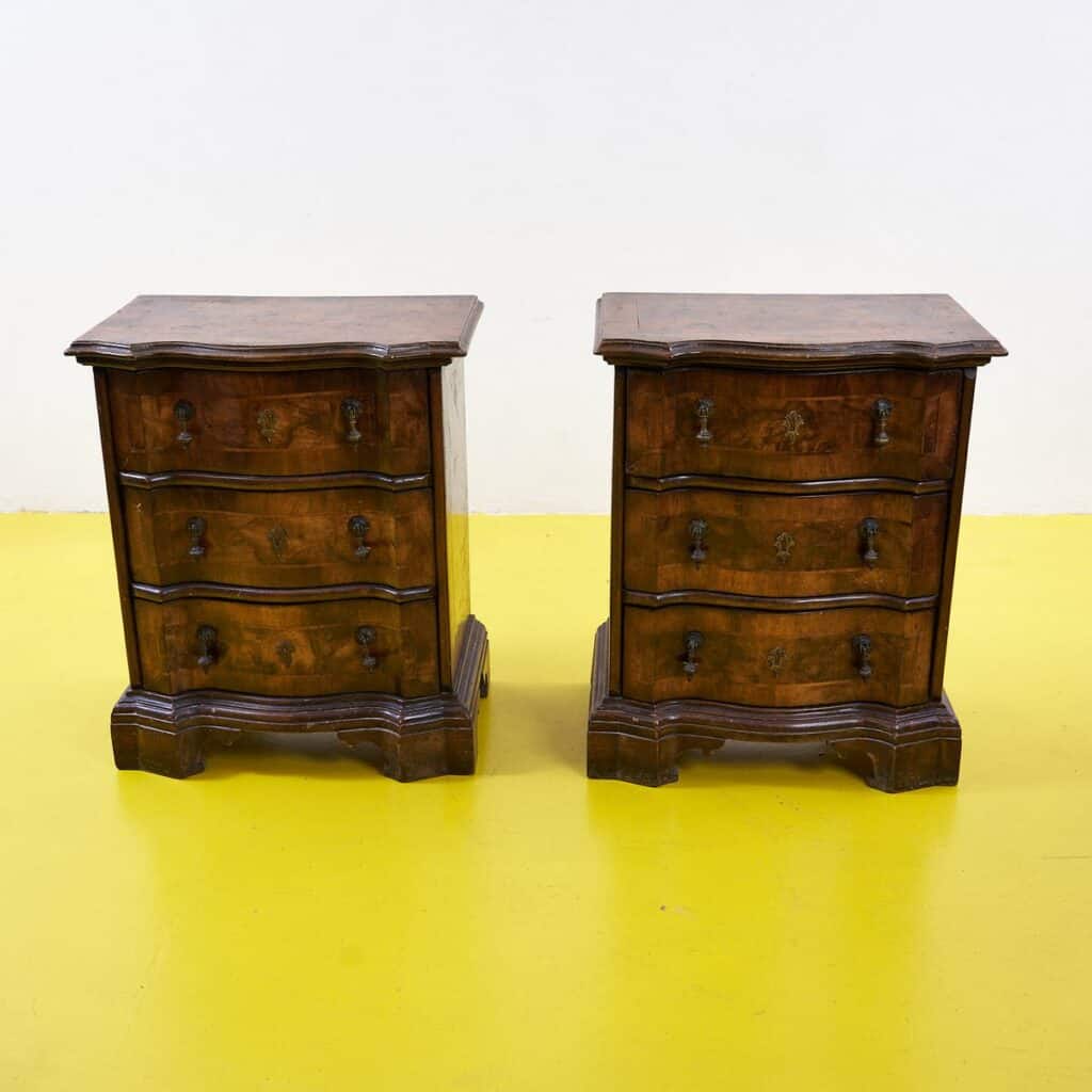 coppia dI comodini VECCHIA CEREA PRIMI 900, in legno DI NOCE LASTRONATI E FILETT