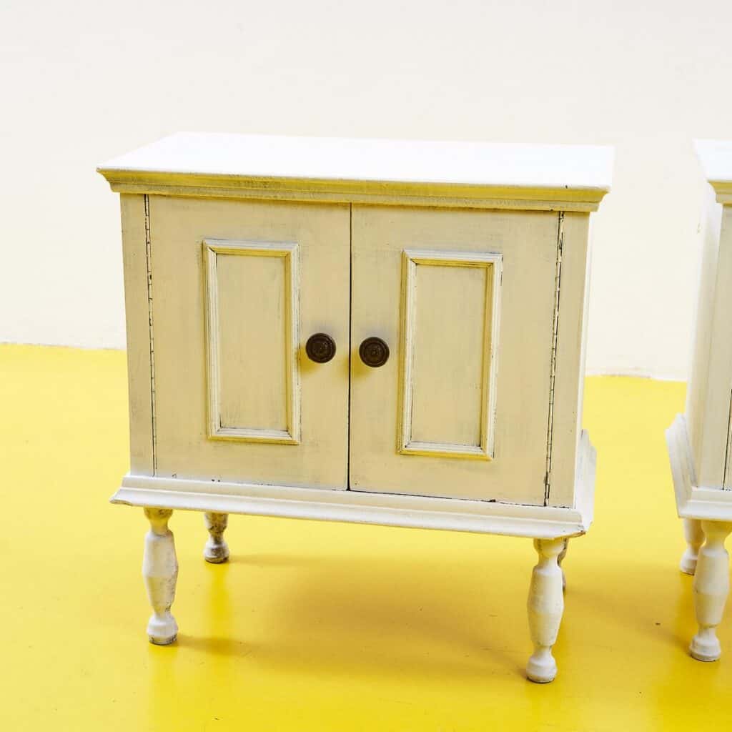 coppia di comodini vintage bianchi