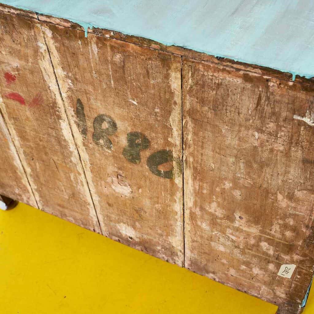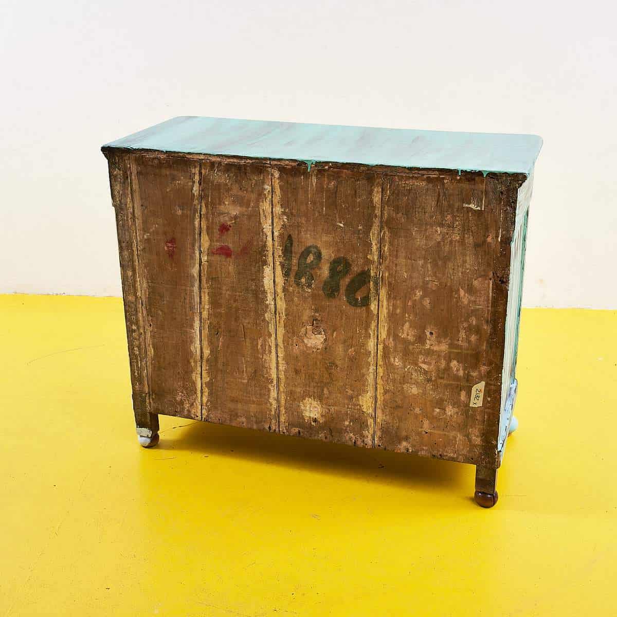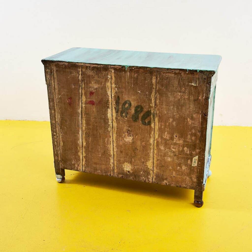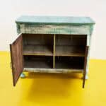 Questa credenza rappresenta un perfetto esempio di design artigianale, combinando una robusta struttura in legno con una finitura colorata verde pastello. Le sue linee semplici e funzionali la rendono... Questa credenza rappresenta un perfetto esempio di design artigianale, combinando una robusta struttura in legno con una finitura colorata verde pastello. Le sue linee semplici e funzionali la rendono un pezzo ideale per chi vuole aggiungere un tocco di personalita' e colore al proprio spazio abitativo. I segni del tempo visibili conferiscono carattere e autenticita', contrastando splendidamente con la sua verniciatura rivisitata, dando vita a un oggetto unico nel suo genere. Perfetta per essere utilizzata come spazio contenitivo in cucina o in soggiorno, questa credenza e' tanto pratica quanto affascinante, invitando a scoprire la sua storia ad ogni apertura delle ante. Altro