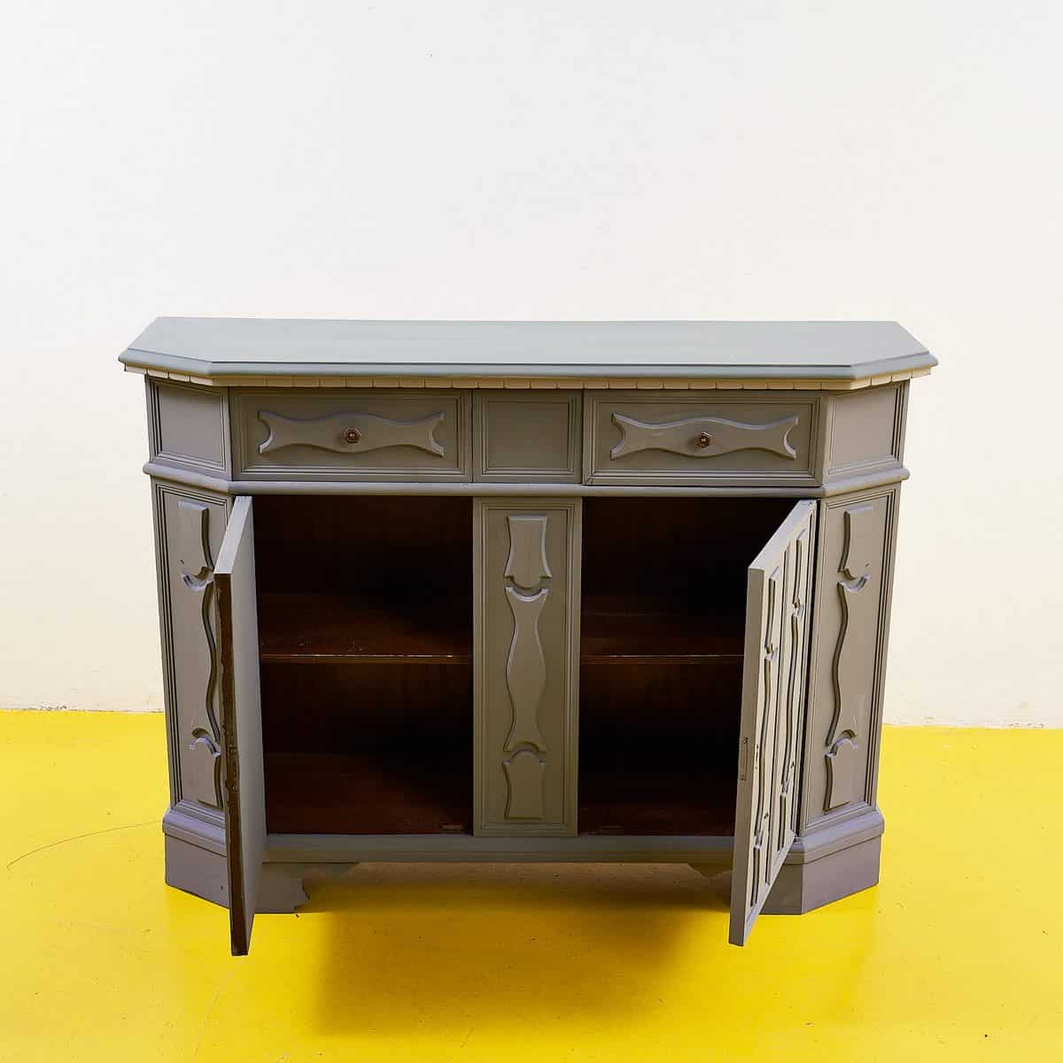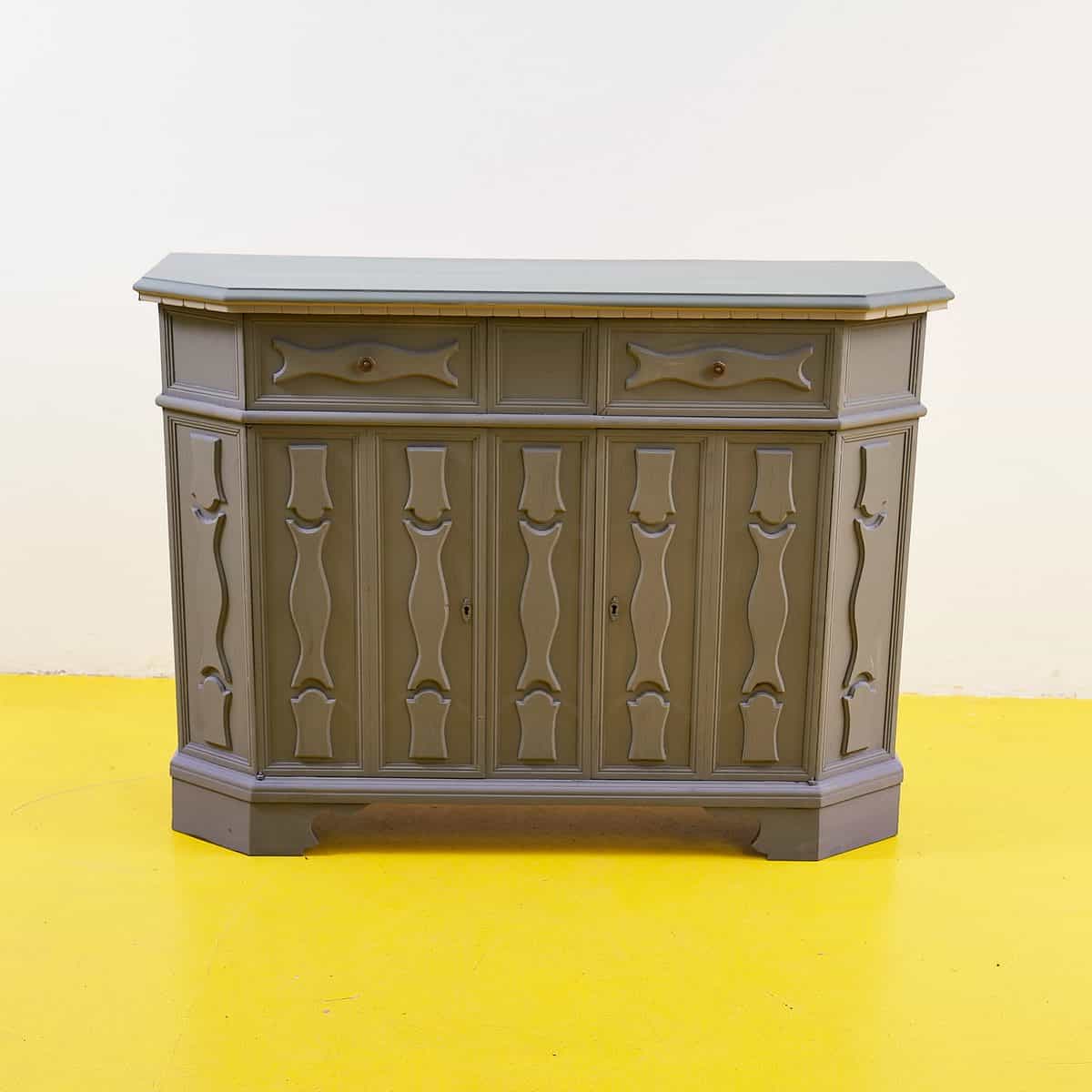 Scopri questo affascinante buffet di design, una combinazione perfetta tra funzionalita' ed estetica. Caratterizzato da linee eleganti e dettagli curati, questo pezzo evoca un'epoca passata ... Scopri questo affascinante buffet di design, una combinazione perfetta tra funzionalita' ed estetica. Caratterizzato da linee eleganti e dettagli curati, questo pezzo evoca un'epoca passata mantenendo un fascino senza tempo. La finitura grigia opaca si adatta armoniosamente a qualsiasi ambiente, mentre gli spaziosi scomparti interni offrono ampio spazio per riporre i tuoi oggetti con stile. La struttura robusta e il design raffinato rendono questo buffet un'aggiunta ideale per chi ama mescolare vintage e modernita'. Non perdere l'occasione di possedere un oggetto di design che racconta storie di raffinatezza e classe. Altro