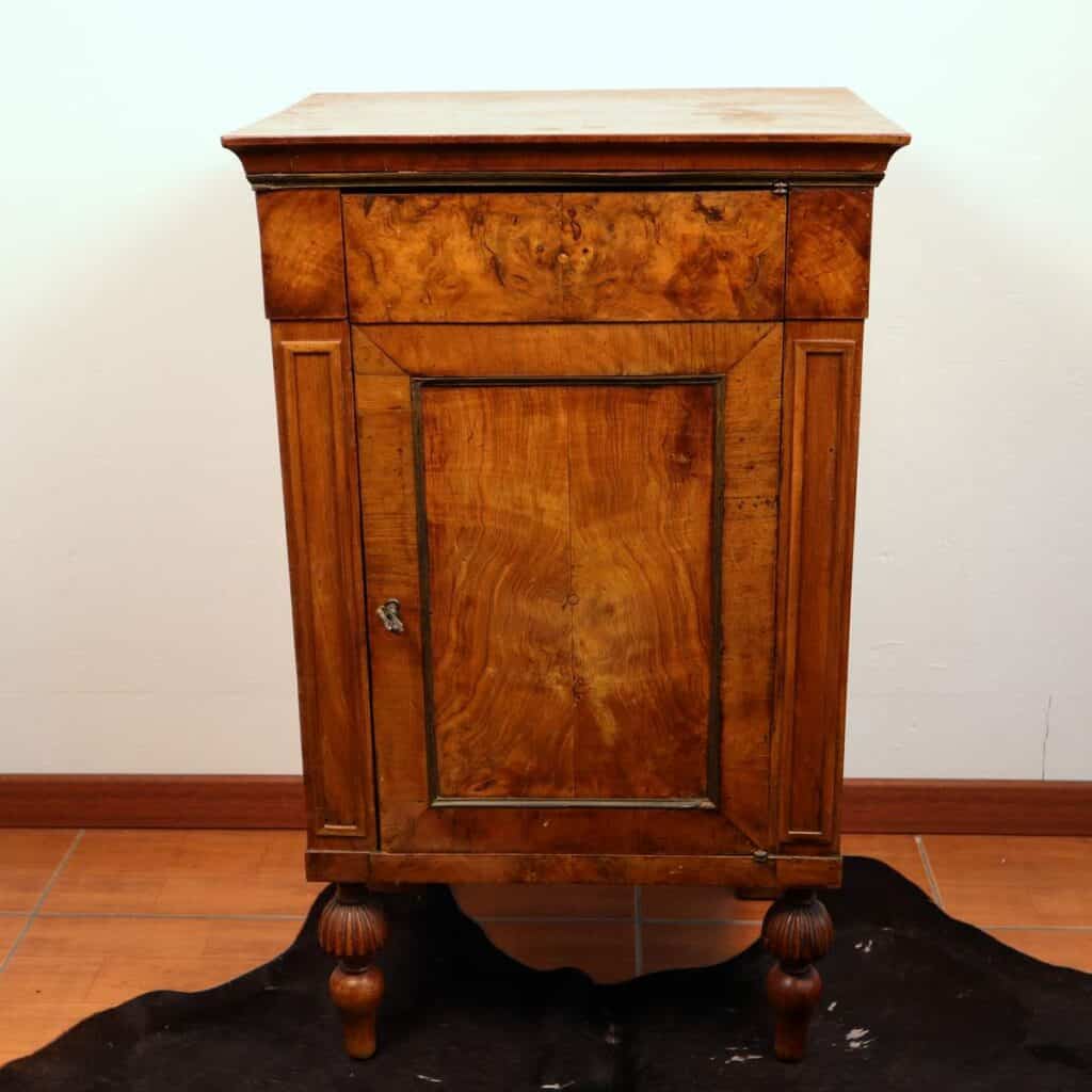 Questa splendida credenza e' un perfetto esempio di artigianato tradizionale. Realizzata in legno pregiato, presenta una finitura che esalta la bellezza naturale delle venature. La struttura comp... Questa splendida credenza e' un perfetto esempio di artigianato tradizionale. Realizzata in legno pregiato, presenta una finitura che esalta la bellezza naturale delle venature. La struttura comprende un'anta con serratura e un ripiano interno che offre ampio spazio per riporre oggetti. Le gambe finemente lavorate aggiungono un tocco di raffinatezza, rendendo questo mobile ideale per arricchire qualsiasi ambiente con un fascino senza tempo. Perfetta per chi cerca un pezzo unico che unisca funzionalita' e stile estetico. Altro