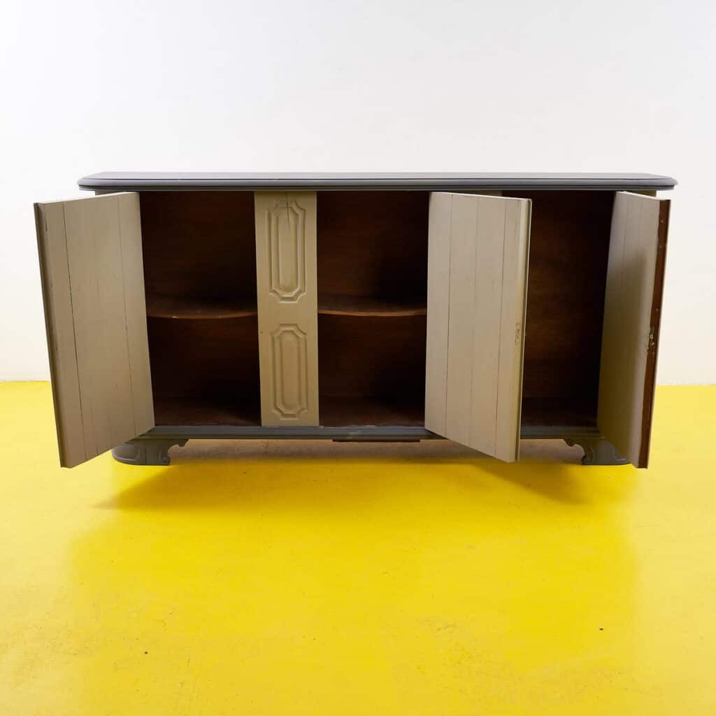 Questa credenza affascinante e' un esempio di design vintage che unisce funzionalita' e estetica. Realizzata con una struttura robusta e dettagli ornamentali, e' perfetta per chi cerca ... Questa credenza affascinante e' un esempio di design vintage che unisce funzionalita' e estetica. Realizzata con una struttura robusta e dettagli ornamentali, e' perfetta per chi cerca un pezzo di arredamento unico. Il colore beige con finiture grigie e' ideale per diversi stili di interior design, dal rustico all'elegante. Con ampi spazi di stoccaggio interni, offre una soluzione perfetta per organizzare e mostrare oggetti decorativi. Questa credenza non e' solo un mobile, ma una dichiarazione di stile per ogni ambiente della vostra casa. Altro