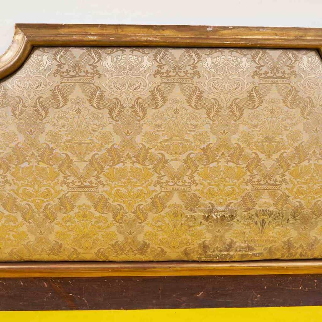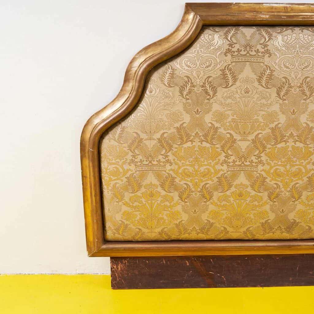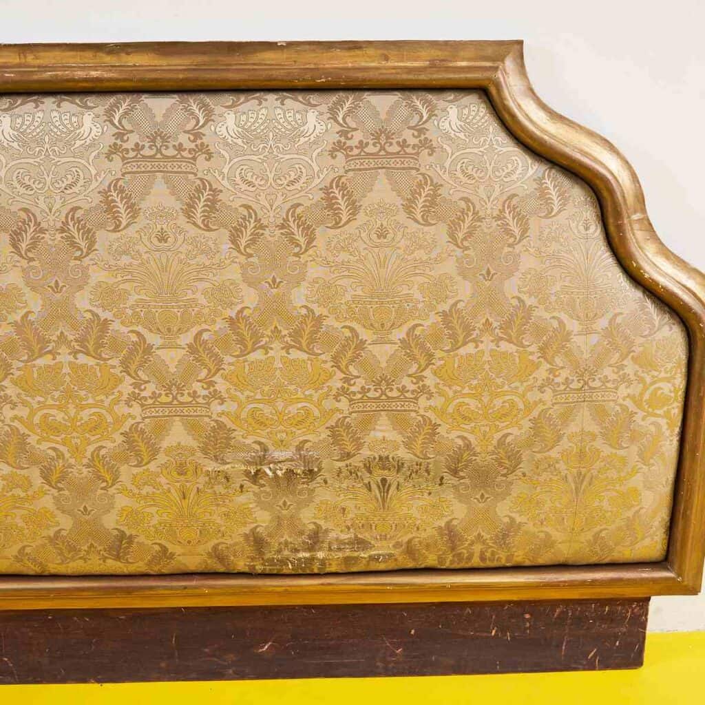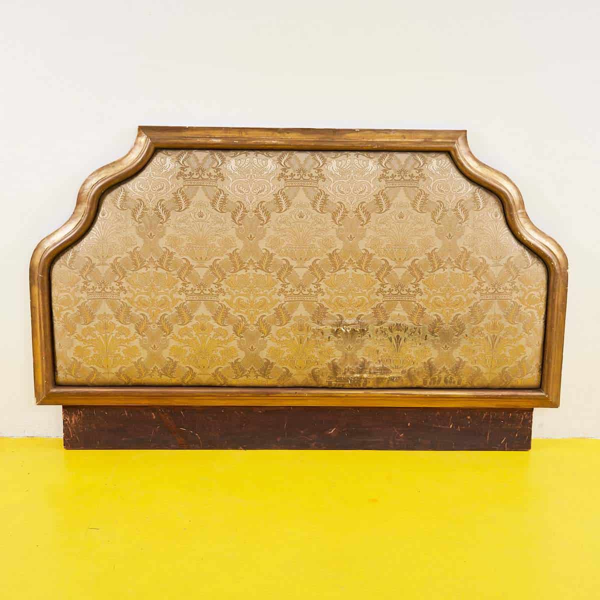 testata da letto in legno dorato e tessuto