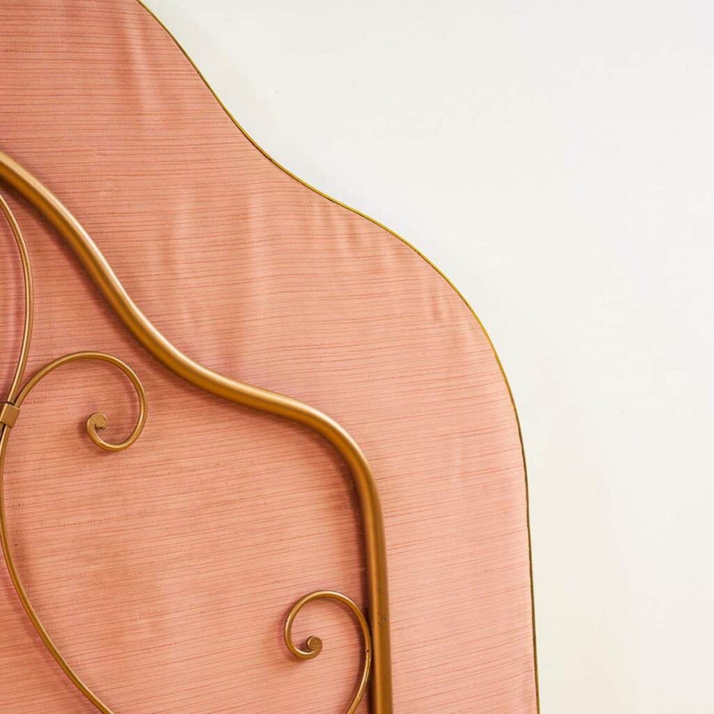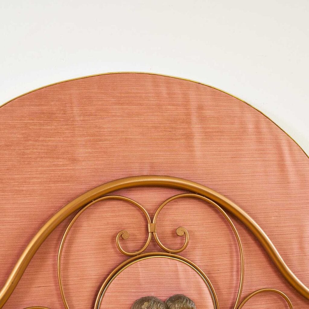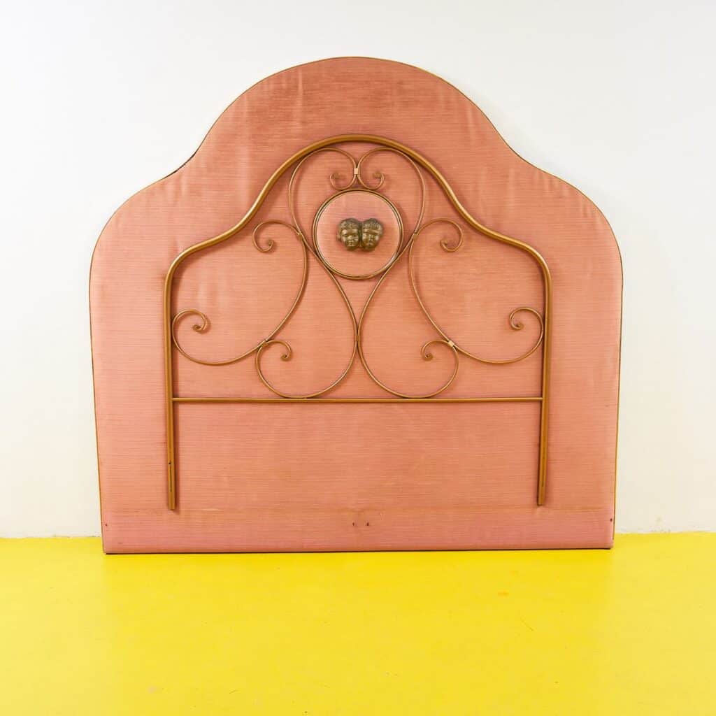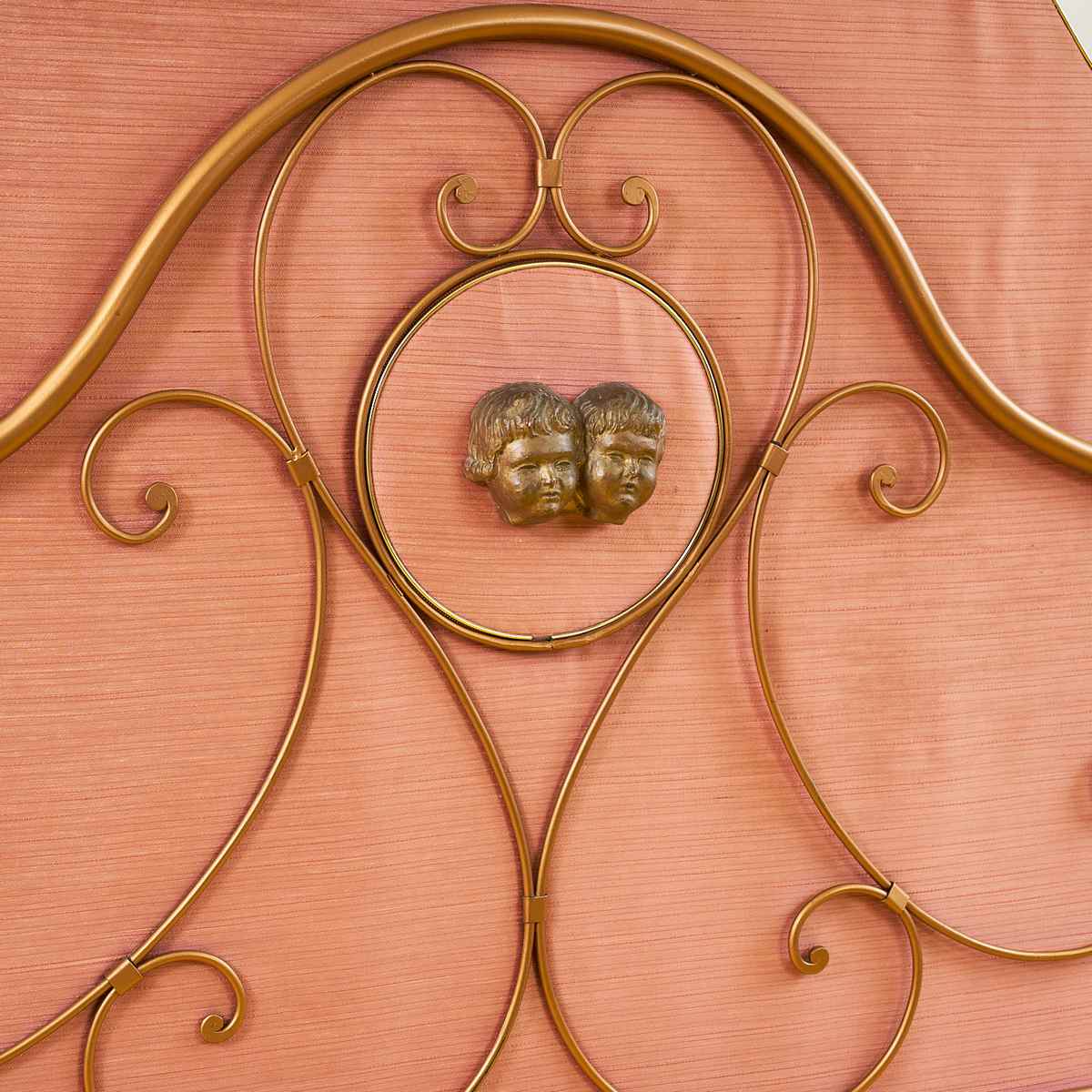 Scopri un pezzo unico di design che trasforma ogni camera da letto in un'oasi di stile. Questa testiera di letto vintage e' caratterizzata da una finitura rosata raffinata e dettagli in meta... Scopri un pezzo unico di design che trasforma ogni camera da letto in un'oasi di stile. Questa testiera di letto vintage e' caratterizzata da una finitura rosata raffinata e dettagli in metallo dorato che creano un contrasto affascinante. Al centro, una scultura decorativa rappresentante due volti affiancati attira l'attenzione e aggiunge un tocco artistico al tuo spazio. La sagoma morbida e le linee sinuose rendono quest'oggetto non solo funzionale ma anche una dichiarazione di stile. Ideale per arredare stanze in stile retro o moderno. Non perdere l'occasione di possedere questo rarita' del design! Altro