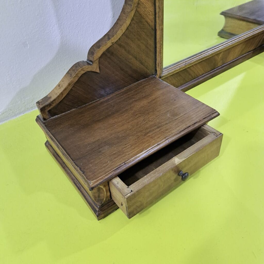 Questo raffinato specchio da tavolo in legno rappresenta un perfetto complemento d'arredo per gli amanti del design antico. Il suo stile inconfondibile si distingue per l'artigianato meticol... Questo raffinato specchio da tavolo in legno rappresenta un perfetto complemento d'arredo per gli amanti del design antico. Il suo stile inconfondibile si distingue per l'artigianato meticoloso e le linee curve che incorniciano il vetro, conferendo un'aura di eleganza senza tempo. Con due pratici cassetti laterali, offre funzionalita' aggiuntiva senza compromettere la bellezza estetica. Il legno di alta qualita' utilizzato e' testimone di durata e resistenza, mentre la patina naturale racconta una storia di fascino vissuto. Ideale per camere da letto o ingressi, aggiungera' un tocco di classe e tradizione a qualsiasi ambiente. Una scelta eccellente per collezionisti e intenditori di pezzi unici. Altro