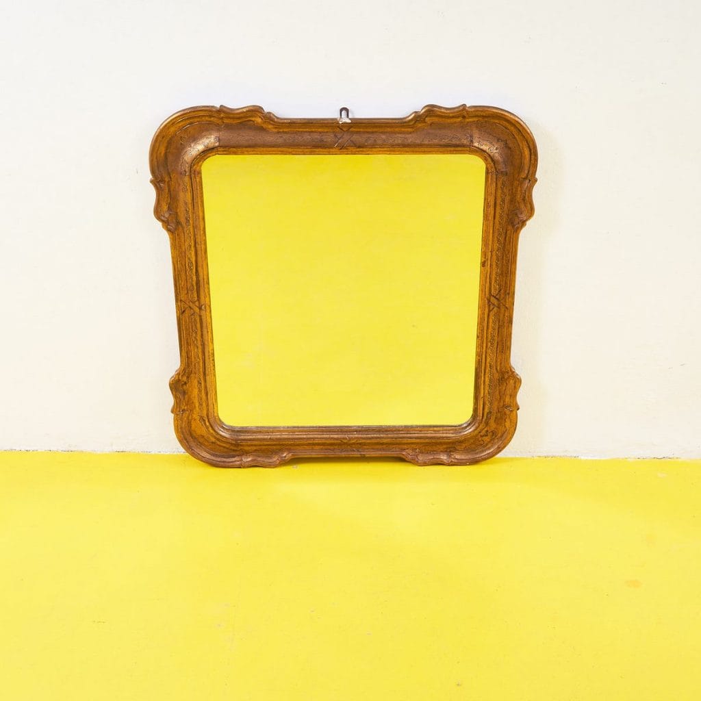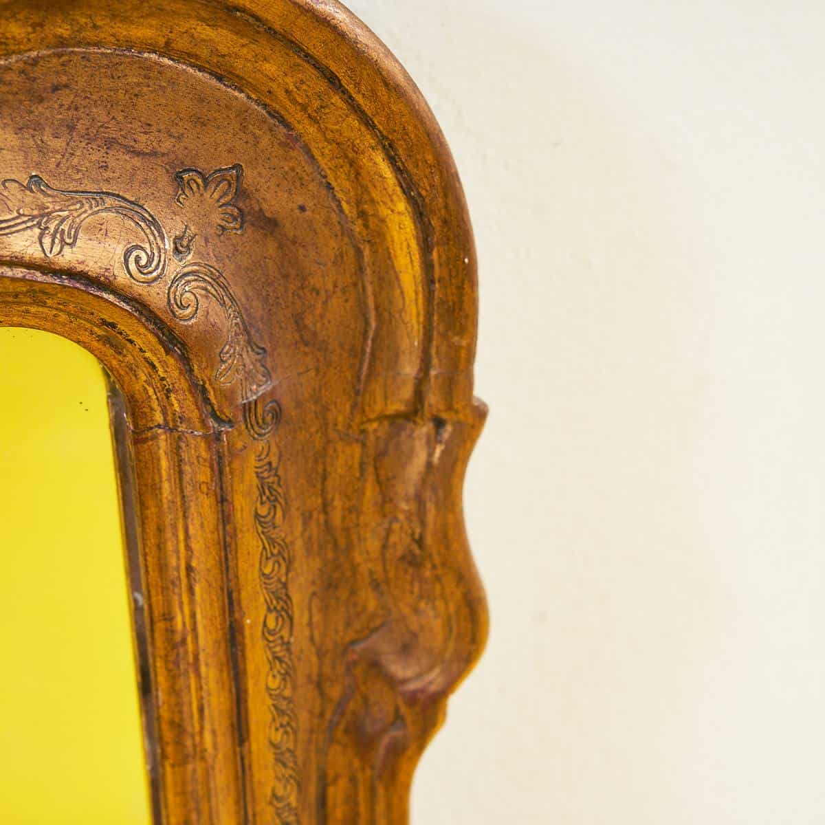Questo splendido specchio vintage, incorniciato in legno dorato, rappresenta un perfetto esempio di eleganza retro'. La sua cornice finemente dettagliata, con intagli delicati e finitura lucida, ... Questo splendido specchio vintage, incorniciato in legno dorato, rappresenta un perfetto esempio di eleganza retro'. La sua cornice finemente dettagliata, con intagli delicati e finitura lucida, cattura immediatamente l'attenzione. Ideale per ogni ambiente domestico, questo specchio porta un tocco di raffinatezza sia in un soggiorno che in una camera da letto. La tonalita' oro, calda e accogliente, rende l'oggetto un perfetto compagno per altri elementi di arredo vintage, creando un'atmosfera romantica e nostalgica. Un must-have per gli amanti dell'arte e del design che desiderano aggiungere un elemento distintivo alla loro casa. Altro