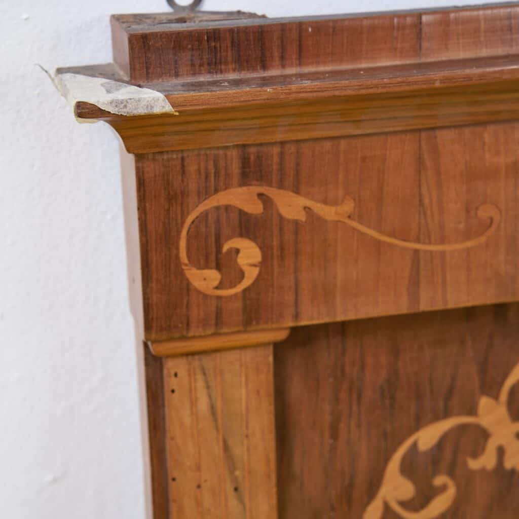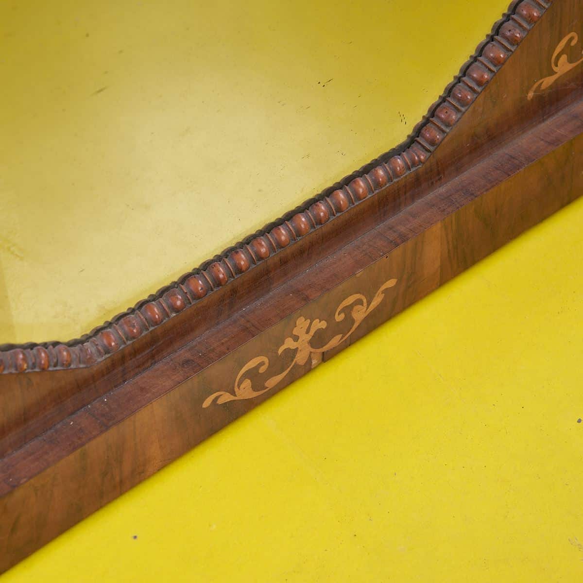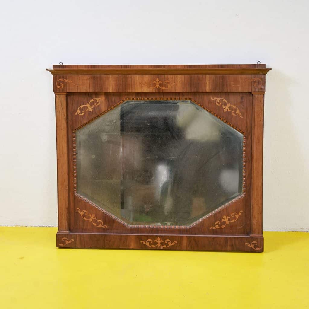 specchio ottagonale antico in legno intarsiato, periodo impero carlo x