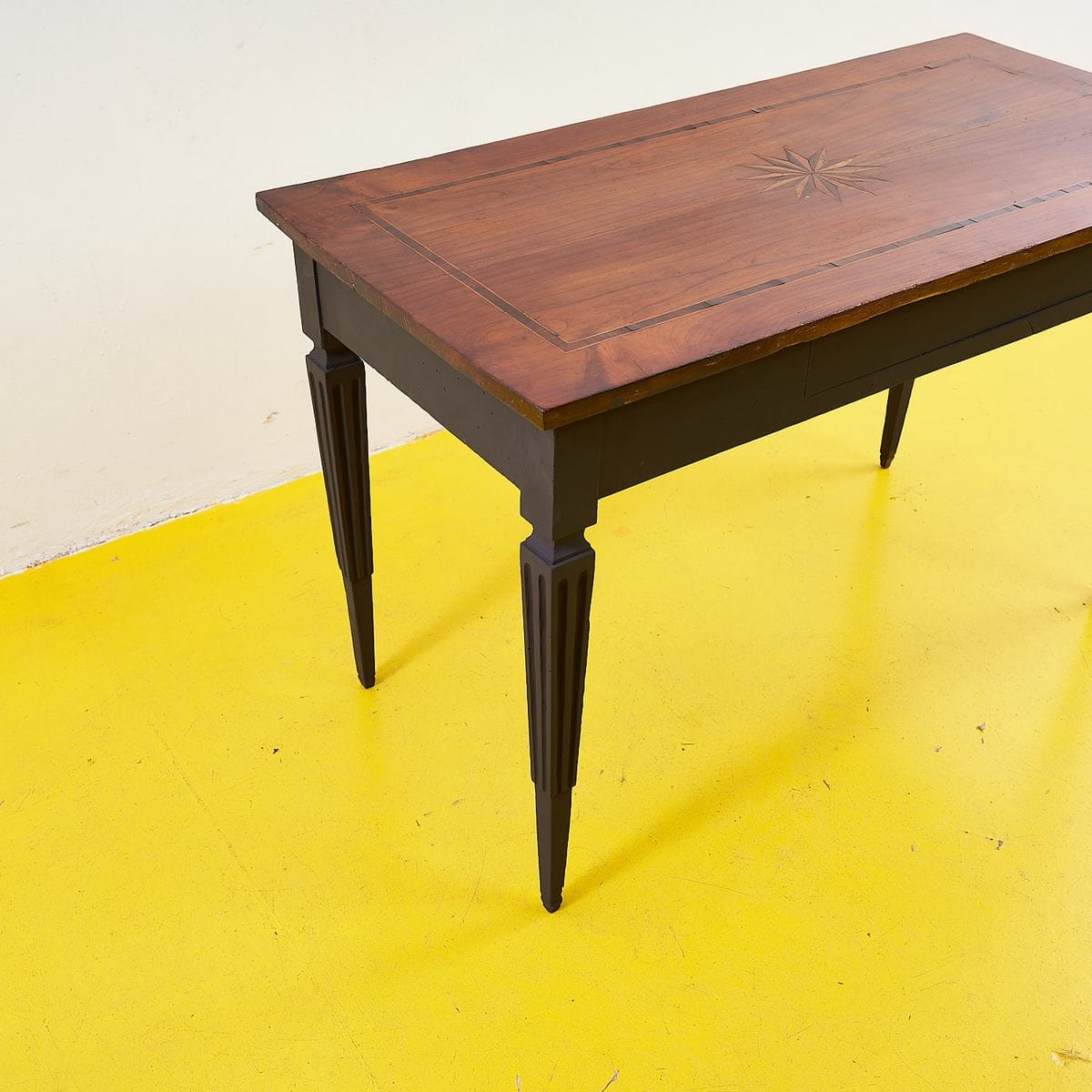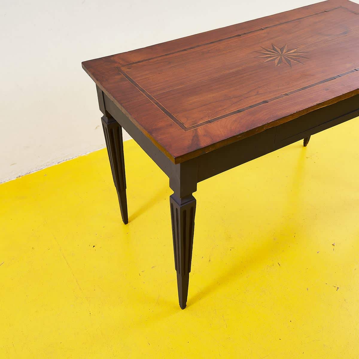 Scopri l'eleganza senza tempo di questo tavolo in legno intarsiato, un pezzo che unisce funzionalita' e design raffinato. Realizzato con una struttura solida, il tavolo presenta un top in le... Scopri l'eleganza senza tempo di questo tavolo in legno intarsiato, un pezzo che unisce funzionalita' e design raffinato. Realizzato con una struttura solida, il tavolo presenta un top in legno pregiato adornato da un delicato intarsio a forma di stella, che ne esalta la bellezza. Le gambe slanciate e finemente lavorate conferiscono alla composizione un tocco di sofisticatezza, rendendolo ideale per ogni ambiente, dalla cucina al soggiorno. Perfetto per chi ama il design classico con un accento moderno, questo tavolo sara' il protagonista dei tuoi spazi. Non lasciarti sfuggire l'opportunita' di possedere un pezzo d'arte funzionale. Altro