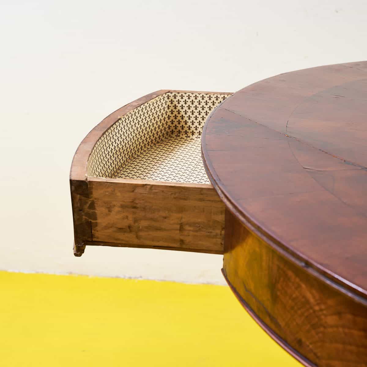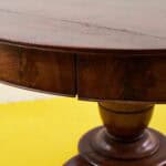 Scopri questo straordinario tavolo rotondo in legno massello, un pezzo di design unico che unisce funzionalita' e raffinatezza. Caratterizzato da una base solida con curvilinei dettagli e un'... Scopri questo straordinario tavolo rotondo in legno massello, un pezzo di design unico che unisce funzionalita' e raffinatezza. Caratterizzato da una base solida con curvilinei dettagli e un'attraente finitura in mogano, questo tavolo presenta cassetti integrati per un pratico supporto. La superficie e' adornata da eleganti intarsi che richiamano l'estetica classica. Ideale per cene intime o momenti conviviali, questo tavolo evoca un fascino d'altri tempi e aggiunge un tocco di classe a qualsiasi ambiente. Sia che si tratti di un soggiorno moderno o di una sala da pranzo rustica, questo oggetto sara' sicuramente il fulcro della tua casa. Altro