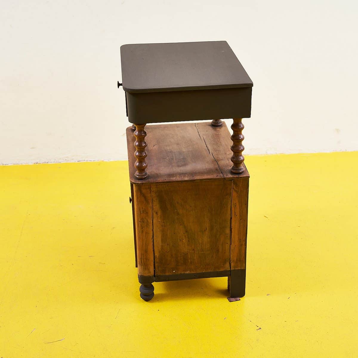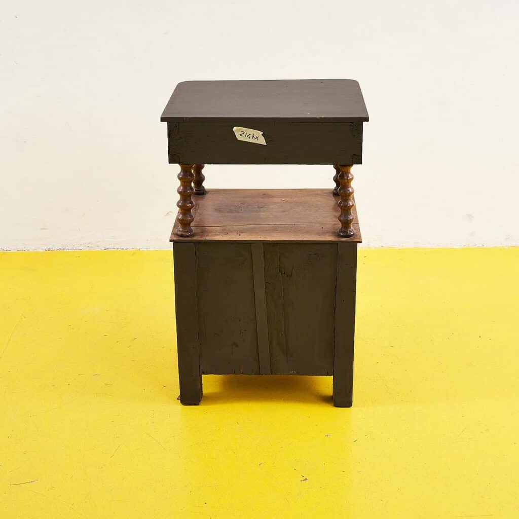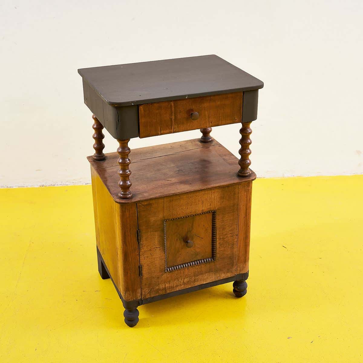 Scopri un pezzo unico di design vintage con questo tavolino antico, perfetto per ogni ambiente. Realizzato in legno pregiato, questo tavolino presenta un piano superiore scuro e un corpo in legno natu... Scopri un pezzo unico di design vintage con questo tavolino antico, perfetto per ogni ambiente. Realizzato in legno pregiato, questo tavolino presenta un piano superiore scuro e un corpo in legno naturale che ne esalta il carattere autentico. Il design e' arricchito da gambe a colonna torcigliata e da un pratico cassetto, ideale per riporre piccoli oggetti. Con un aspetto che parla di storia e tradizione, questo tavolino e' la scelta perfetta per chi cerca un tocco di classe e originalita' nei propri spazi. Perfetto anche come complemento d'arredo in un salotto o in un ingresso. Altro