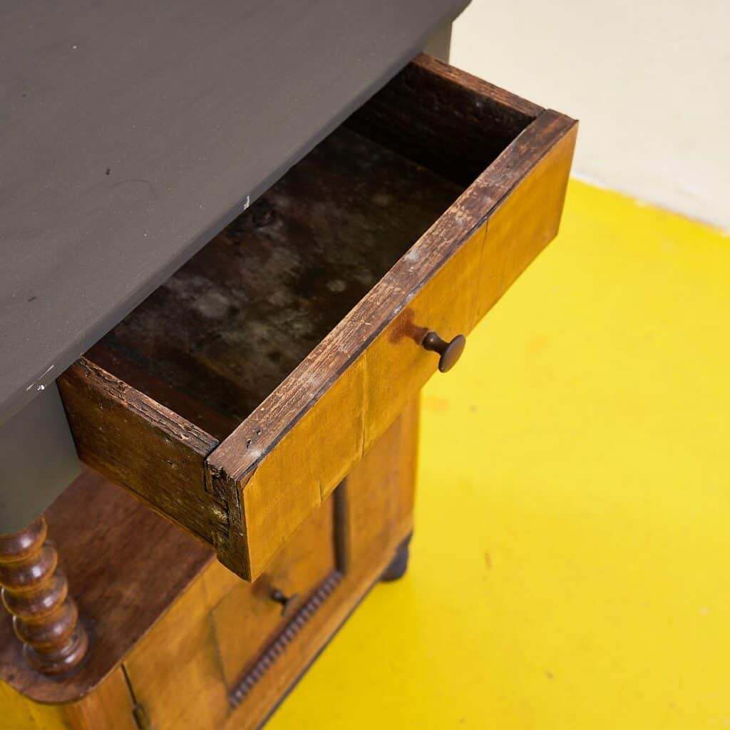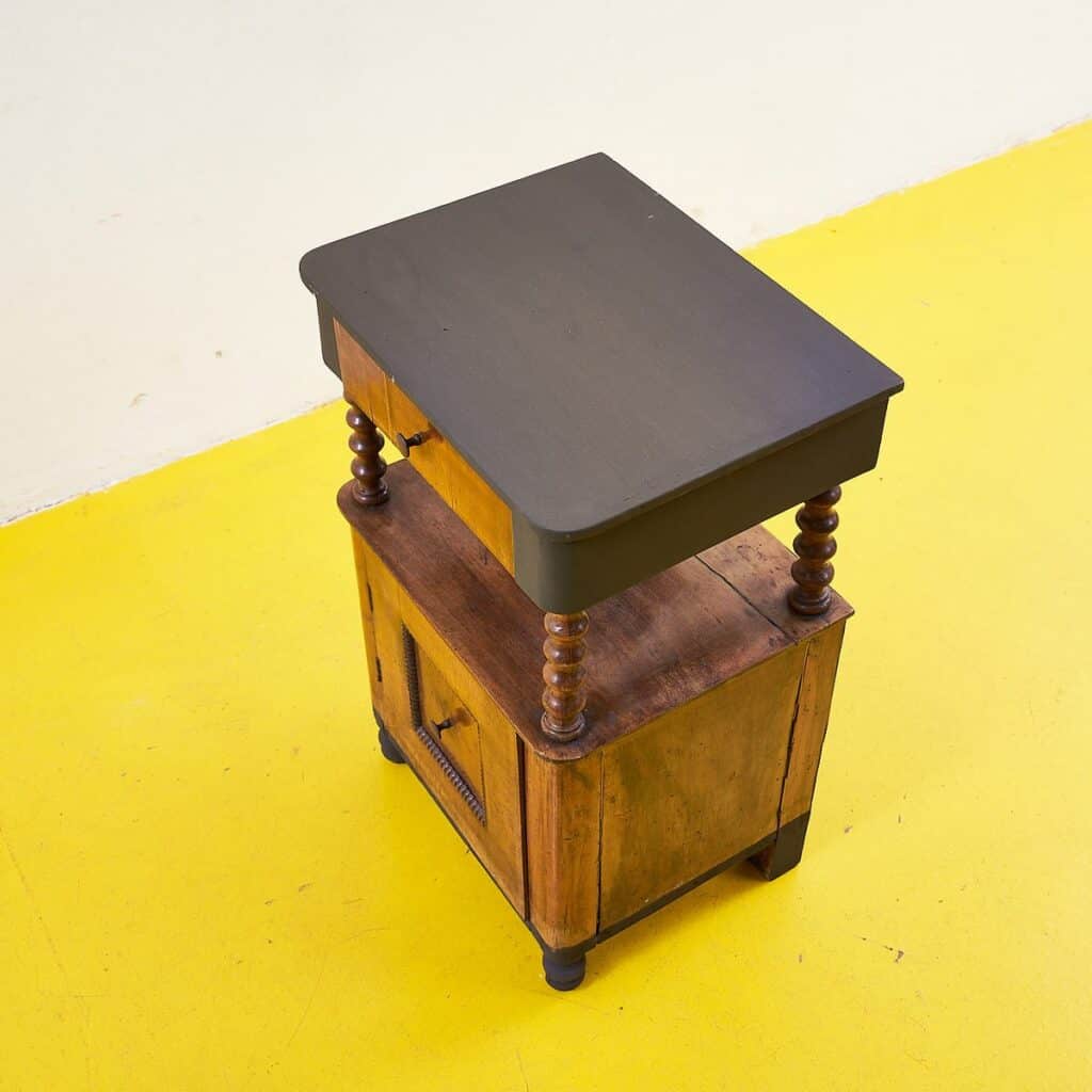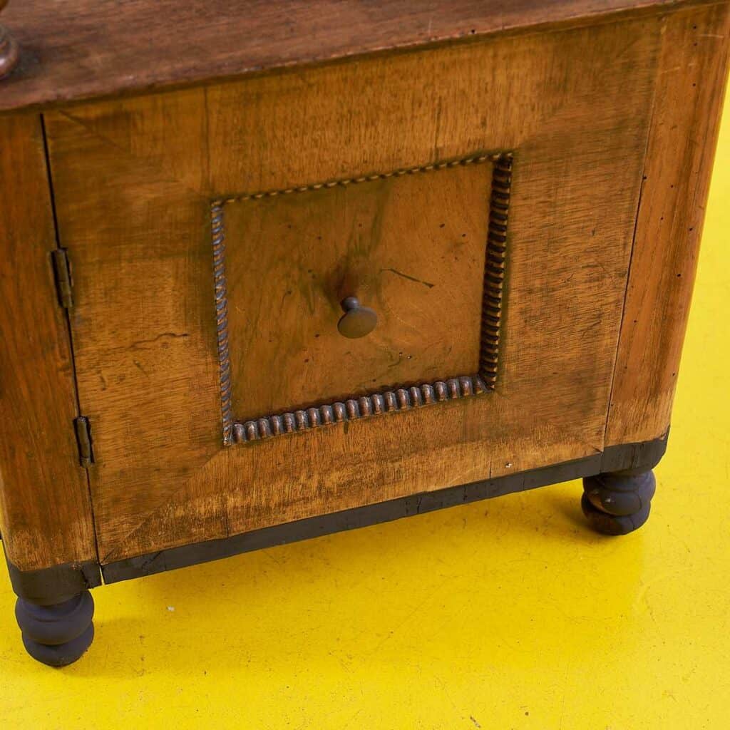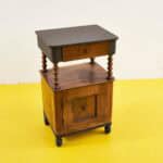 Scopri un pezzo unico di design vintage con questo tavolino antico, perfetto per ogni ambiente. Realizzato in legno pregiato, questo tavolino presenta un piano superiore scuro e un corpo in legno natu... Scopri un pezzo unico di design vintage con questo tavolino antico, perfetto per ogni ambiente. Realizzato in legno pregiato, questo tavolino presenta un piano superiore scuro e un corpo in legno naturale che ne esalta il carattere autentico. Il design e' arricchito da gambe a colonna torcigliata e da un pratico cassetto, ideale per riporre piccoli oggetti. Con un aspetto che parla di storia e tradizione, questo tavolino e' la scelta perfetta per chi cerca un tocco di classe e originalita' nei propri spazi. Perfetto anche come complemento d'arredo in un salotto o in un ingresso. Altro