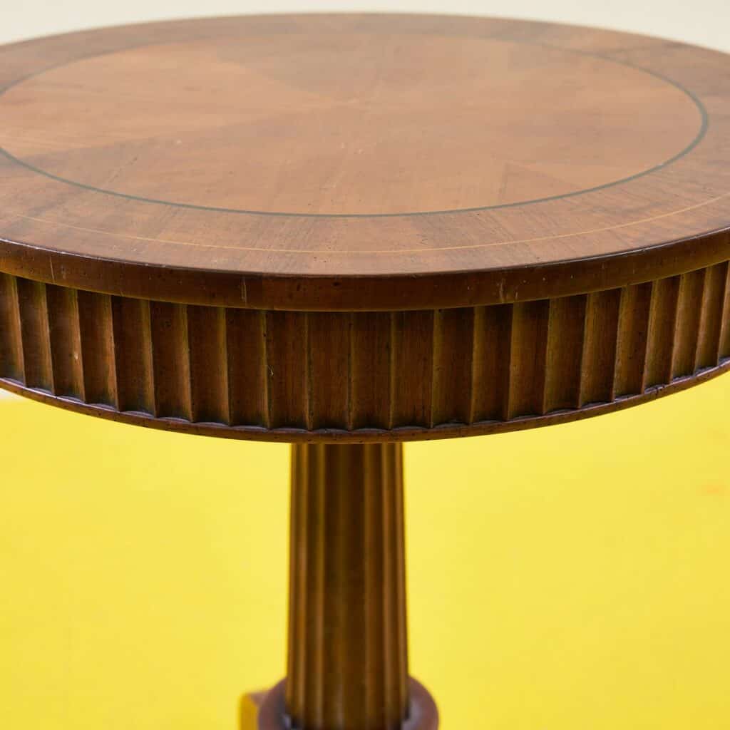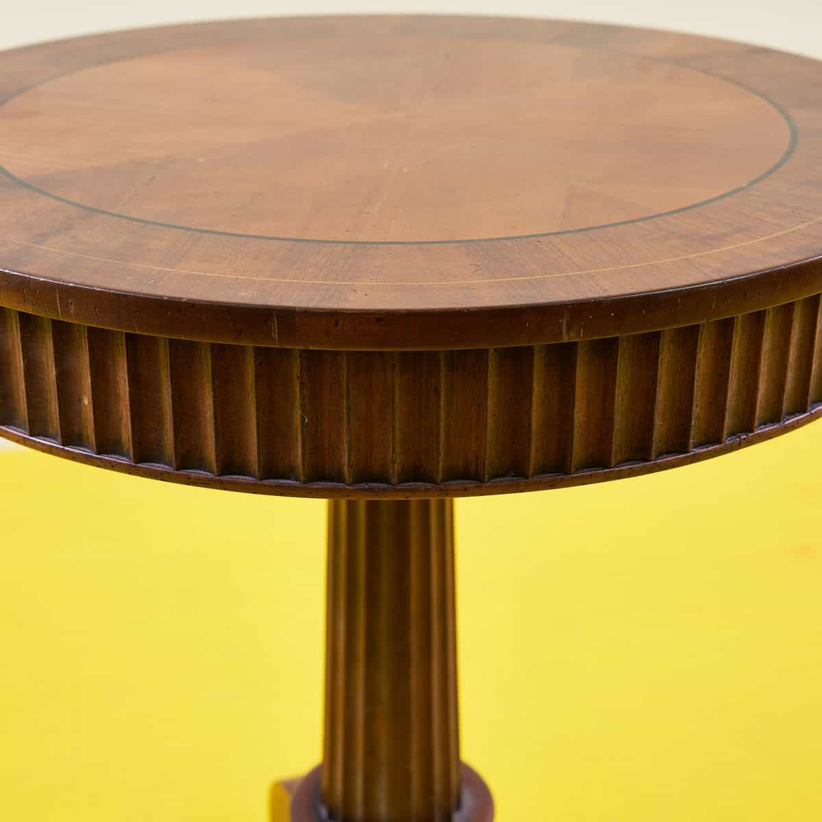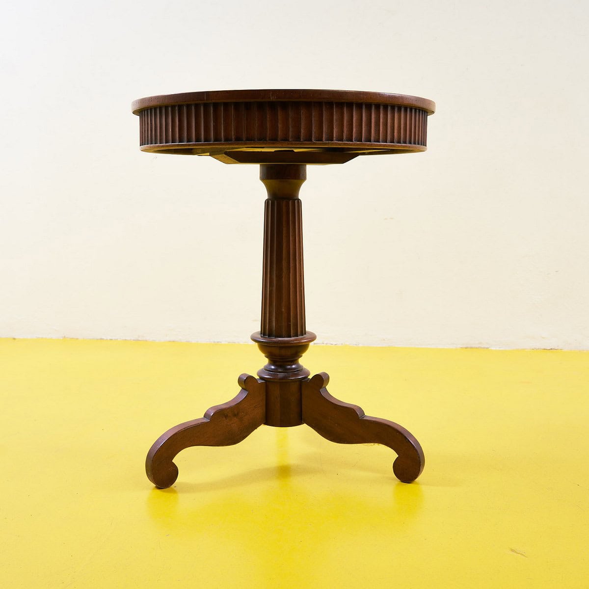 Scopri il fascino senza tempo di questo tavolino in legno massello, caratterizzato da una base solida e un design raffinato. Con il suo piano arrotondato e dettagli a costine sul fusto, questo pezzo u... Scopri il fascino senza tempo di questo tavolino in legno massello, caratterizzato da una base solida e un design raffinato. Con il suo piano arrotondato e dettagli a costine sul fusto, questo pezzo unisce eleganza e funzionalita', perfetto per ogni ambiente. Ideale come tavolino da caffe' o come supporto per lampade, il suo legno pregiato evoca un'atmosfera calda e accogliente. Aggiungi un tocco di classe alla tua casa con un elemento che racconta una storia e mostra il tuo amore per il design di qualita'. Altro