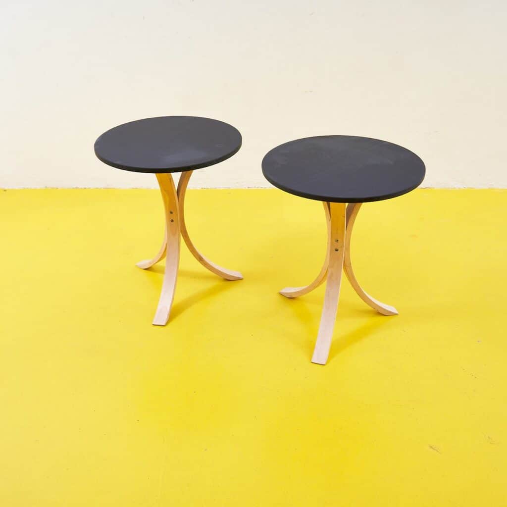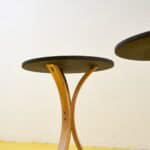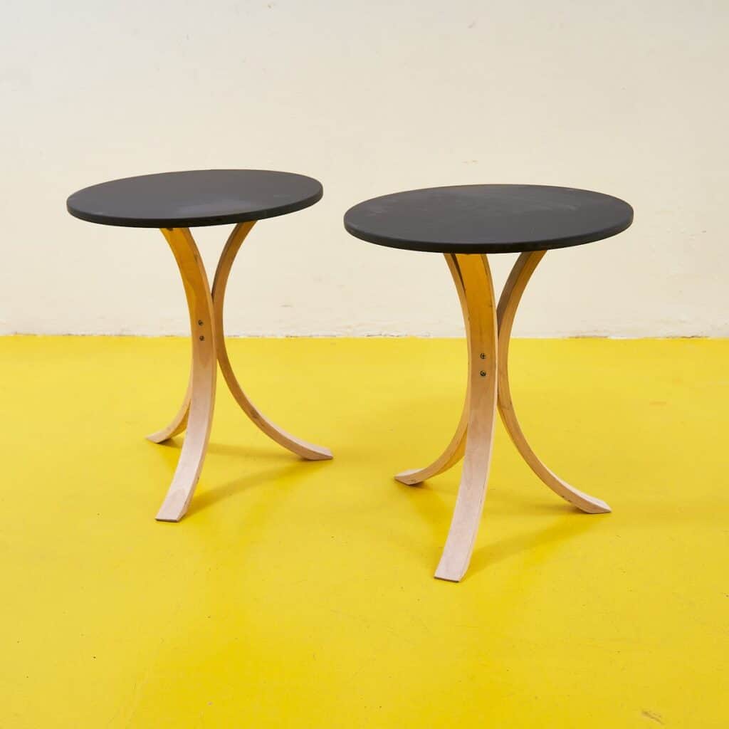 Scopri questi raffinati tavolini da caffe' in legno, perfetti per aggiungere un tocco di stile alla tua casa. Caratterizzati da un design semplice ed elegante, questi tavolini presentano un piano... Scopri questi raffinati tavolini da caffe' in legno, perfetti per aggiungere un tocco di stile alla tua casa. Caratterizzati da un design semplice ed elegante, questi tavolini presentano un piano circolare nero e gambe curvate in legno chiaro che garantiscono stabilita' e originalita'. Ideali per completare un salotto o un angolo lettura, questi pezzi non solo sono funzionali, ma fungono anche da opere d'arte per la tua abitazione. Sia che tu stia brindando con amici o godendoti un momento di relax, questi tavolini si adattano perfettamente a ogni occasione. Altro