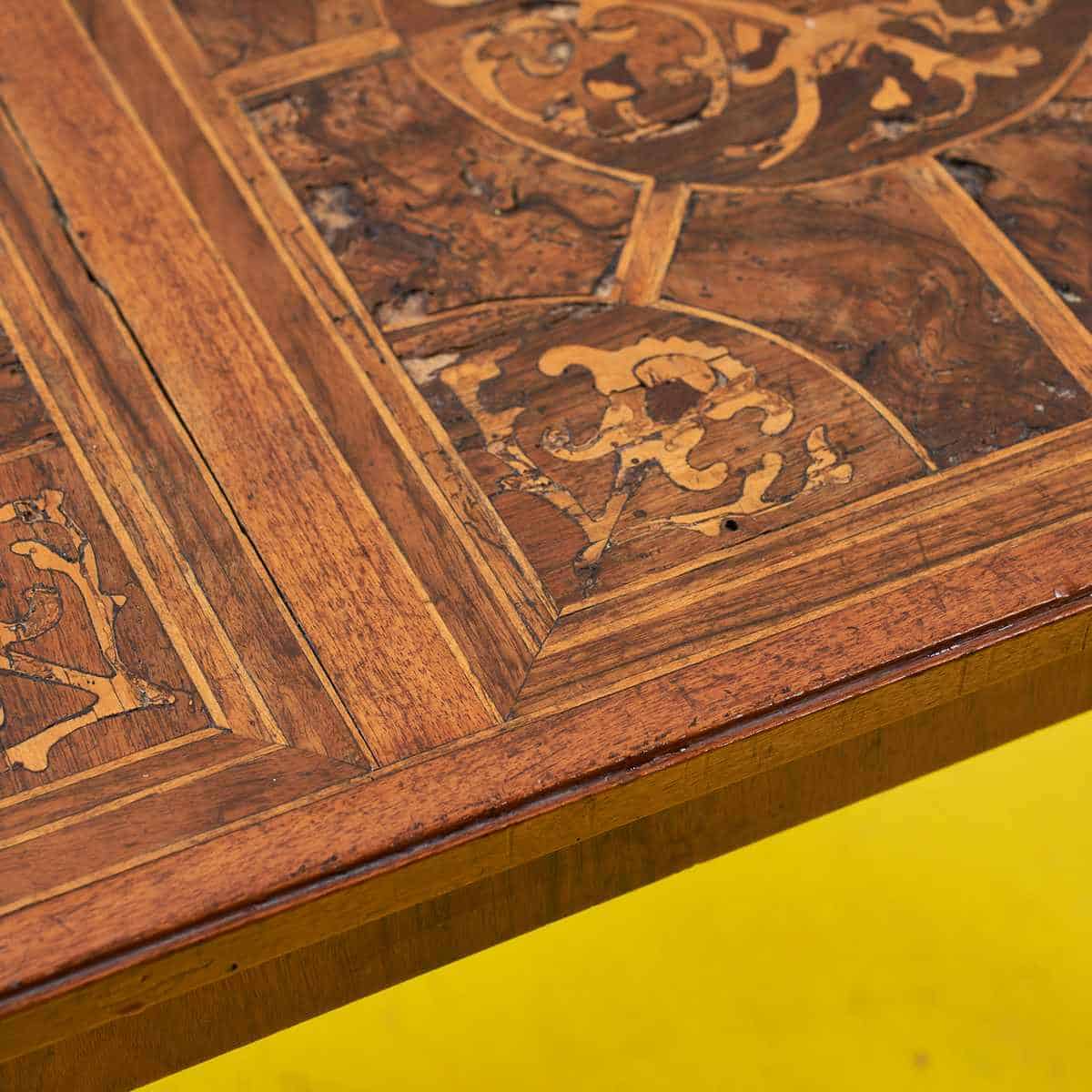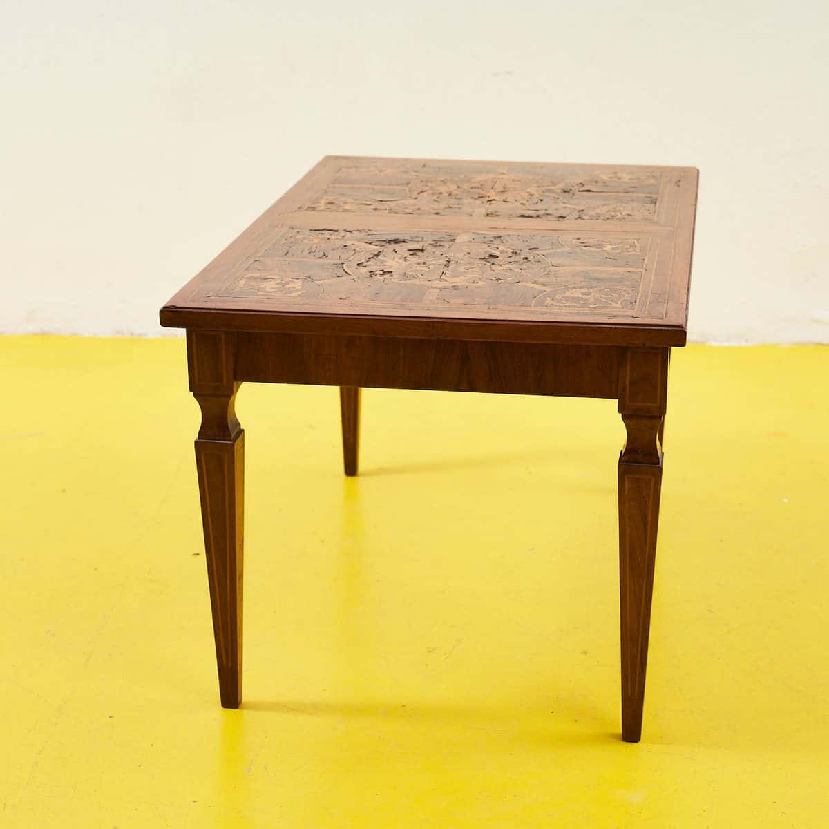 Questo affascinante tavolino e' un pezzo unico nel suo genere, perfetto per chi ama il design di alta qualita' e l'artigianato. Caratterizzato da un delicato intarsio in legno su una su... Questo affascinante tavolino e' un pezzo unico nel suo genere, perfetto per chi ama il design di alta qualita' e l'artigianato. Caratterizzato da un delicato intarsio in legno su una superficie calda e accogliente, il tavolo aggiunge un tocco di eleganza a qualsiasi ambiente. Le gambe slanciate e finemente lavorate conferiscono stabilita' e raffinatezza, rendendolo ideale per cene informali o pranzi in famiglia. Le tracce del tempo parlano della sua storia, rendendo questo articolo non solo un elemento di arredo, ma un vero e proprio pezzo di conversazione. Aggiungi un tocco vintage al tuo spazio con questo straordinario tavolo. Altro