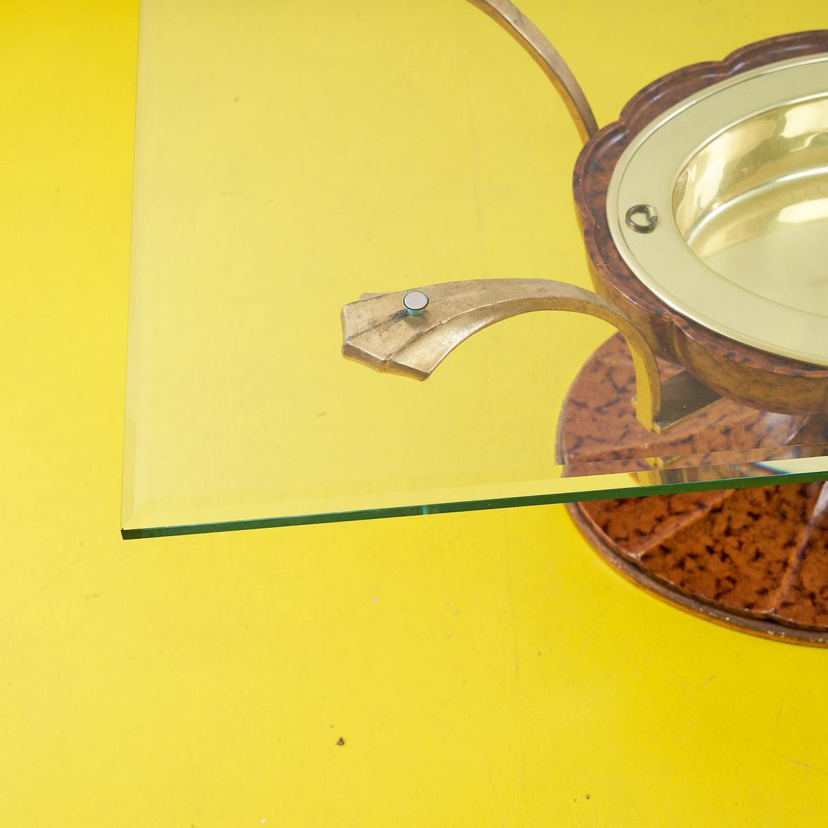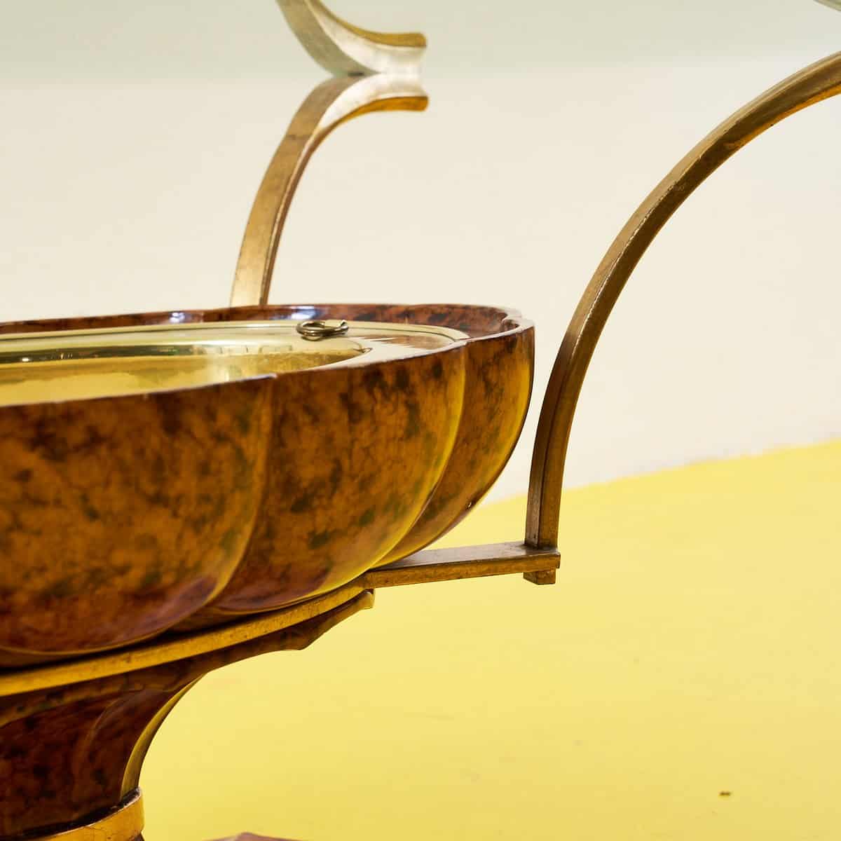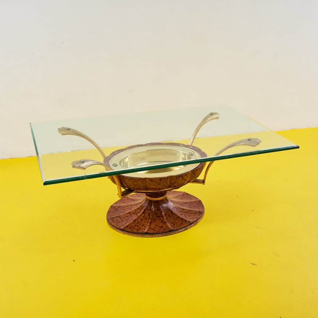 Scopri l'eleganza senza tempo di questo tavolino art de'co, un pezzo unico che combina forme sinuose e materiali pregiati. Con una base in legno finemente lavorato e un piano in vetro, quest... Scopri l'eleganza senza tempo di questo tavolino art de'co, un pezzo unico che combina forme sinuose e materiali pregiati. Con una base in legno finemente lavorato e un piano in vetro, questo mobile non e' solo funzionale, ma anche un'opera d'arte da mettere in mostra nel tuo salotto. La sua particolare struttura presenta un dettaglio in oro che ne esalta la raffinatezza, rendendolo perfetto per ambienti moderni o vintage. Adatto per chi cerca un tocco di classe, questo tavolino e' perfetto come centro di conversazione e per ospitare i tuoi oggetti piu' cari. Altro