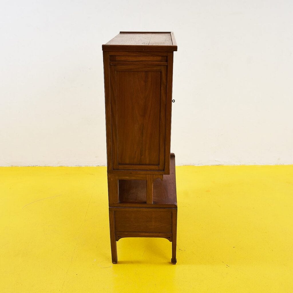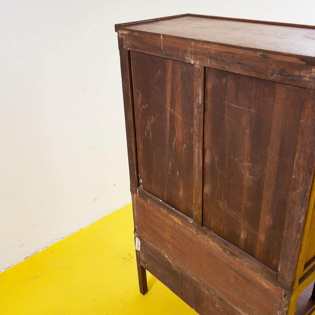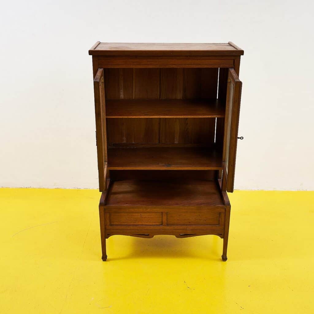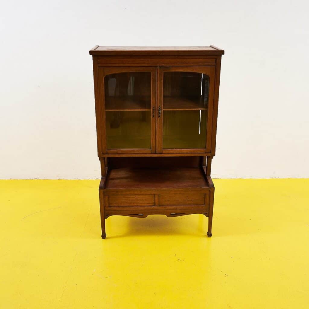 Questo delizioso mobiletto in legno massello rappresenta un'ottima fusione di funzionalita' e design. Con le sue curve eleganti e le porte in vetro, e' il pezzo ideale per esporre colle... Questo delizioso mobiletto in legno massello rappresenta un'ottima fusione di funzionalita' e design. Con le sue curve eleganti e le porte in vetro, e' il pezzo ideale per esporre collezioni preziose o libri. La parte superiore e' dotata di ripiani spaziosi, mentre la parte inferiore offre un comodo cassetto per riporre oggetti. Questo mobiletto non e' solo un complemento d'arredo, ma un pezzo che racconta storie e arricchisce ogni ambiente domestico con il suo fascino vintage. Altro