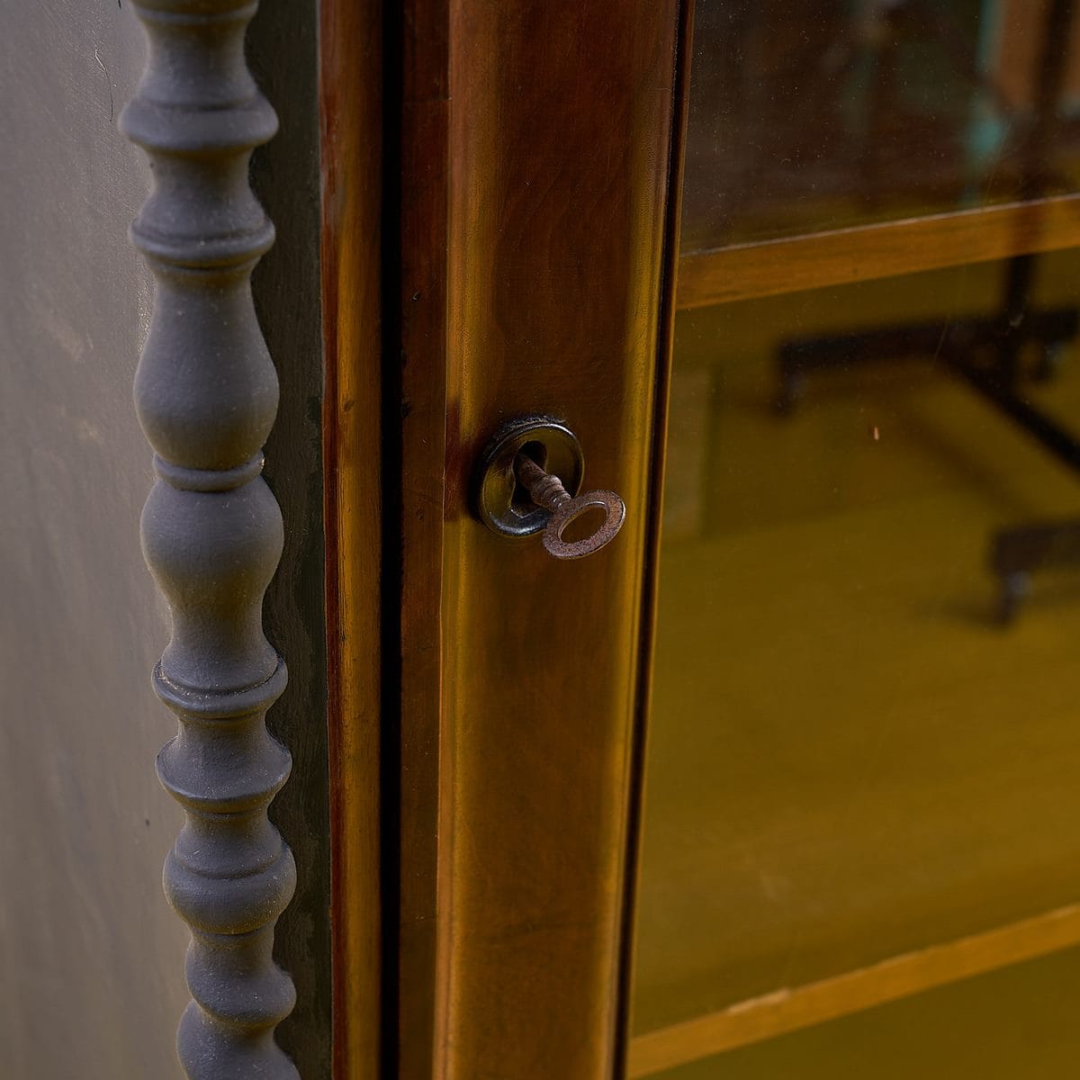 Scopri questa bellissima vetrina antica, realizzata con legni pregiati e caratterizzata da un design raffinato e dettagli curati. La sua struttura presenta una finitura lucida che esalta i venature de... Scopri questa bellissima vetrina antica, realizzata con legni pregiati e caratterizzata da un design raffinato e dettagli curati. La sua struttura presenta una finitura lucida che esalta i venature del legno, mentre le maniglie e le linee decorative testimoniano l'abilita' artigianale di epoche passate. La vetrina dispone di ampio spazio interno per esporre oggetti preziosi, oltre a due pratici cassetti nella parte inferiore. Questo pezzo unico si integra perfettamente in qualsiasi ambiente, donando un tocco di eleganza e storia alla tua casa. Perfetta per collezionisti e amanti dell'antiquariato. Altro