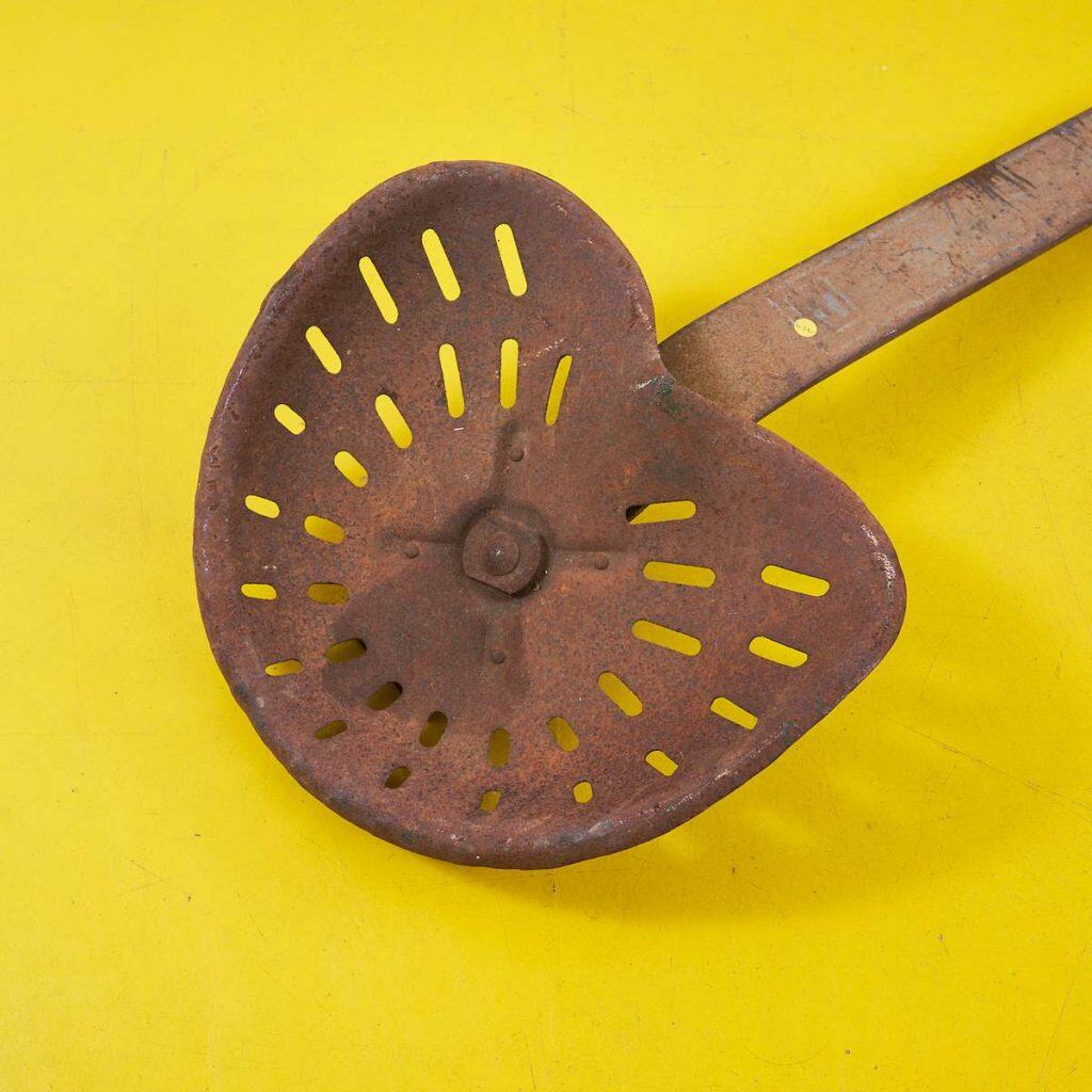 Scoprite l'affascinante antica sella da trattore, realizzata in robusto metallo e caratterizzata da un design unico che riflette l'epoca passata della lavorazione agricola. L'oggetto pr... Scoprite l'affascinante antica sella da trattore, realizzata in robusto metallo e caratterizzata da un design unico che riflette l'epoca passata della lavorazione agricola. L'oggetto presenta una forma ergonomica, arricchita da fori decorativi, che ne migliora l'estetica oltre alla funzionalita'. La sella, con il suo manico in legno, e' un esempio perfetto di come l'arte dell'artigianato si unisca alla praticita'. Questo pezzo puo' trovare la sua collocazione in un ambiente rustico, oppure diventare un elemento distintivo in spazi moderni, portando con se' storie di un tempo ormai andato. Altro