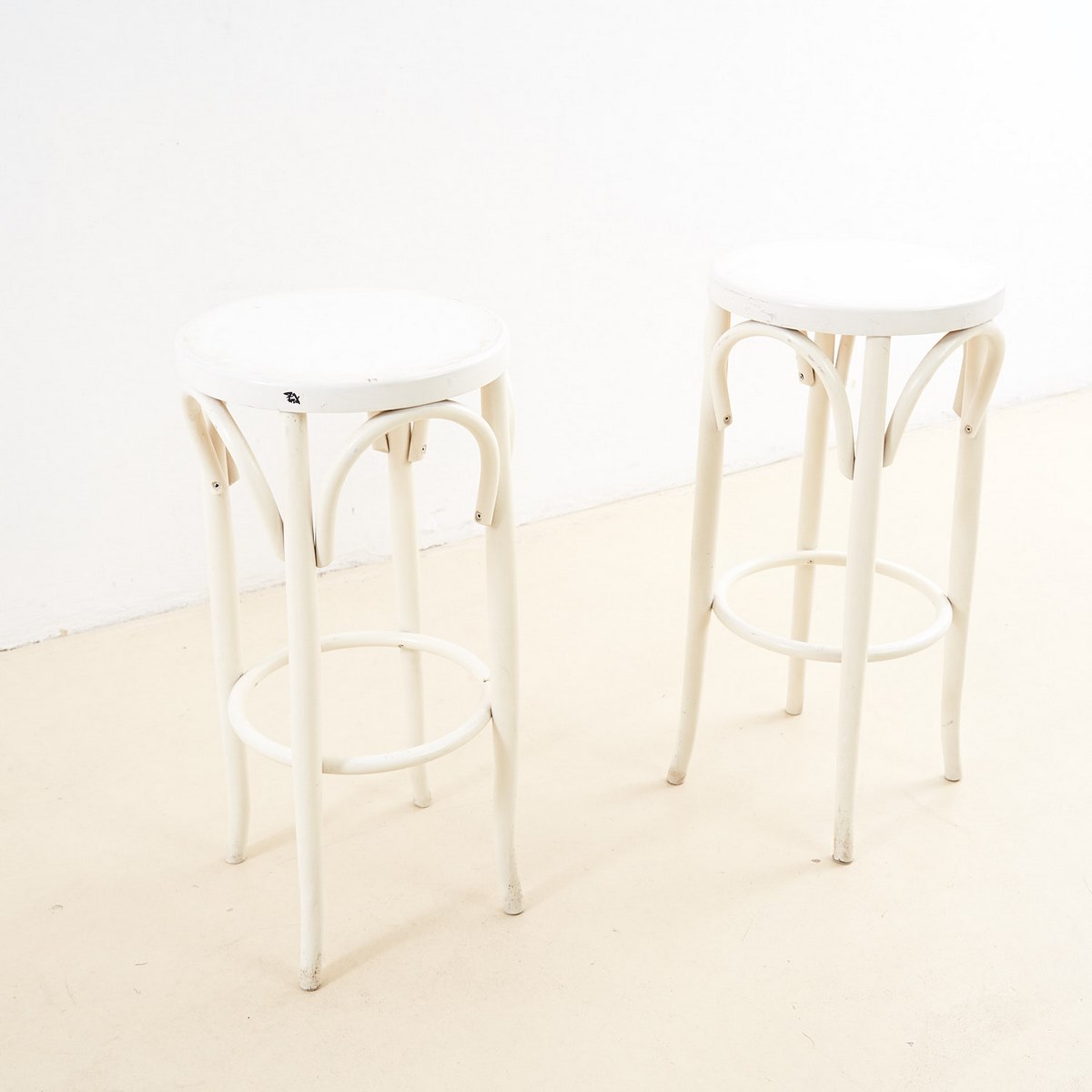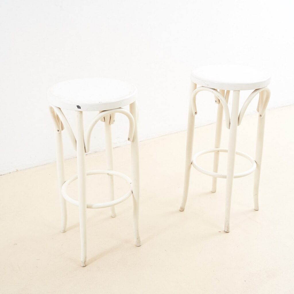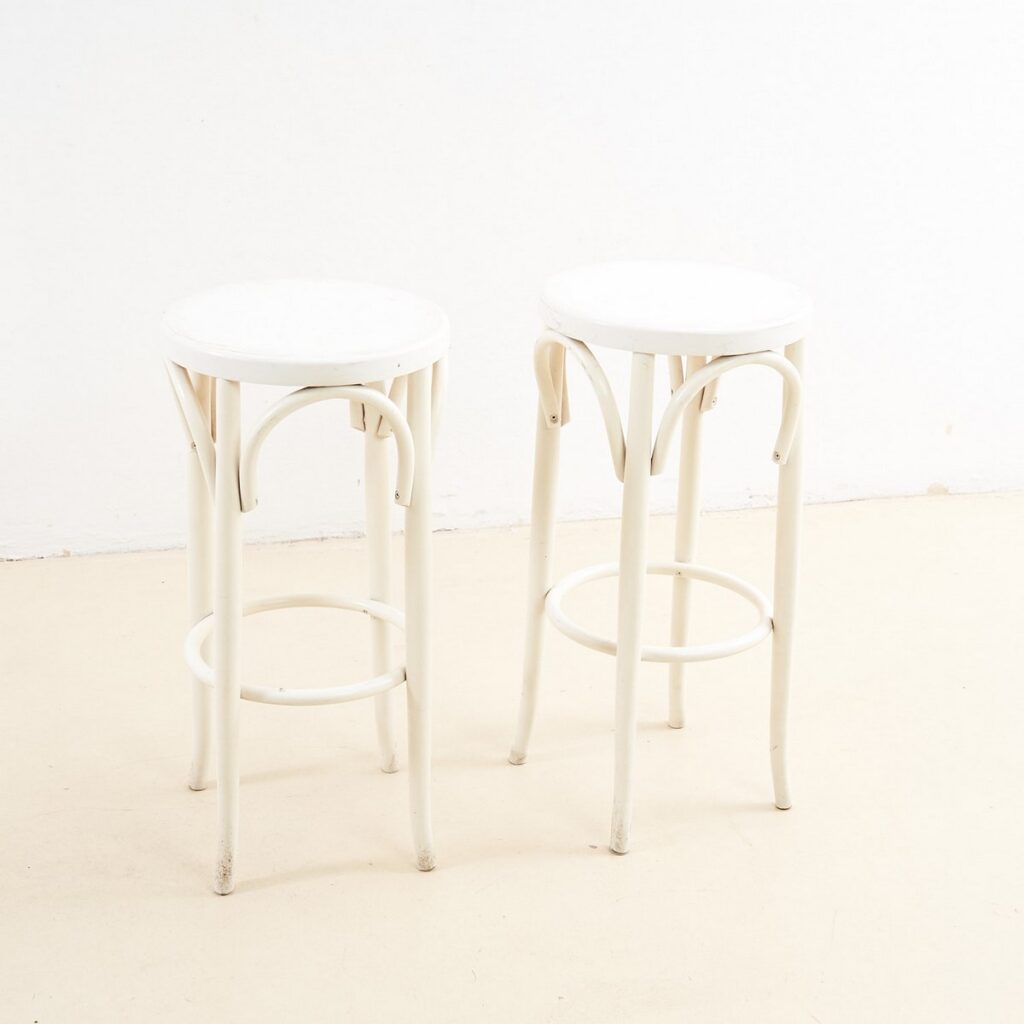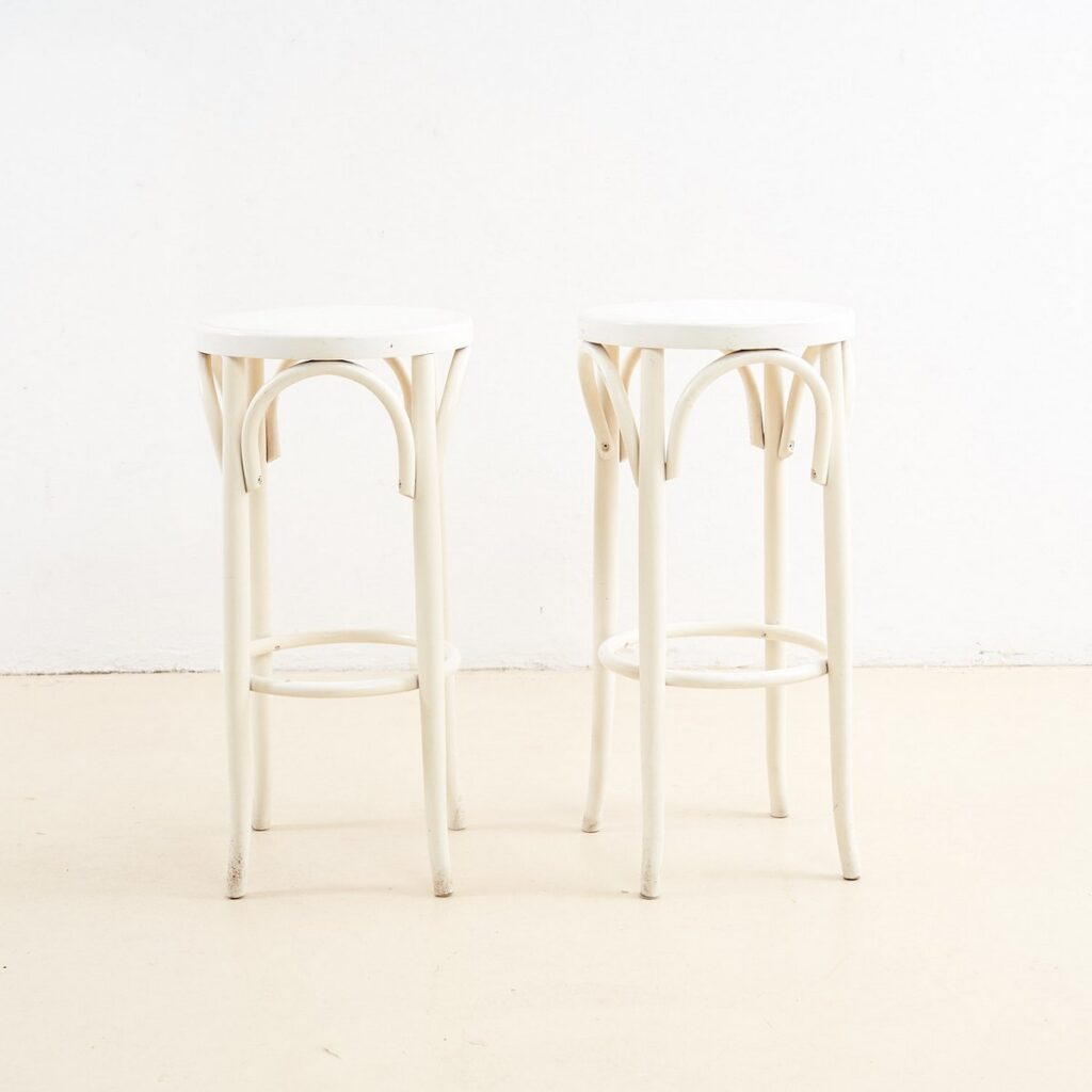 COPPIA DI SGABELLI BIANCHI IN LEGNO CURVATO