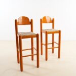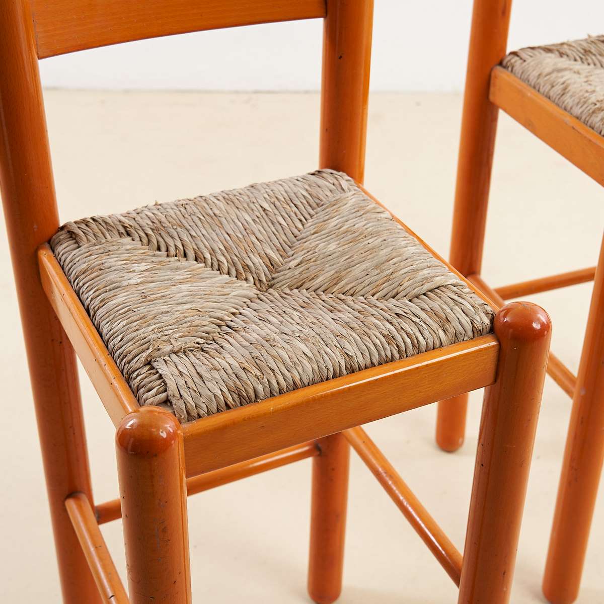 COPPIA DI SGABELLI IN LEGNO IMPAGLIATI