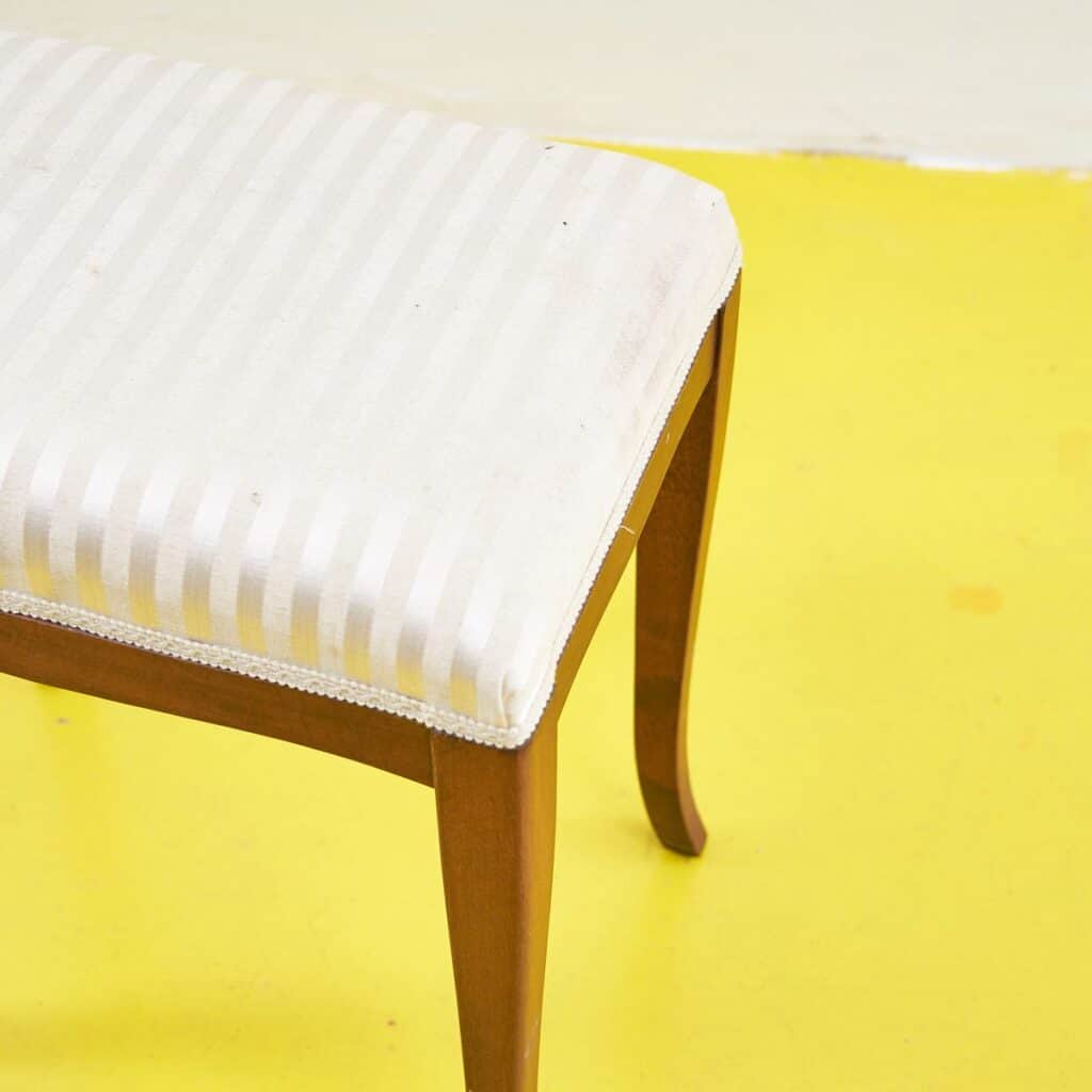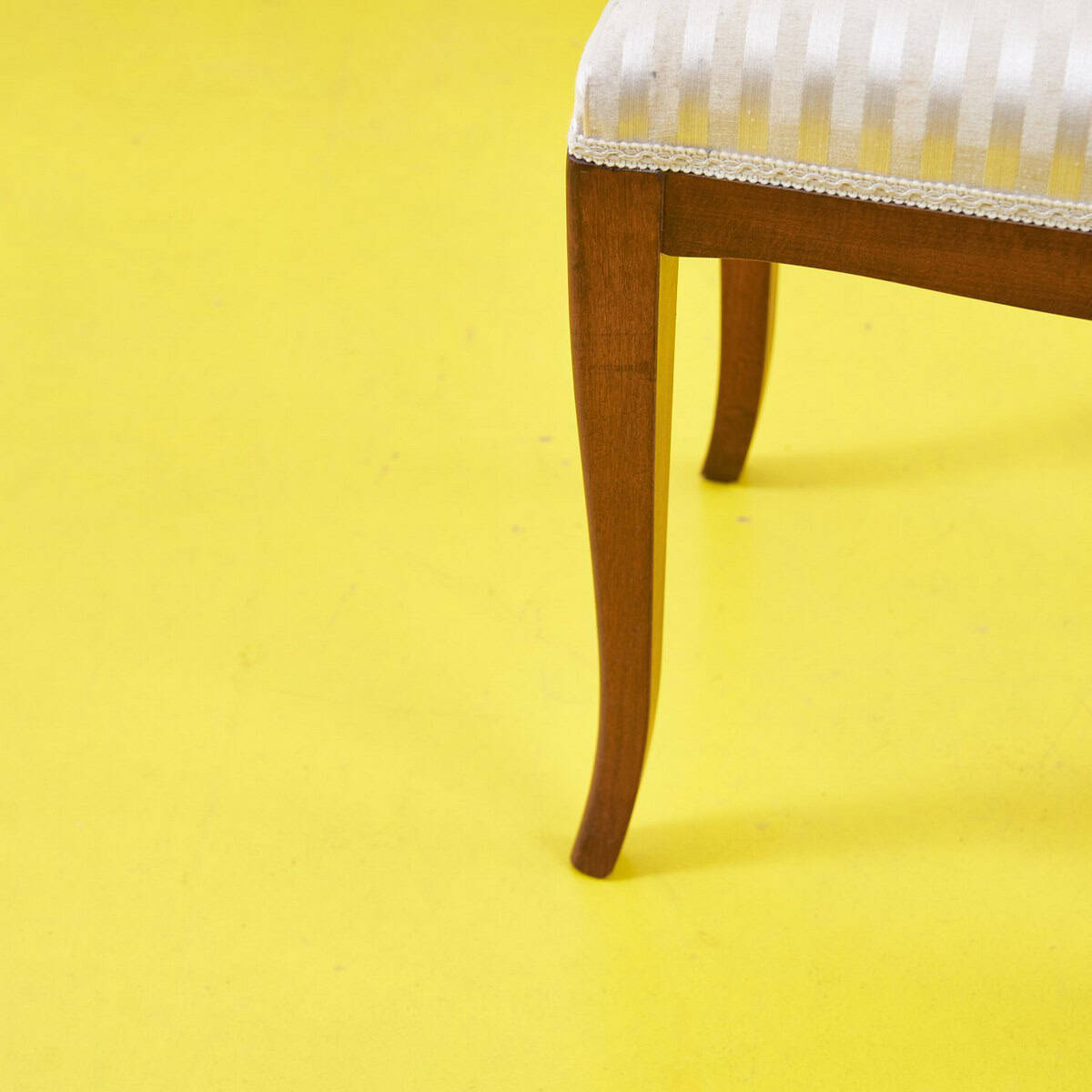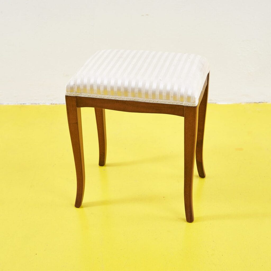 Scopri questo raffinato sgabello in legno di design, ideale per ogni ambiente. Risalente al periodo moderno, questo pezzo si distingue per le sue linee eleganti e la struttura slanciata. La seduta e... Scopri questo raffinato sgabello in legno di design, ideale per ogni ambiente. Risalente al periodo moderno, questo pezzo si distingue per le sue linee eleganti e la struttura slanciata. La seduta e' rivestita in un tessuto beige a righe, che conferisce un tocco di freschezza e stile. I piedi arcuati non solo offrono stabilita', ma aggiungono anche un fascino estetico. In ottime condizioni, questo sgabello e' perfetto come seduta aggiuntiva nel soggiorno, in una camera da letto o come complemento d'arredo in un angolo lettura. Un pezzo versatile e senza tempo, capace di valorizzare ogni tipo di decorazione. Altro