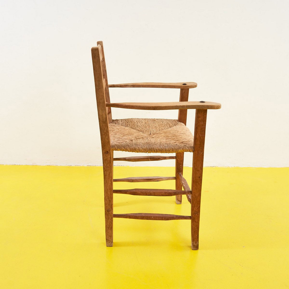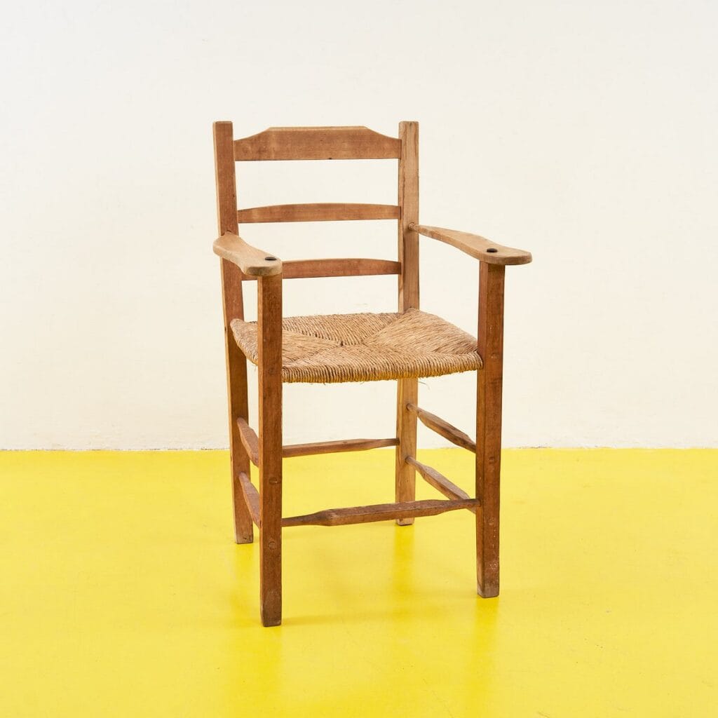 Scopri l'eleganza rustica di questo seggiolone in legno, caratterizzato da una seduta intrecciata in paglia. Perfetto per aggiungere un tocco di autenticita' e calore a qualsiasi ambiente, q... Scopri l'eleganza rustica di questo seggiolone in legno, caratterizzato da una seduta intrecciata in paglia. Perfetto per aggiungere un tocco di autenticita' e calore a qualsiasi ambiente, questo pezzo e' ideale per la cucina, il bar o come accentuazione in un soggiorno. Le linee semplici e il design funzionale parlano di un'epoca in cui ogni oggetto era creato con cura e passione. Ogni dettaglio racconta una storia, portando con se' il fascino di un'arte antica. Combina bellezza e praticita' in un unico pezzo, pronto a diventare protagonista nel tuo spazio. Altro