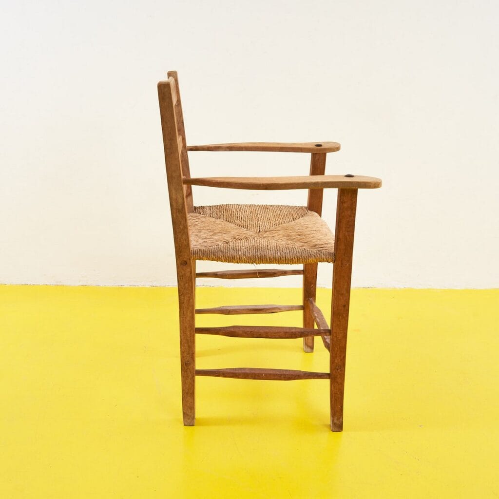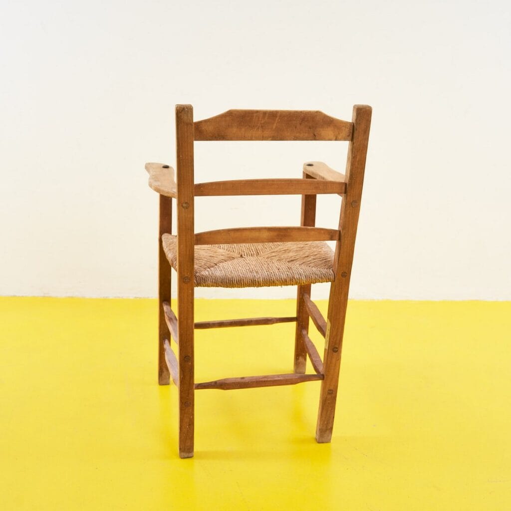 seggiolone rustico primi 900 in legno con seduta impagliata