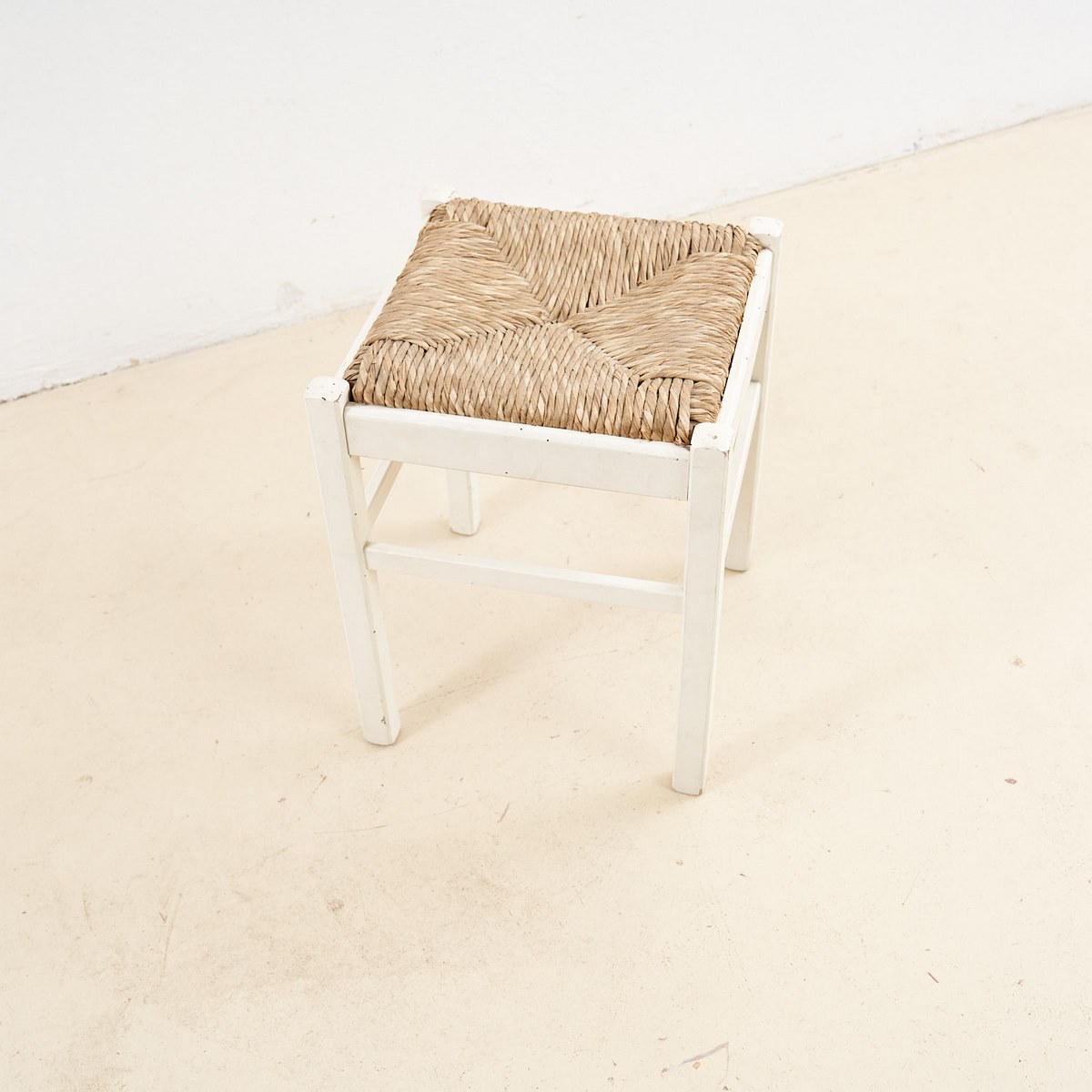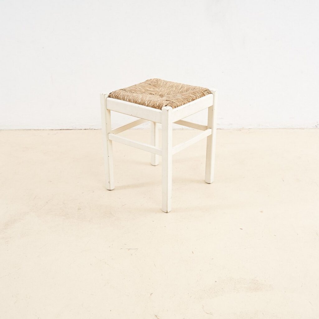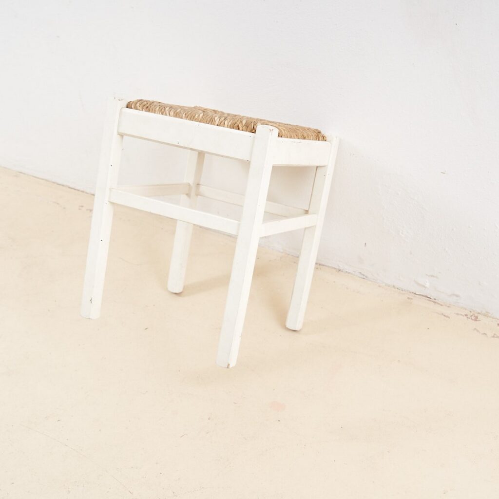 sgabello in legno con seduta impagliata