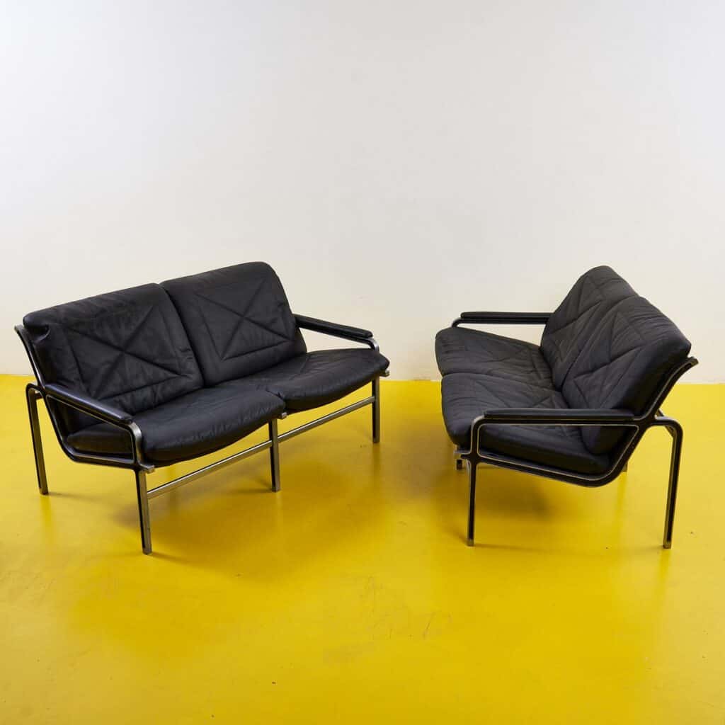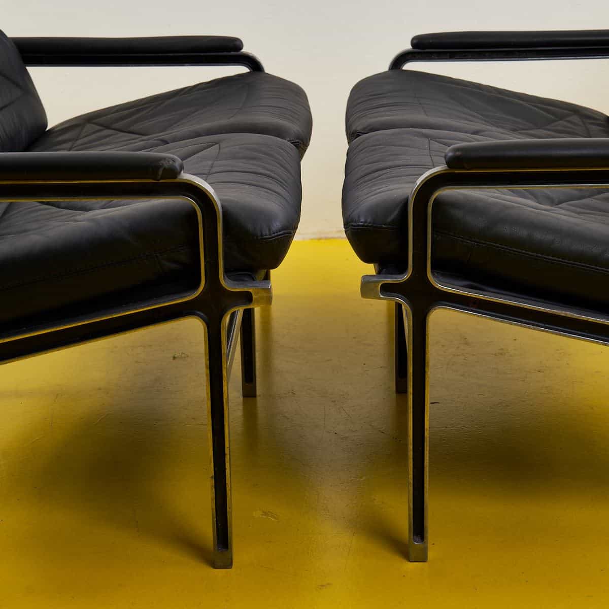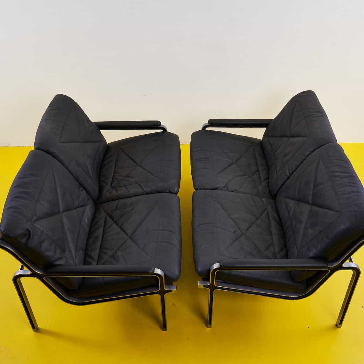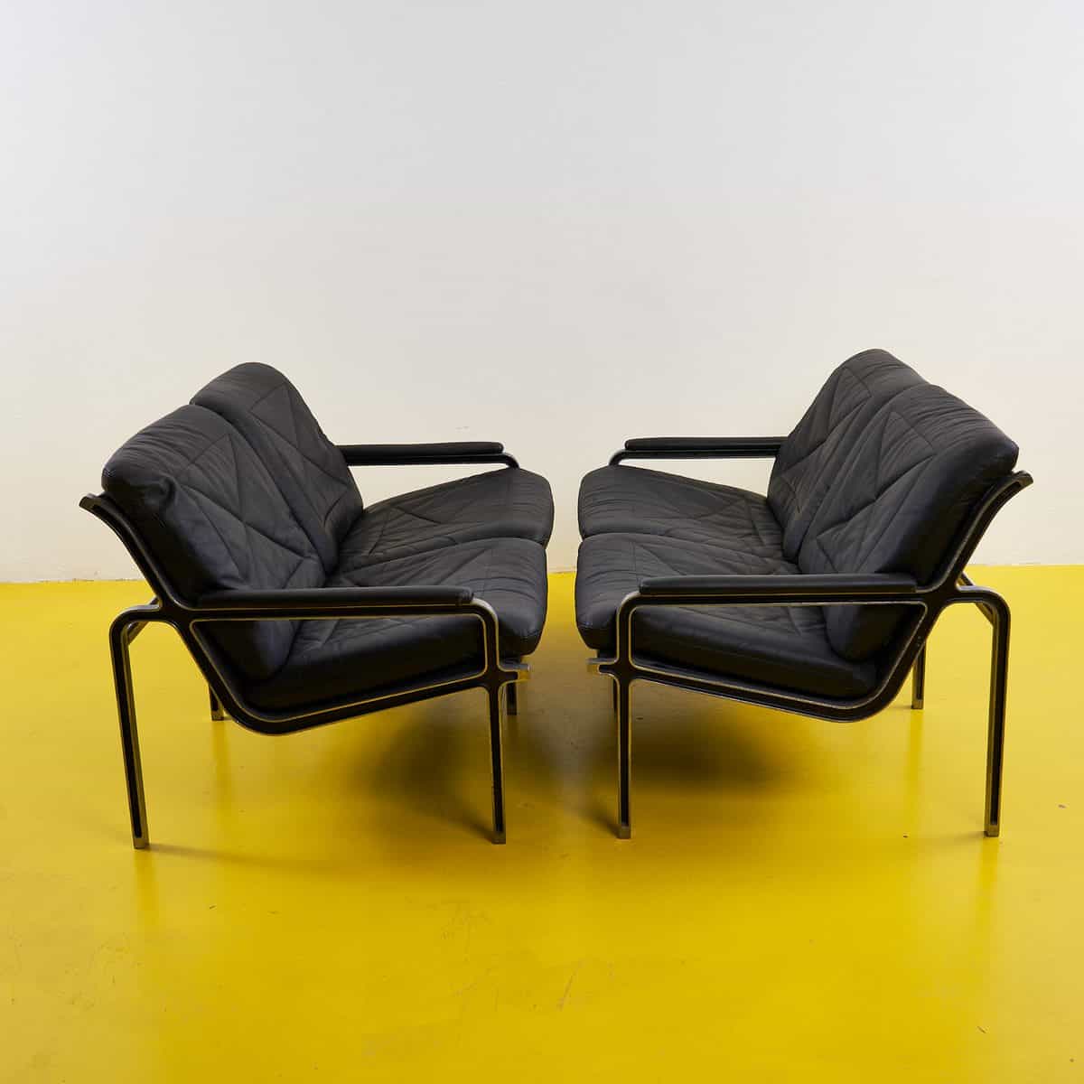 coppia di divani in alluminio e pelle di andre vanden beuck