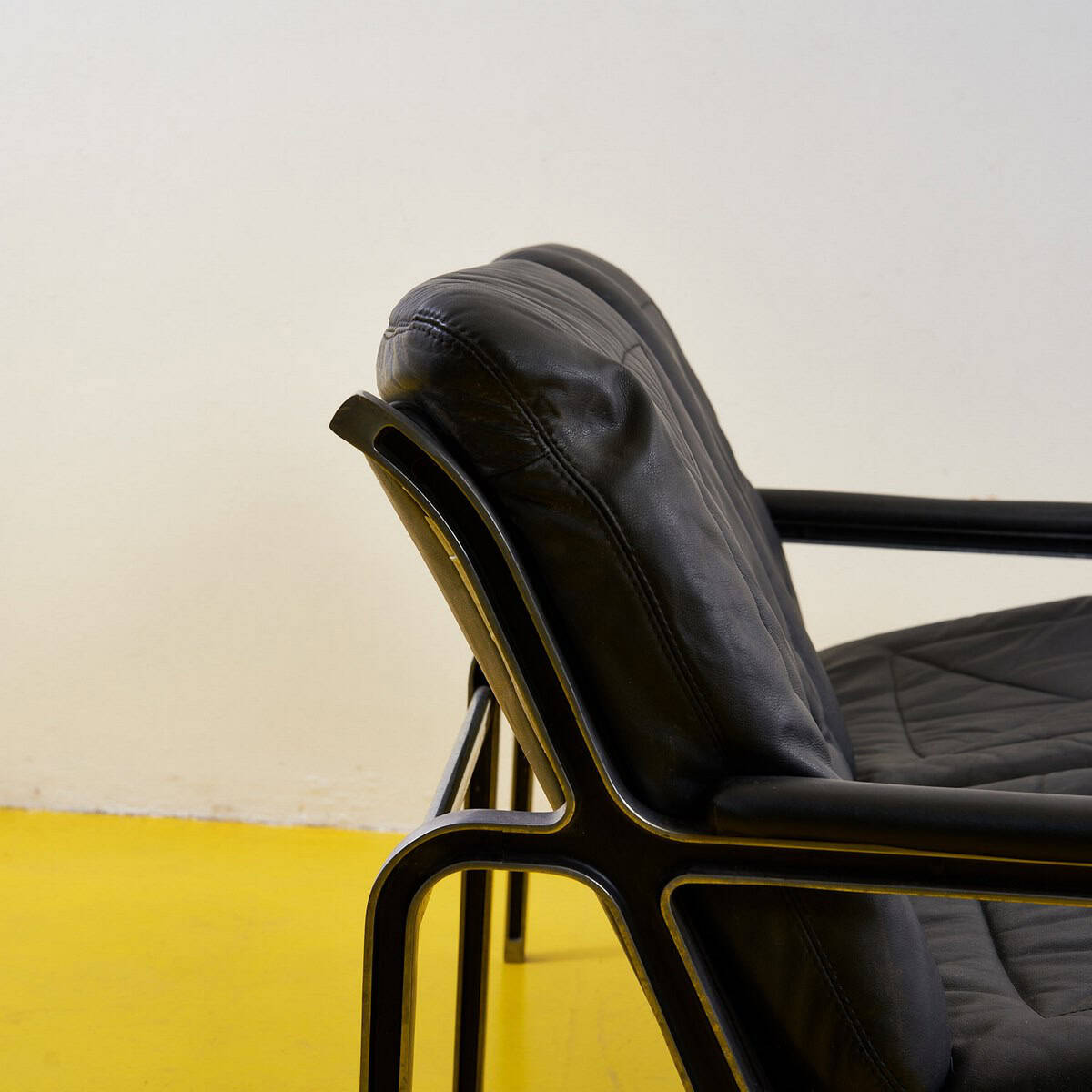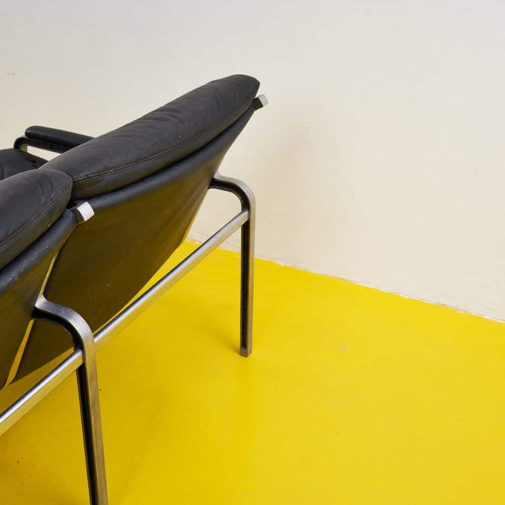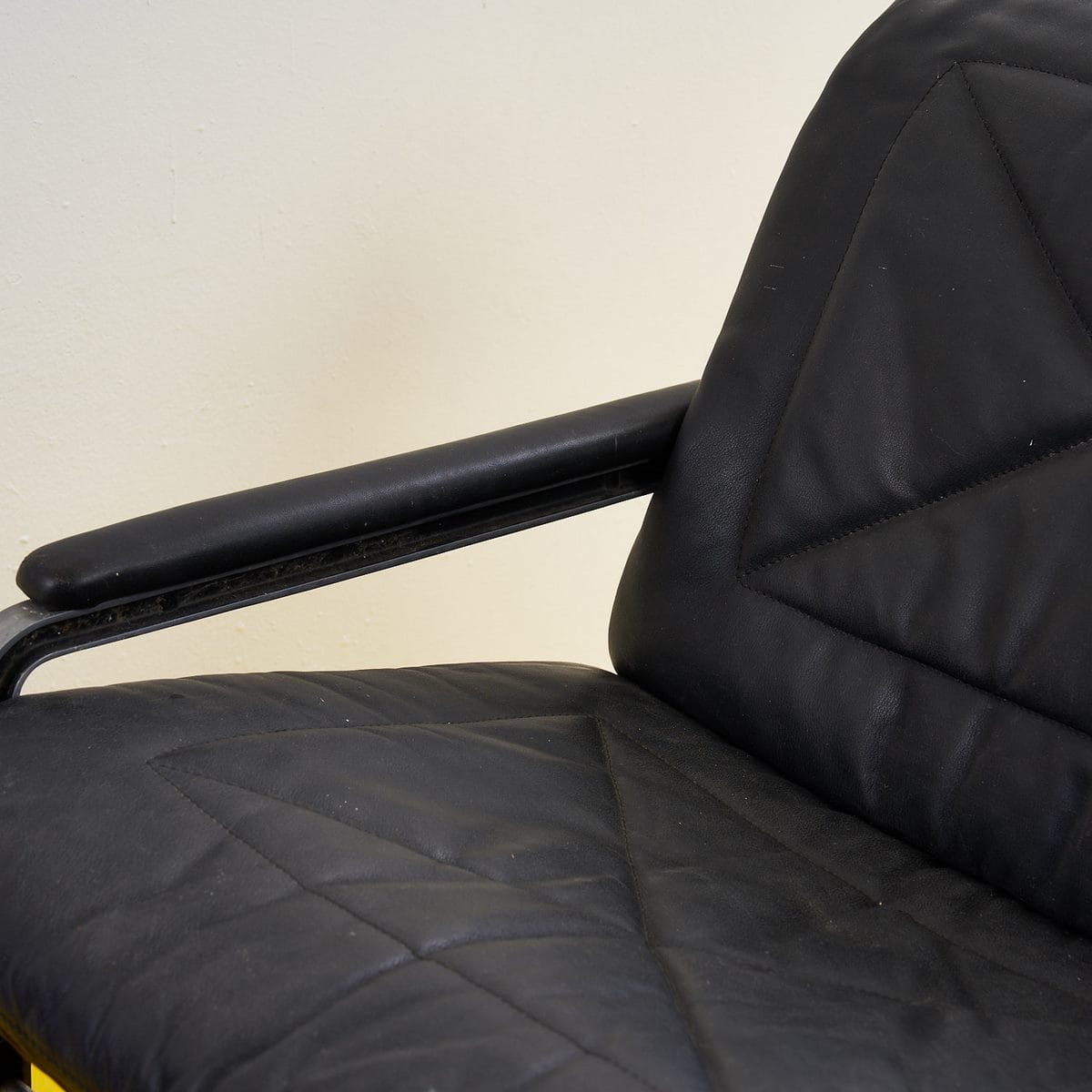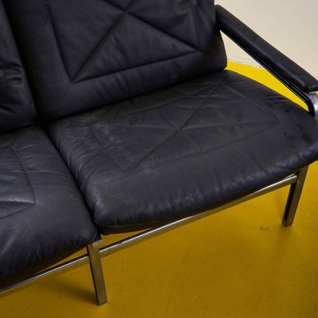 coppia di divani in alluminio e pelle di andre vanden beuck