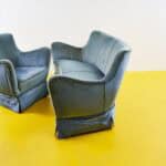 Scopri un affascinante set di divano e poltrona di design, caratterizzato da un raffinato tessuto blu. I loro profili morbidi e le linee sinuose offrono una combinazione di comfort e stile. Perfetti p... Scopri un affascinante set di divano e poltrona di design, caratterizzato da un raffinato tessuto blu. I loro profili morbidi e le linee sinuose offrono una combinazione di comfort e stile. Perfetti per arricchire il tuo soggiorno con un tocco di eleganza vintage, questi pezzi unici presentano dettagli curati, come il grazioso drappeggio della base e le gambe sottili. Ideali per chi ama il design dal sapore classico, saranno il fulcro di ogni spazio. Non perdere l'opportunita' di possedere questo set, testimonianza di un'epoca in cui il design italiano era all'apice della sua bellezza. Altro