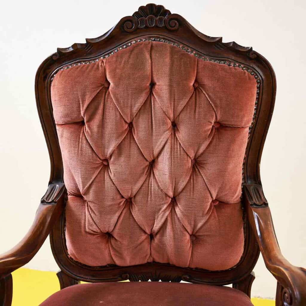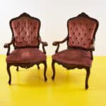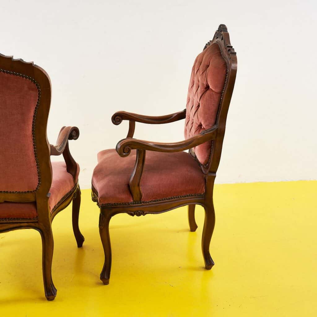 coppia di poltrone vintage in legno e velluto