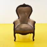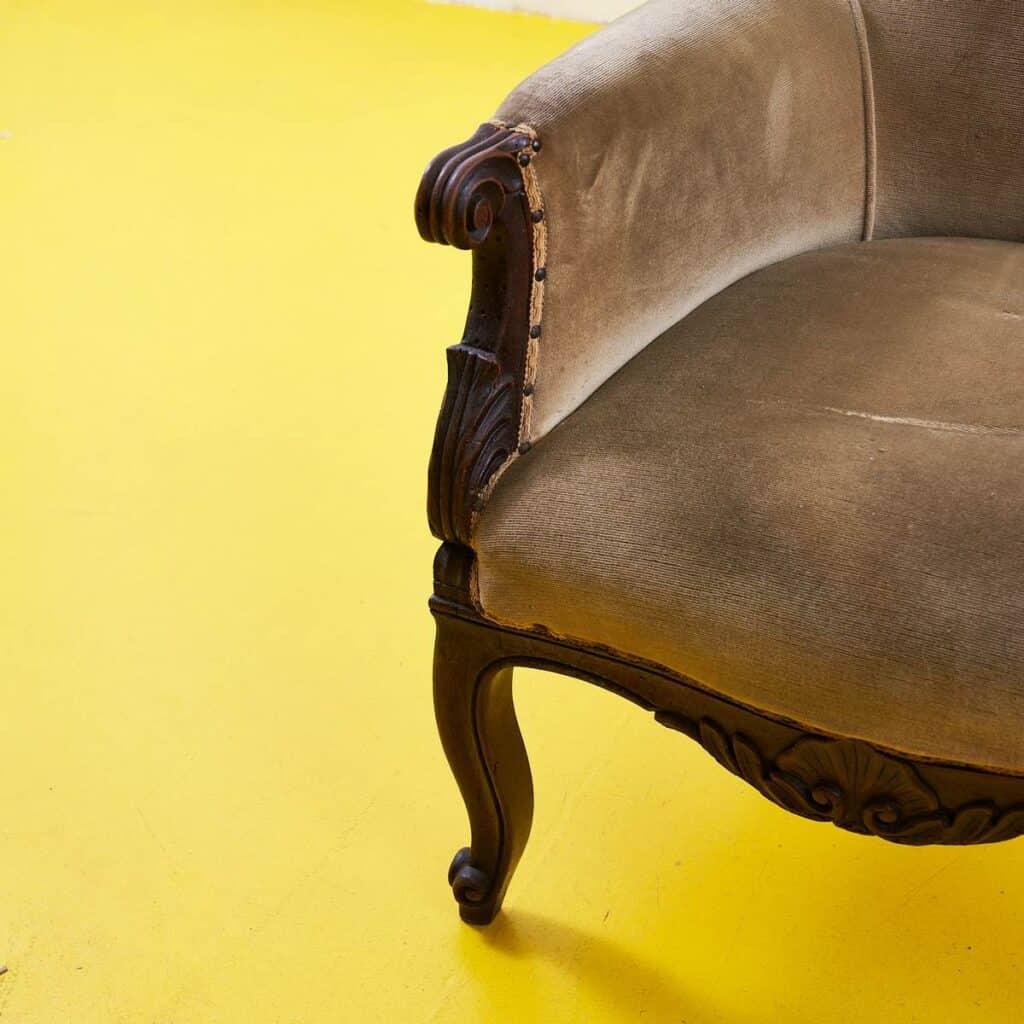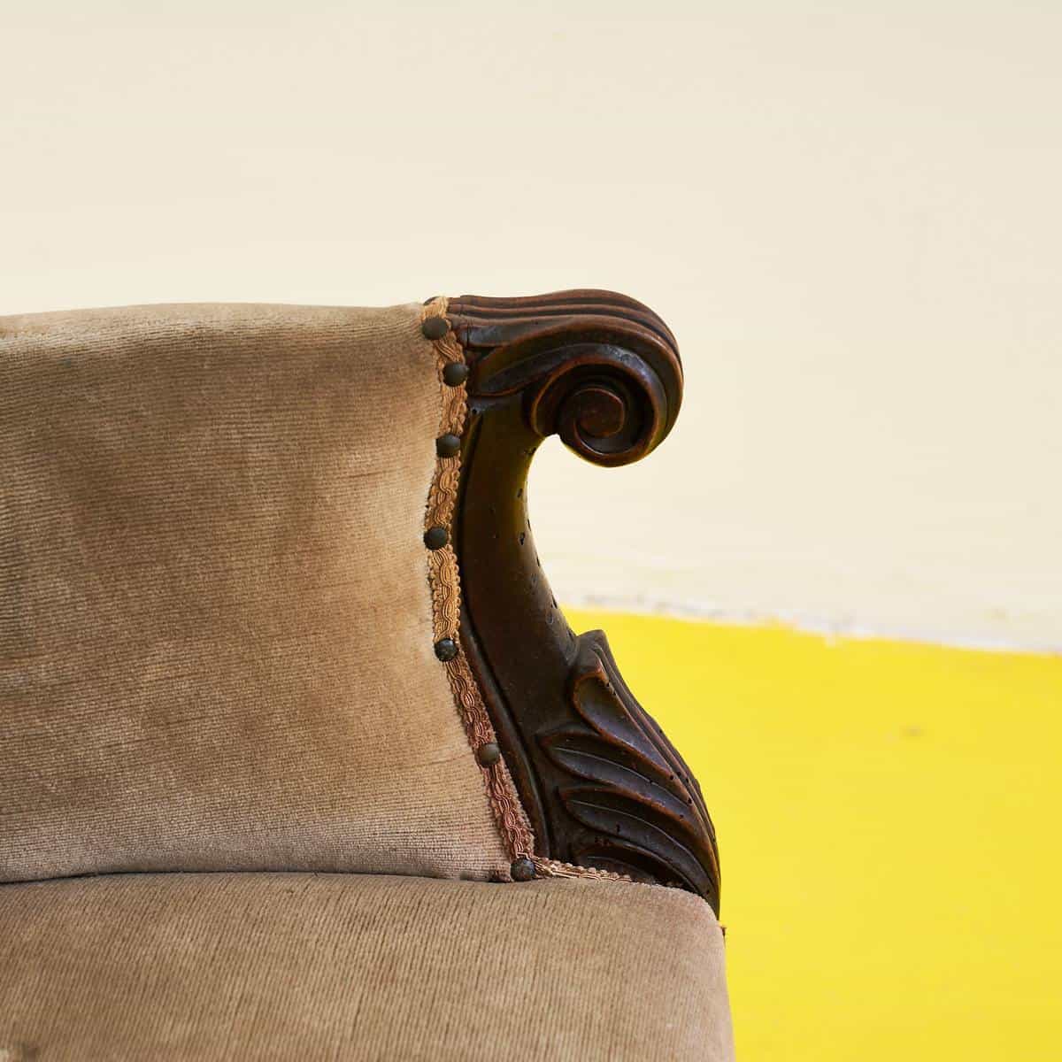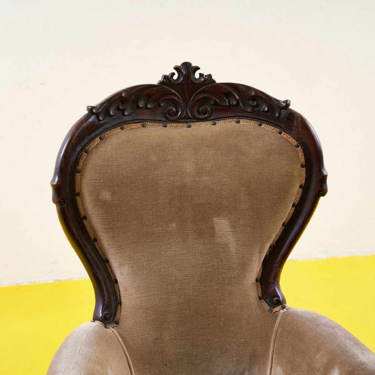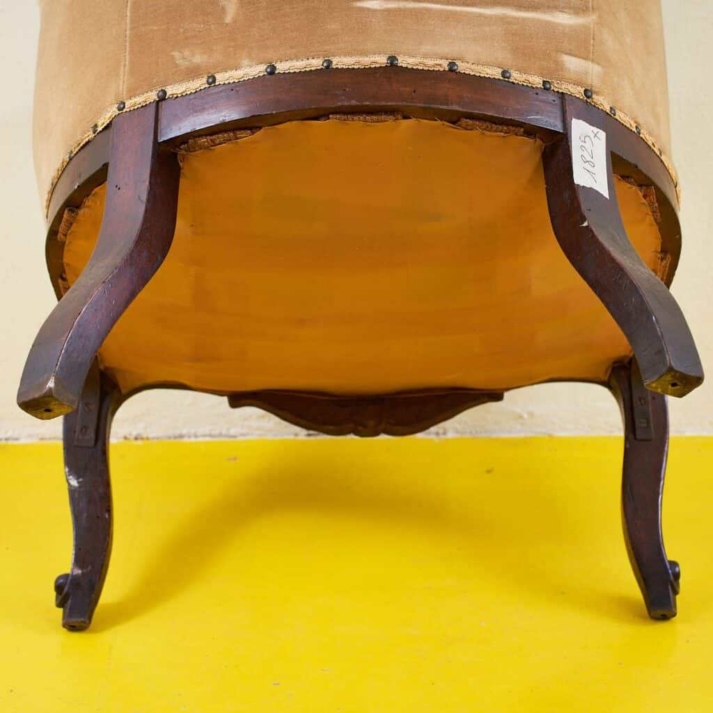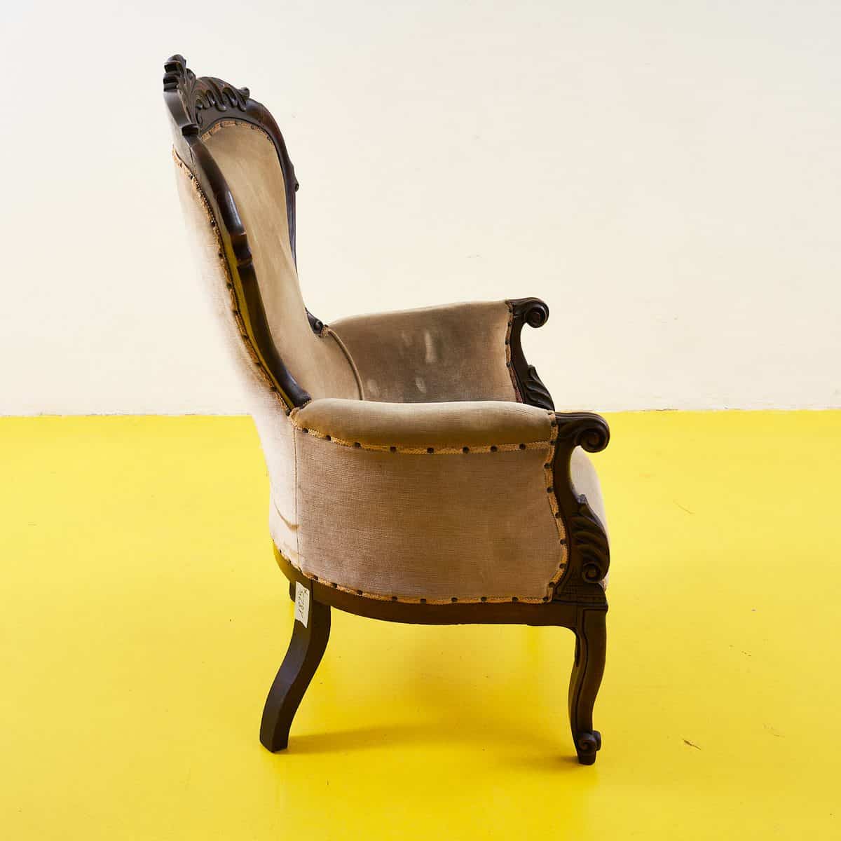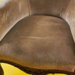 Scopri questa splendida poltrona vintage, caratterizzata da un elaborato design in legno intagliato e una morbida tappezzeria in velluto. Perfetta per ogni ambiente, questa sedia evoca un'atmosfe... Scopri questa splendida poltrona vintage, caratterizzata da un elaborato design in legno intagliato e una morbida tappezzeria in velluto. Perfetta per ogni ambiente, questa sedia evoca un'atmosfera di eleganza senza tempo. Il suo schienale arcuato e le gambe curvate non solo la rendono un pezzo funzionale, ma anche un'opera d'arte. Utilizzata in modo occasionale, e' ideale per chi cerca un tocco di stile vintage in casa o in un ambiente di lavoro. Aggiungi un accento di classe alla tua decorazione con questo pezzo unico! Altro
