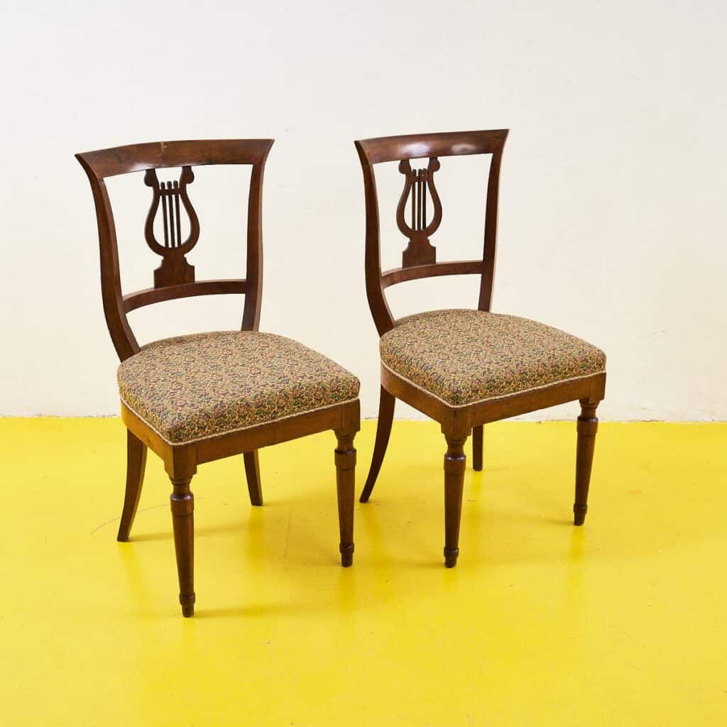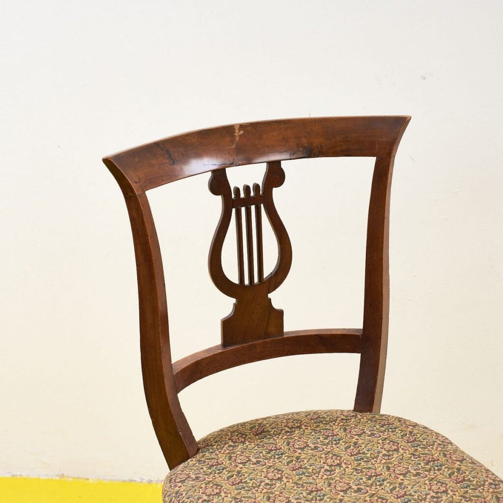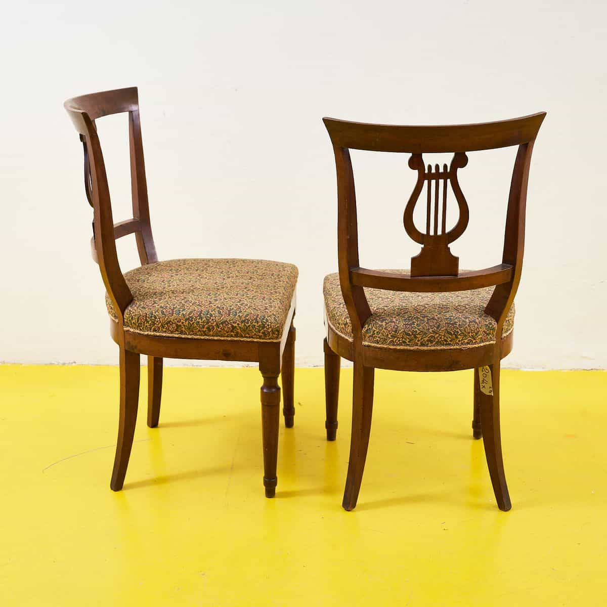 antica coppia di sedie in legno con schienale a lira