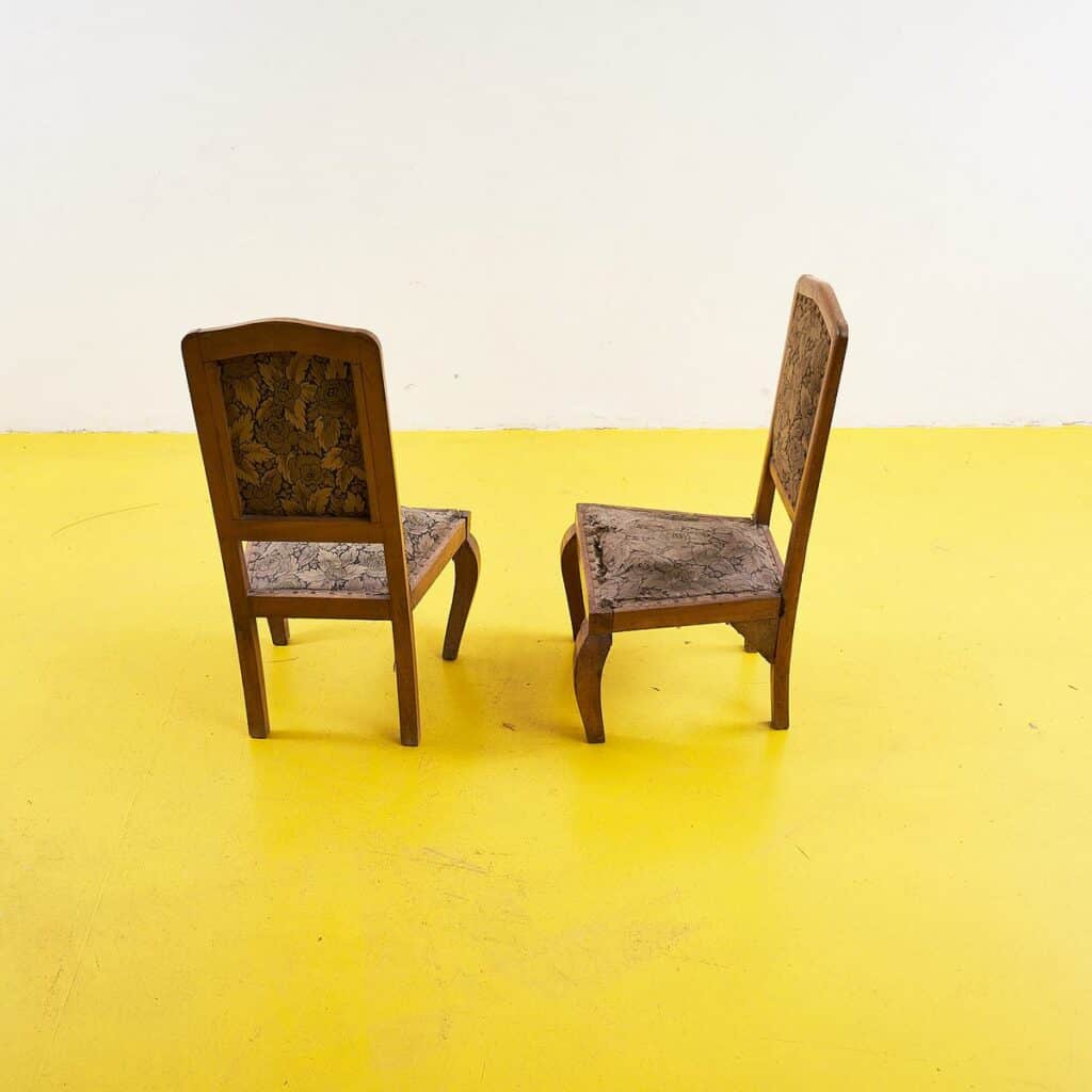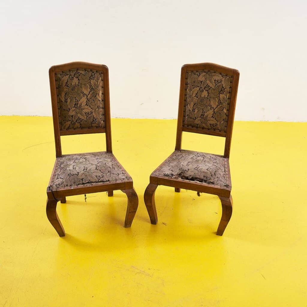 Scopri l'eleganza senza tempo con questa coppia di sedie vintage da restaurare in legno, perfette per arricchire ogni ambiente della tua casa. Caratterizzate da un design raffinato e un rivestime... Scopri l'eleganza senza tempo con questa coppia di sedie vintage da restaurare in legno, perfette per arricchire ogni ambiente della tua casa. Caratterizzate da un design raffinato e un rivestimento floreale unico, offrono un perfetto mix di funzionalita' e stile. Nonostante qualche segno del tempo, queste sedie portano con se' una storia affascinante e sono pronte a diventare protagonista nel tuo spazio. Ideali per una riunione familiare o come pezzi di dichiarazione in un salotto retro. Non perdere l'opportunita' di possedere una chicca del passato. Altro