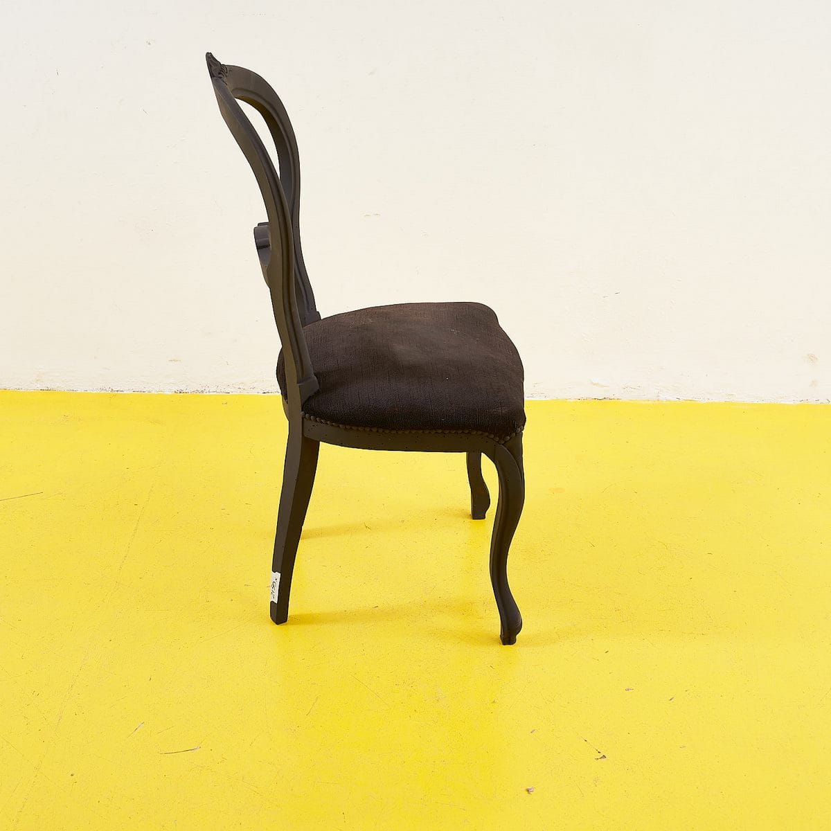 Scopri la bellezza senza tempo di questa sedia vintage in legno nero, perfetta per ogni ambiente. Caratterizzata da un design elegante con schienale arcuato e gambe sinuose, questa sedia porta un tocc... Scopri la bellezza senza tempo di questa sedia vintage in legno nero, perfetta per ogni ambiente. Caratterizzata da un design elegante con schienale arcuato e gambe sinuose, questa sedia porta un tocco di classe a qualsiasi stanza. Il cuscino in tessuto scuro offre comfort e stile, rendendo questa sedia ideale sia per la casa che per spazi pubblici. Le sue linee morbide e la finitura curata richiamano l'arte del design classico, rendendola un'ottima aggiunta al tuo arredamento. Non perdere l'opportunita' di possedere un pezzo di storia del design. Altro