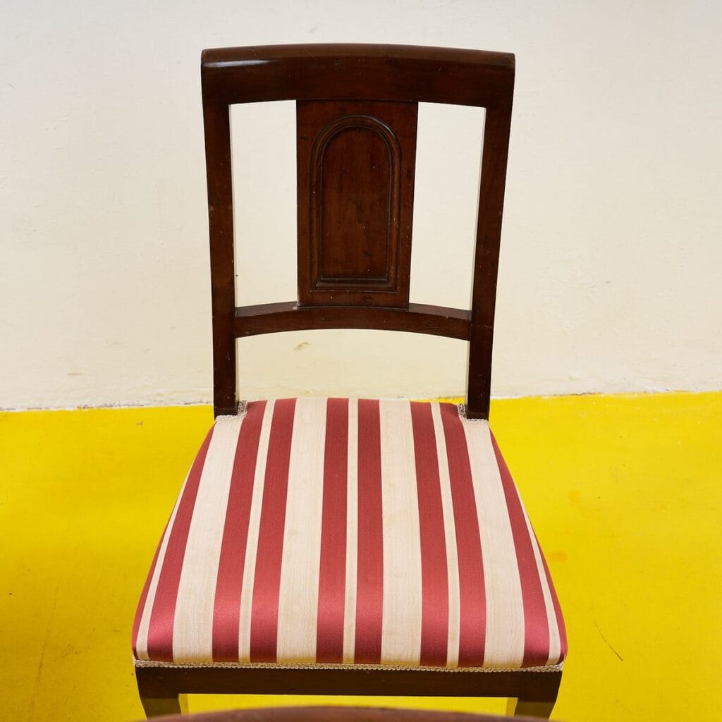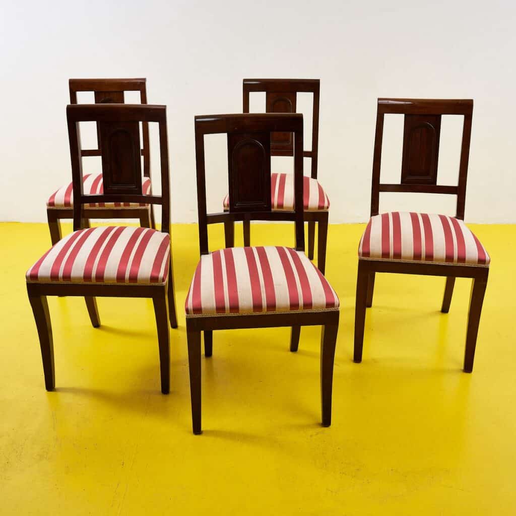 Eleganti sedie in legno con motivo rigato primi 900, 5 pezzi