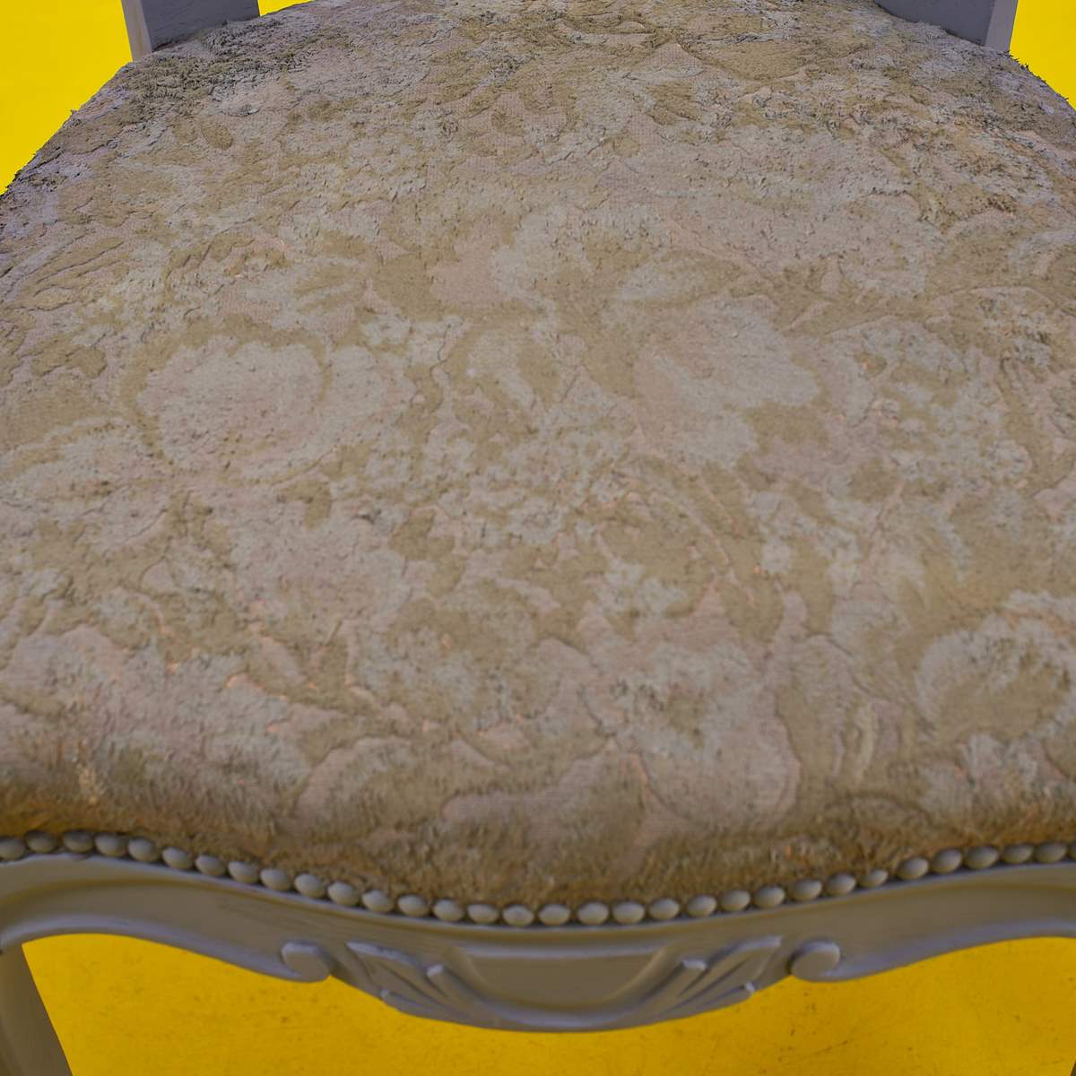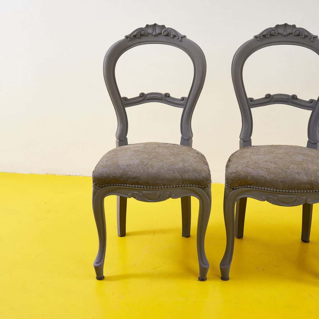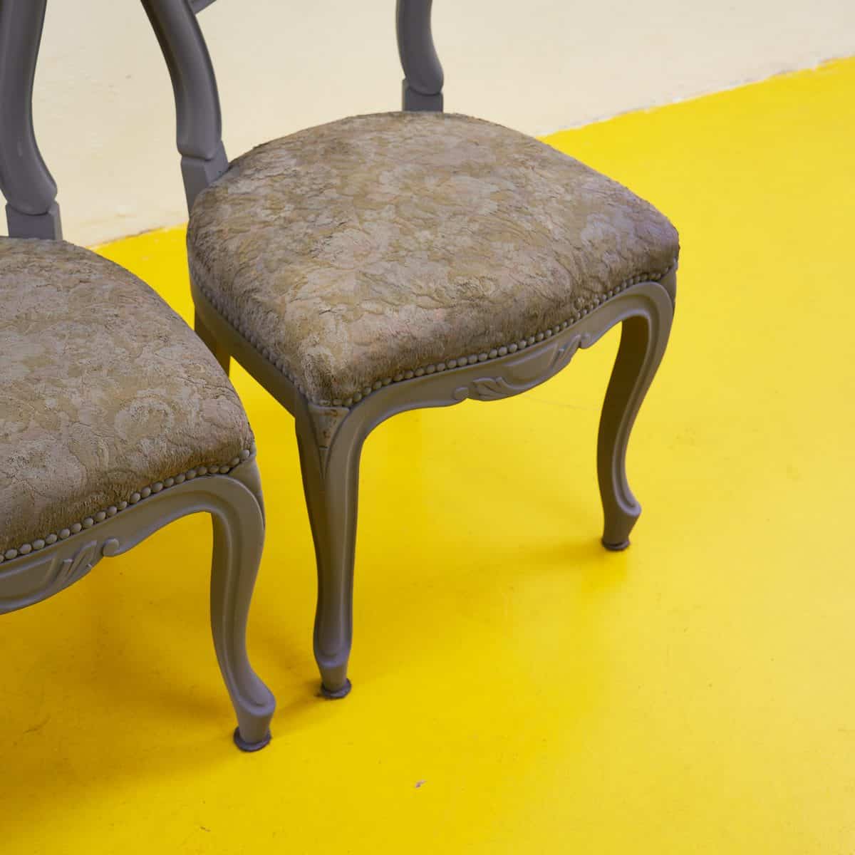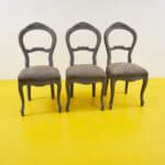 Scopri il fascino senza tempo di questo set di tre sedie vintage, caratterizzate da un design raffinato e dettagli accurati. Con una struttura in legno verniciato di grigio elegante e un morbido rives... Scopri il fascino senza tempo di questo set di tre sedie vintage, caratterizzate da un design raffinato e dettagli accurati. Con una struttura in legno verniciato di grigio elegante e un morbido rivestimento in tessuto floreale, queste sedie rappresentano l'unione perfetta di stile e comfort. La loro forma curvilinea e le decorazioni vintage le rendono ideali per arricchire qualsiasi ambiente, dal soggiorno alla sala da pranzo. Sperimentale il design classico che non passa mai di moda e rendi ogni pasto un'occasione speciale. Altro