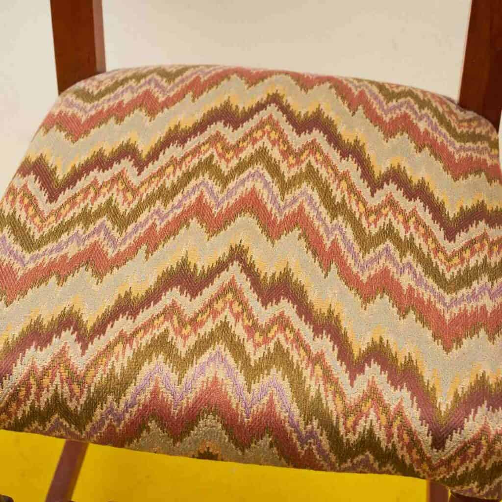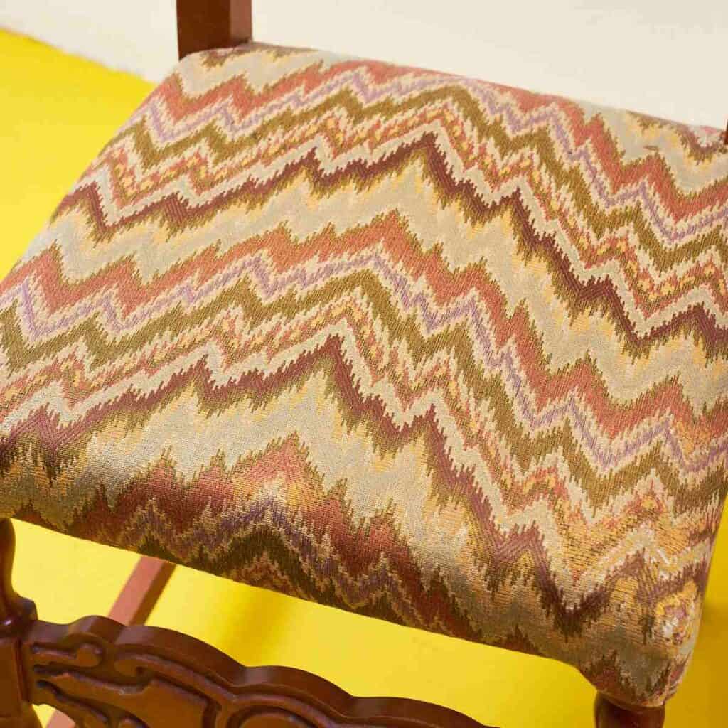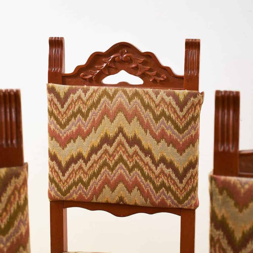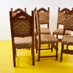 Questo affascinante set di sedie vintage e' un vero gioiello per gli amanti dell'arredo d'epoca. Caratterizzate da un design raffinato, ogni sedia presenta una struttura in legno pregia... Questo affascinante set di sedie vintage e' un vero gioiello per gli amanti dell'arredo d'epoca. Caratterizzate da un design raffinato, ogni sedia presenta una struttura in legno pregiato, con dettagli intagliati che ne esaltano la bellezza. Il rivestimento in tessuto zigzagato offre un tocco di colore e originalita', rendendo queste sedie perfette per ogni spazio. Ideali per una sala da pranzo o come pezzi di design in un soggiorno, queste sedie non sono solo funzionali ma anche un'ottima scelta per chi cerca di aggiungere un elemento di storia e stile al proprio ambiente. Altro